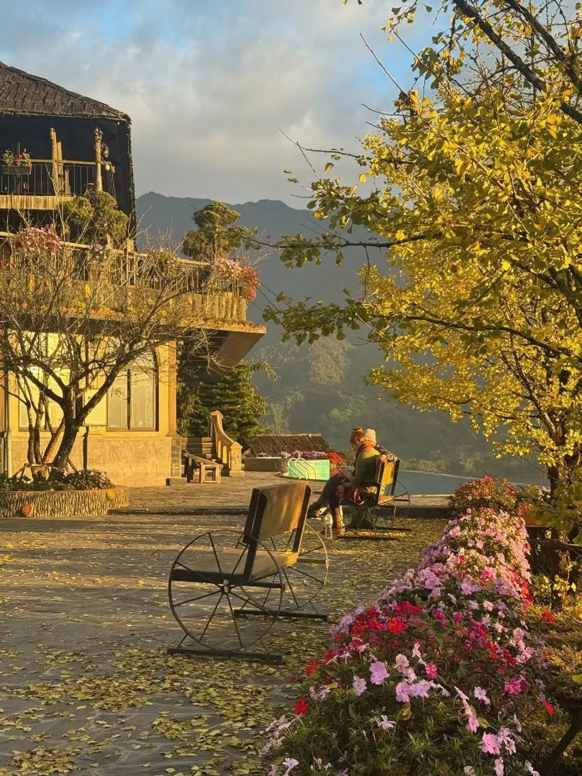 This stunning photo captures a serene moment in Sa Pa during its golden ginkgo season. A simple wooden bench, adorned with scattered yellow leaves and an open book, creates a romantic and poetic scene. In the distance, majestic mountains and a tranquil blue lake complete the vibrant natural mountainous landscape. This is an ideal destination for tourists to admire, capture beautiful photos, and enjoy the crisp, fresh air at the year's end. Sa Pa's scenery this season is truly captivating, inviting everyone to visit and create unforgettable memories.#SaPaGoldenSeason #GinkgoSaPa #TravelVietnam #RomanticLandscape #MountainEscape