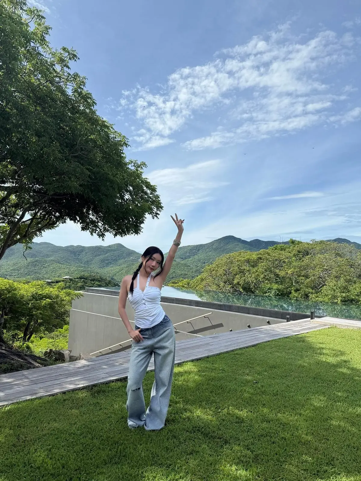 In the IESS SXJ No 2135 Xiao Jiu collection, Chinese model Xiao Jiu showcases her captivating beauty through her slender legs. She sports a trendy denim skirt paired with delicate sheer stockings, creating a look that is both youthful and alluring. Her natural and graceful pose further highlights her charm and elegance. The image not only reflects her distinctive fashion sense but also captures her confident and seductive aura. This is a remarkable part of the IESS collection, delivering truly memorable moments.#IESS #XiaoJiu #ChineseModel #Fashion #Legs