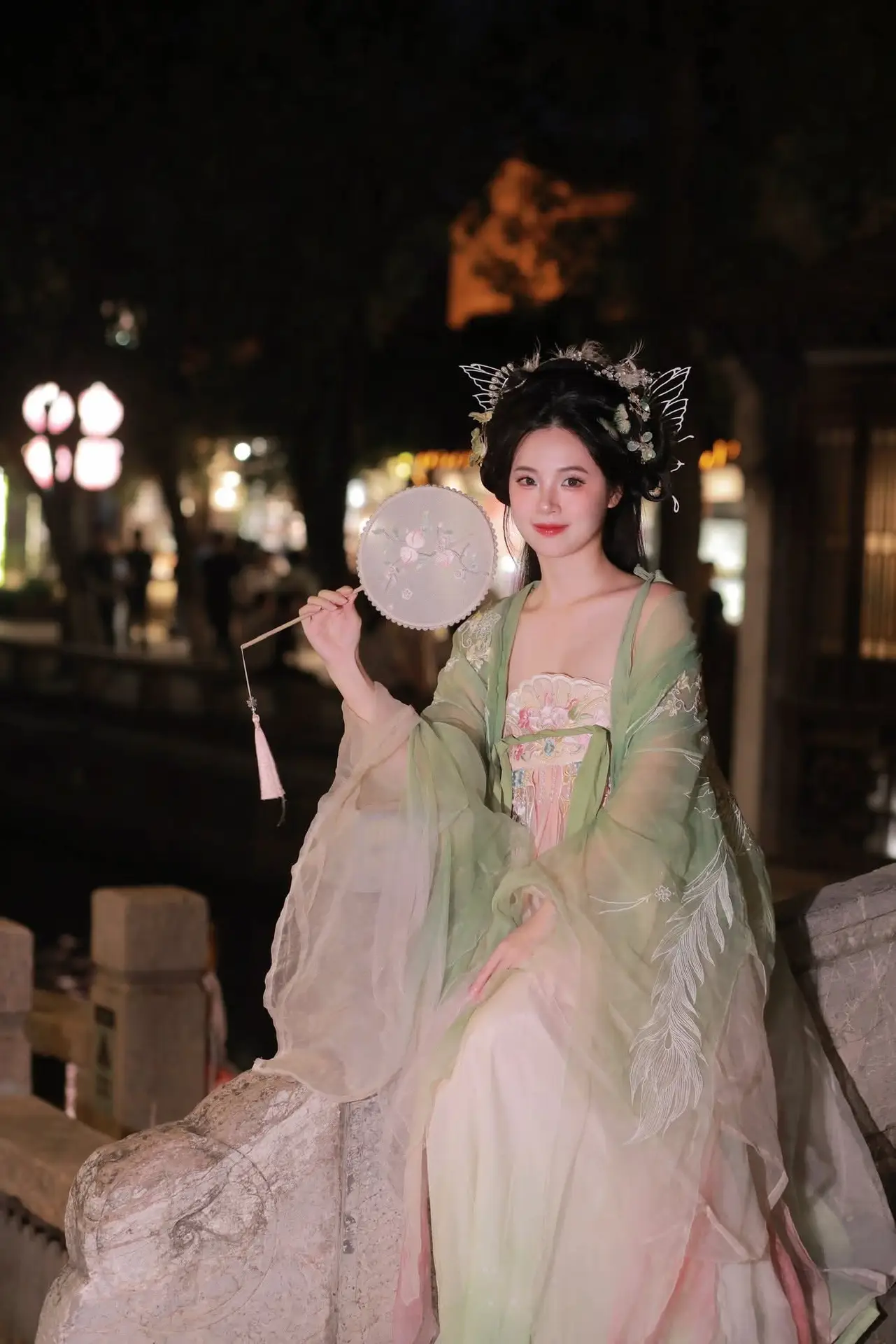 VGU No.175: Ethereal Asian Beauty In Traditional Attire Amidst A Dazzling Nightscape Of Lights