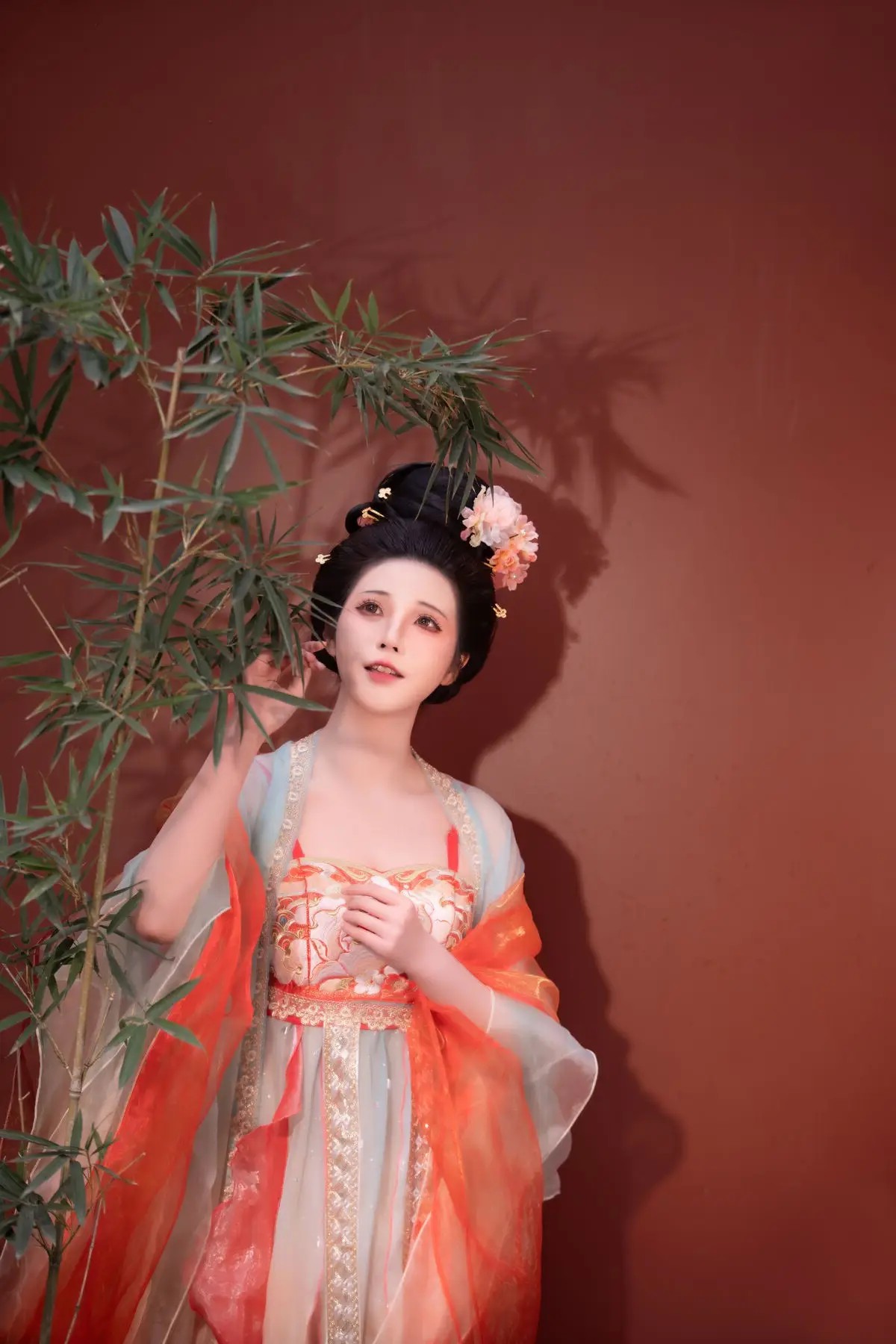 In the captivating YiTuYu Vol.8559 collection, Yi Zhi Mu Yao Yao emerges as an enchanting figure amidst a lush bamboo forest. Adorned in elegant traditional attire of soft, flowing fabric, her presence exudes grace and an ethereal aura. With her long dark hair styled in a sophisticated updo and a profound gaze, Yi Zhi Mu Yao Yao embodies the spirit of a powerful yet charming swordswoman. The sword she holds is not merely an accessory but a symbol of her resolve and mastery of martial arts. This image beautifully captures a moment where human elegance harmonizes with nature's tranquility, offering a visually stunning narrative that is both serene and compelling, a true testament to visual art.