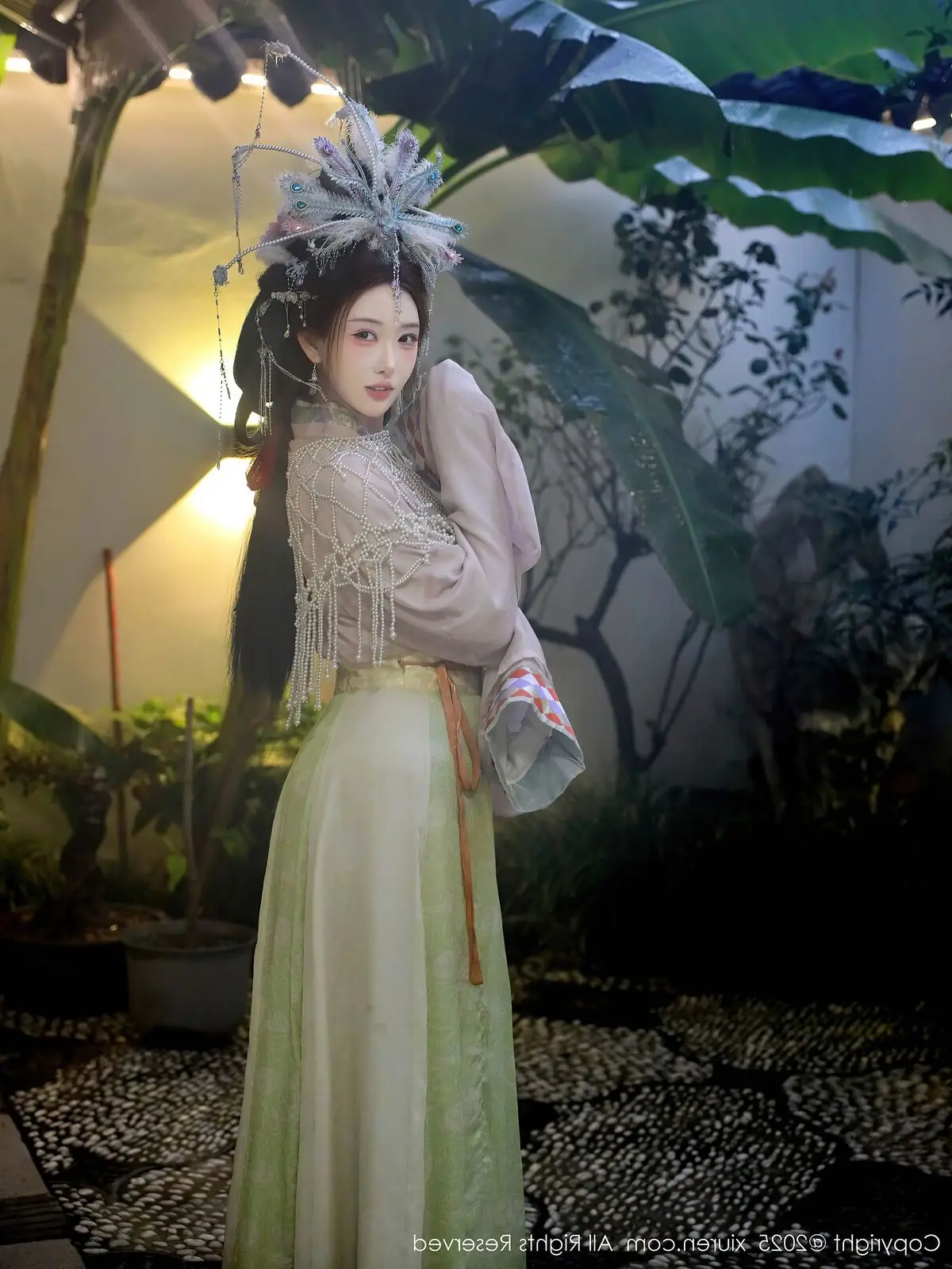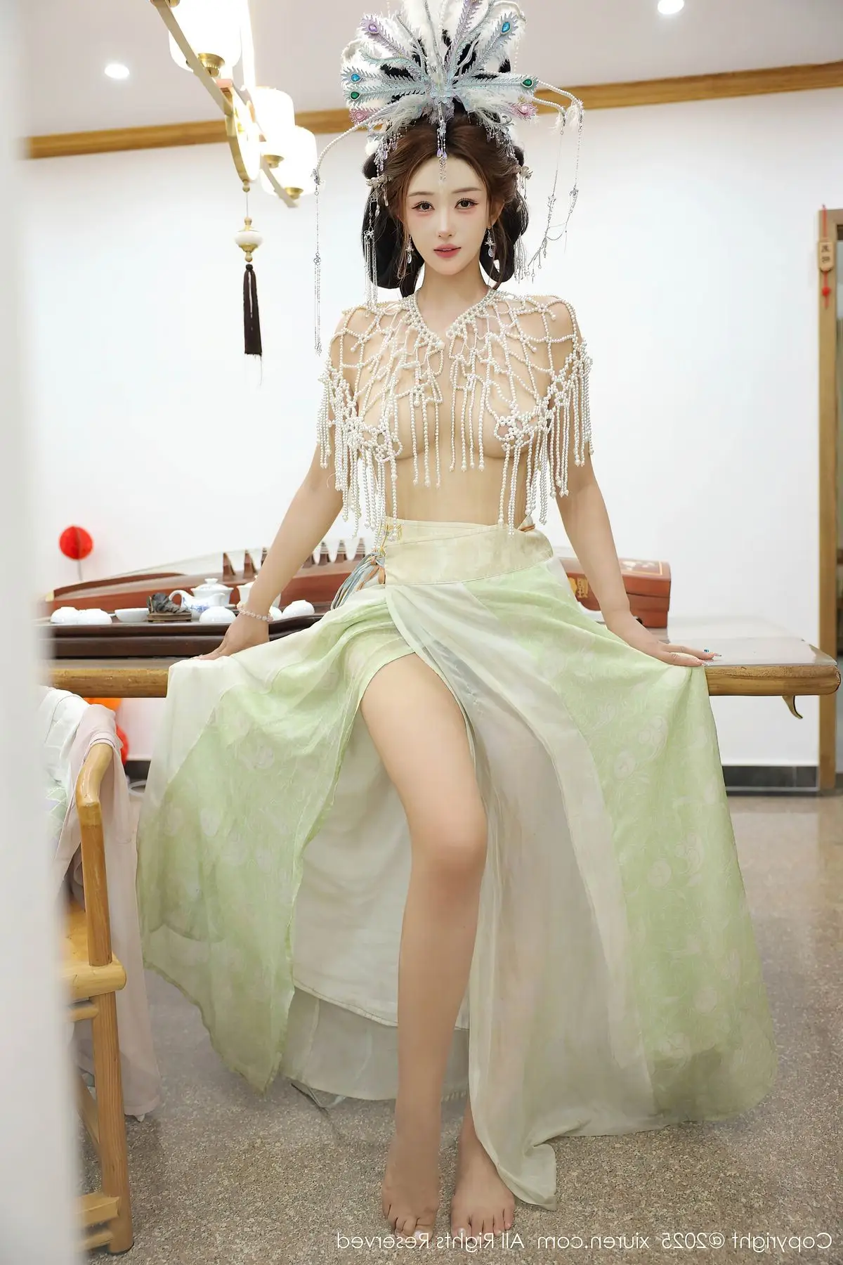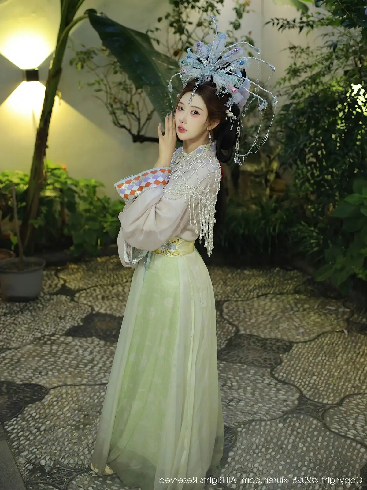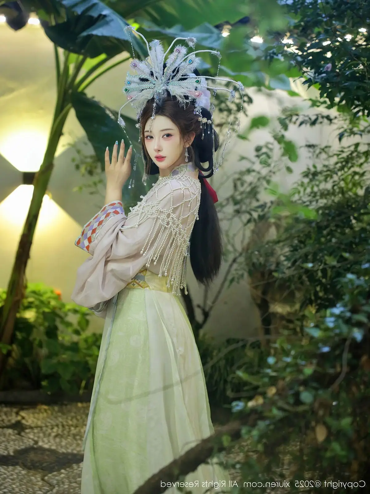 Immerse yourself in a fairy-tale world with the enchanting YiTuYu Vol8521 Tu Ya W photo collection. Model Tu Ya W radiates an ethereal and graceful beauty in her delicate light green traditional attire embodying the elegant charm of an East Asian woman. Her hair is intricately styled into an updo adorned with small flowers further enhancing her delicate and exquisite features. Amidst a lush green garden where flowers bloom Tu Ya W appears like a celestial fairy bringing a sense of peace and romance. Every gesture and gaze emanates gentleness and allure inviting viewers to admire a timeless beauty. This is an emotionally rich visual experience where art and beauty intertwine seamlessly.