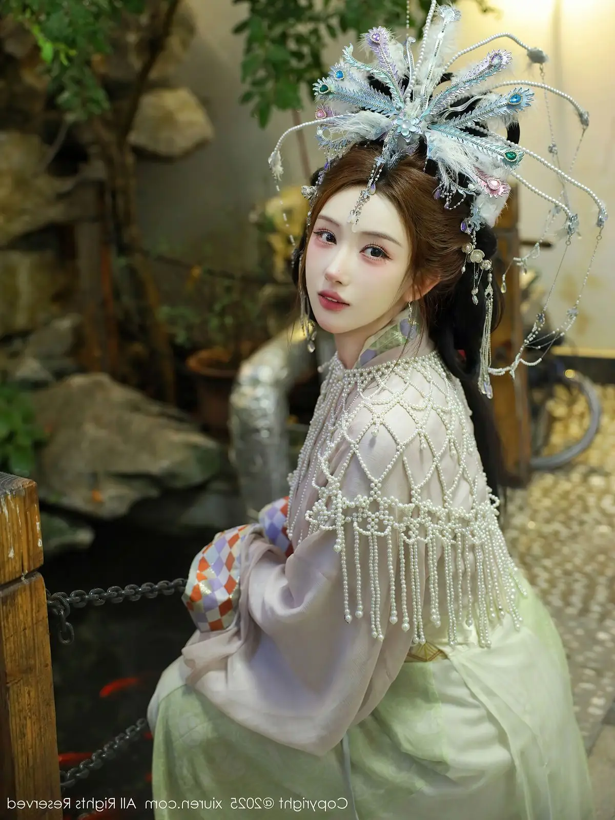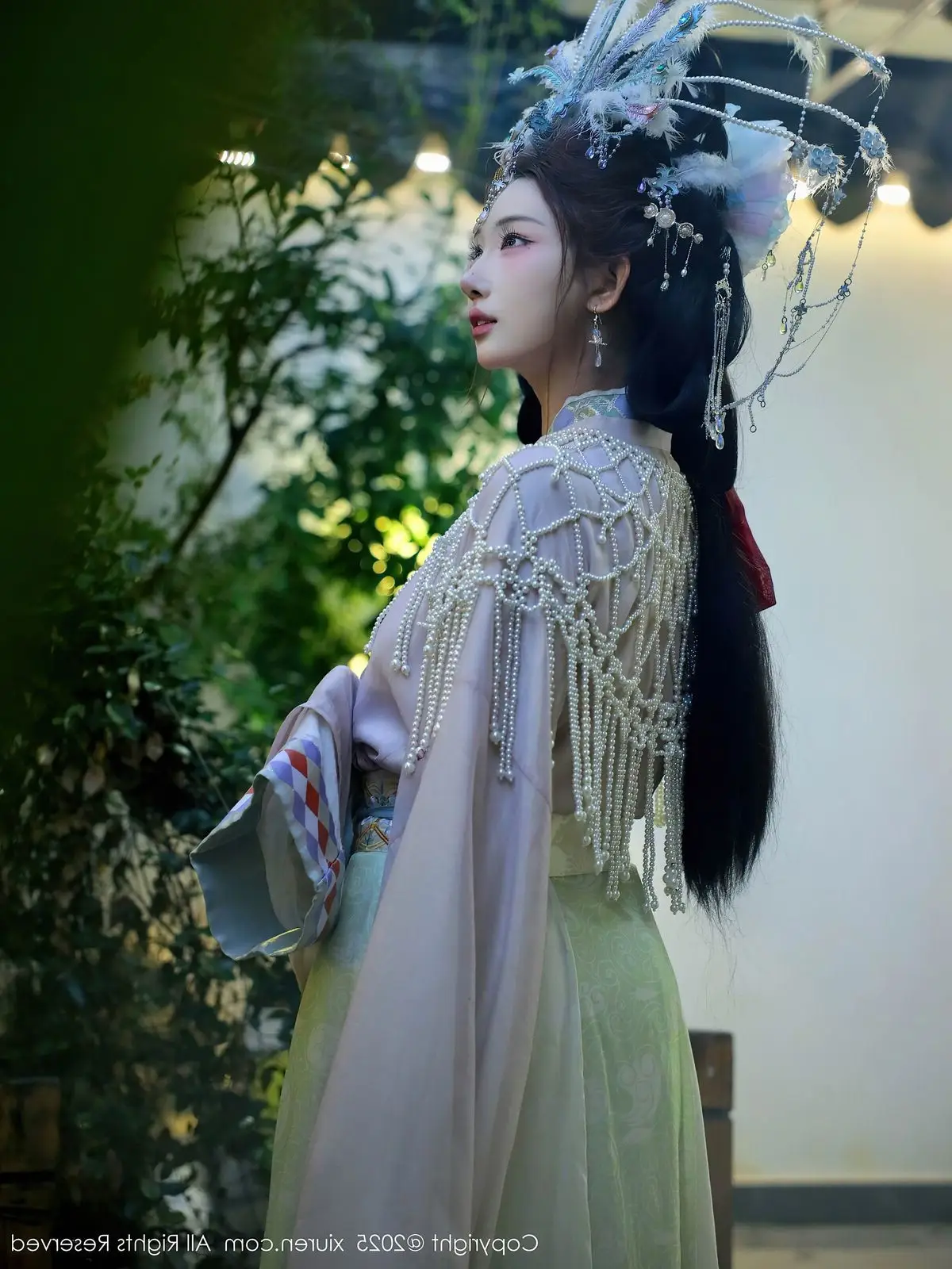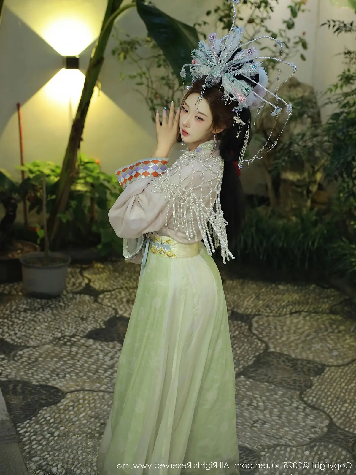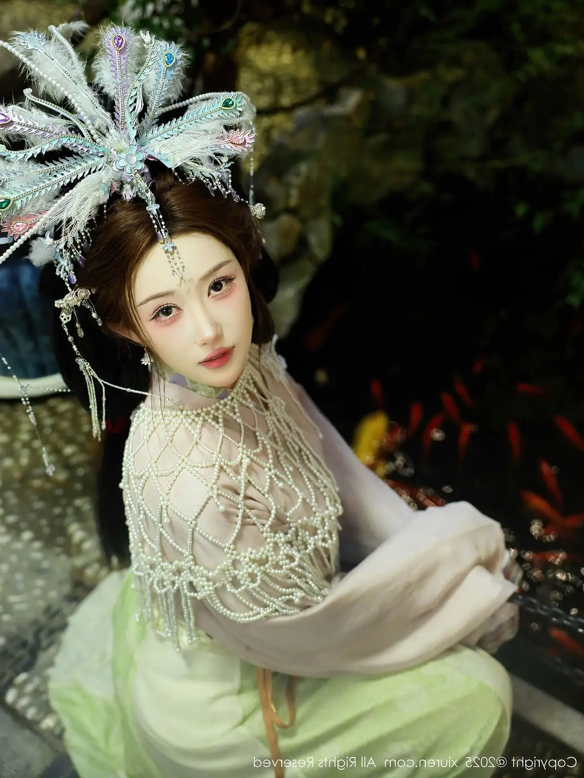 Immerse yourself in a fairy-tale world with the enchanting YiTuYu Vol8521 Tu Ya W photo collection. Model Tu Ya W radiates an ethereal and graceful beauty in her delicate light green traditional attire embodying the elegant charm of an East Asian woman. Her hair is intricately styled into an updo adorned with small flowers further enhancing her delicate and exquisite features. Amidst a lush green garden where flowers bloom Tu Ya W appears like a celestial fairy bringing a sense of peace and romance. Every gesture and gaze emanates gentleness and allure inviting viewers to admire a timeless beauty. This is an emotionally rich visual experience where art and beauty intertwine seamlessly.