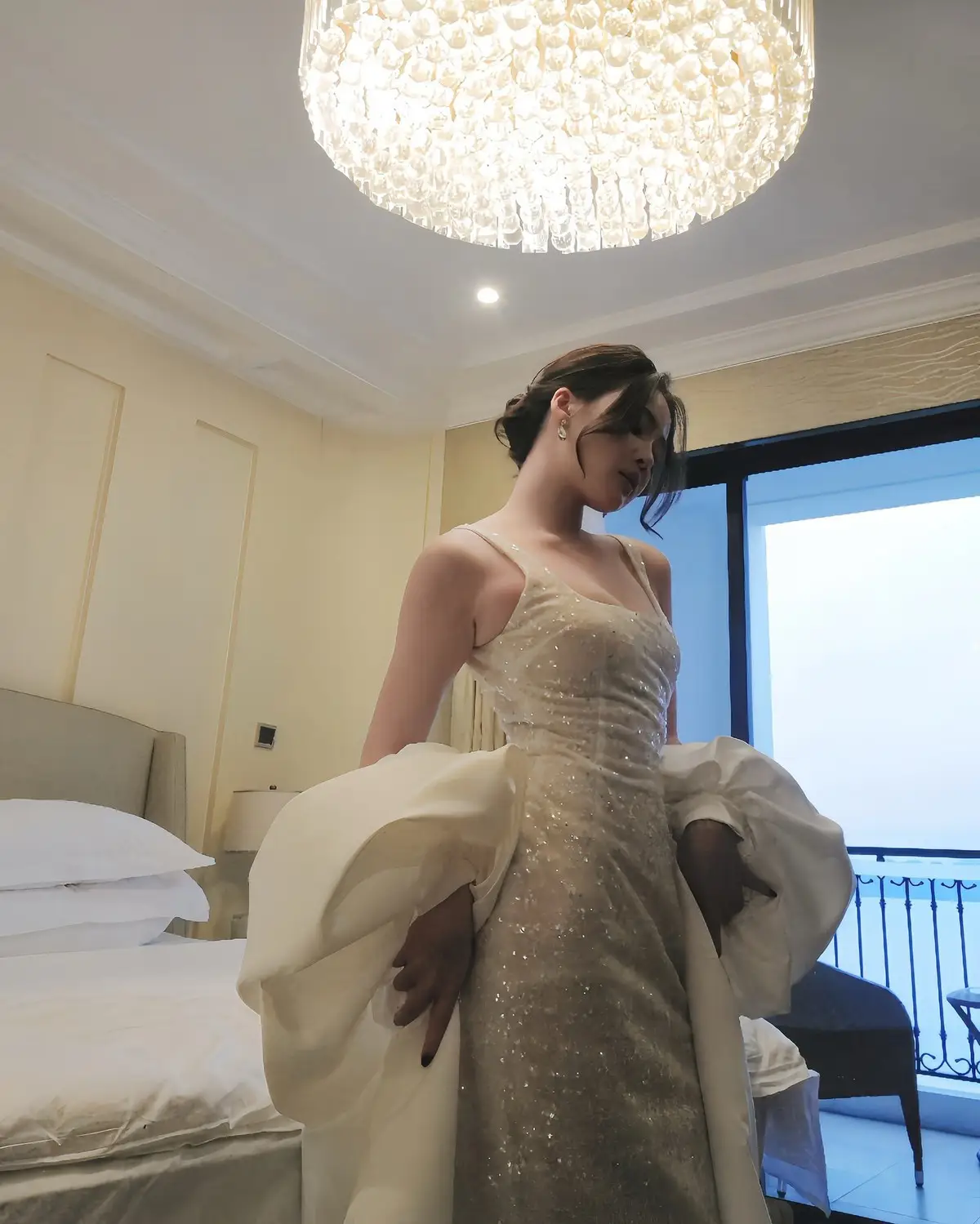 Actress Huyen Lizzie captivates in a stunning black outfit gracefully showcasing her delicate slender back. Her elegant fashion style is evident through the sophisticated strapless dress and chic long gloves. This image not only highlights her beautiful physique but also radiates Huyen Lizzie's confident and graceful aura. She consistently knows how to draw all eyes affirming her position as a star with impressive aesthetic taste. This truly demonstrates the actress's undeniable appeal in the Vietnamese entertainment industry.#HuyenLizzie #SlenderBack #VietnameseFashion #GlamorousActress #CelebrityStyle
