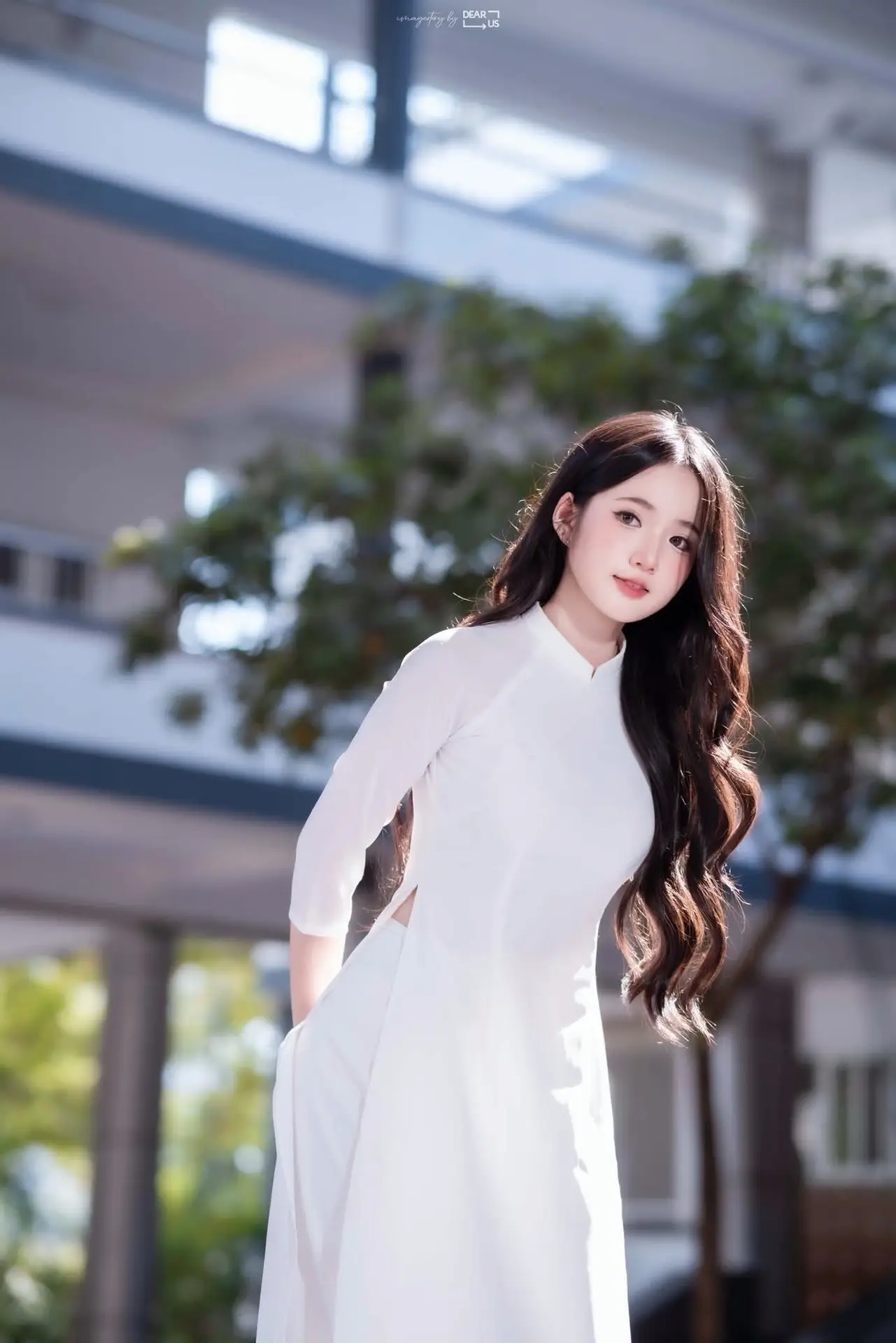 This stunning photograph captures a graceful Vietnamese girl in a pristine white Ao Dai. Her gentle smile clear eyes and flowing dark hair accentuate her delicate and serene beauty. She embodies purity representing the traditional charm and spirit of Vietnamese women. The white Ao Dai is not just an outfit but a cultural symbol honoring elegance and grace. This image evokes feelings of tranquility sophisticated Asian beauty and pride in Vietnam's rich cultural heritage. The girl appears like a pure white blossom radiating a sense of freshness and innocence.#WhiteAoDai #VietnameseBeauty #TraditionalDress #VietnameseCulture #AsianBeauty