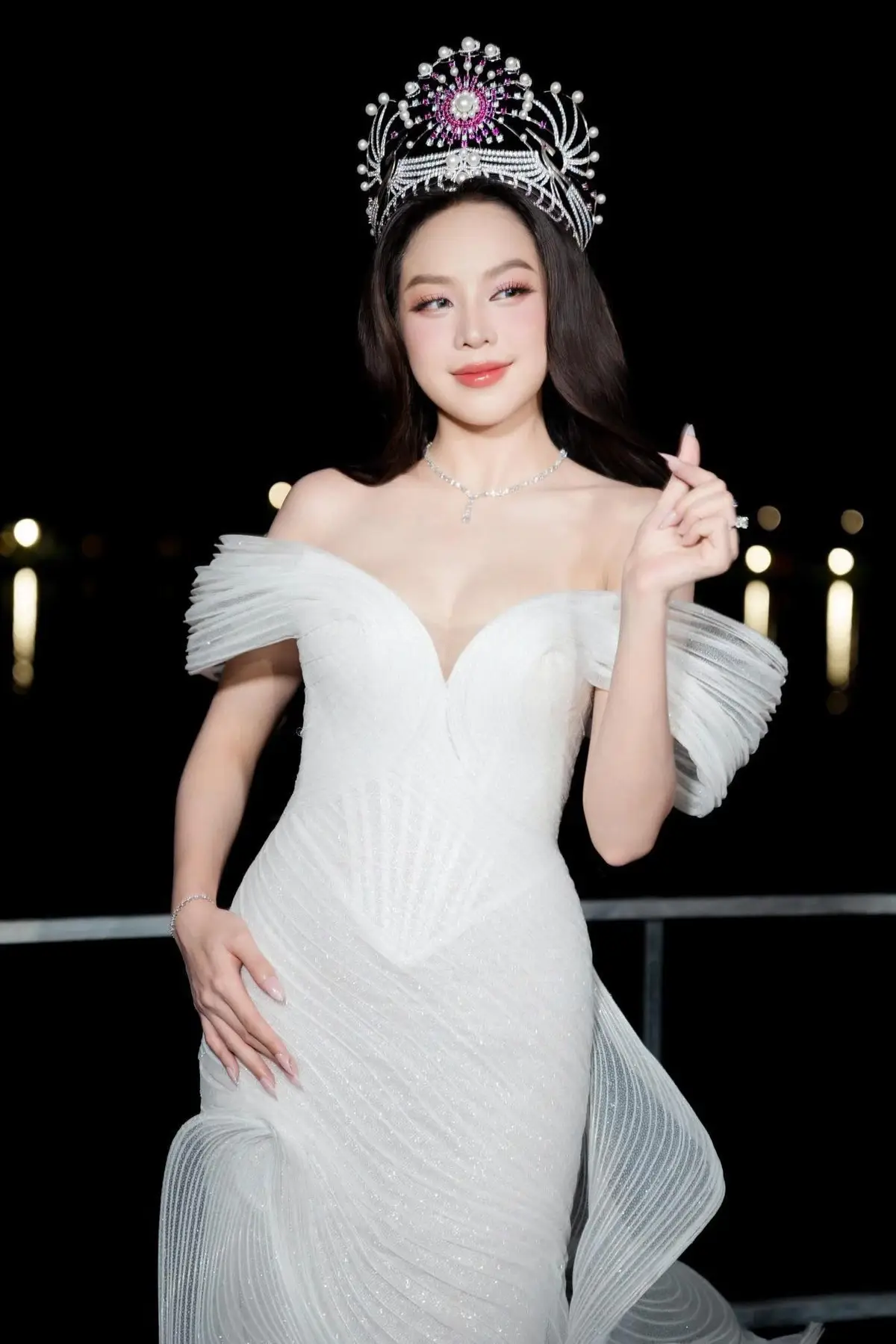 This captivating photo captures Runner-up Ngoc Hang in her dazzling crown embodying the elegant and sophisticated beauty that shone brightly at Miss Vietnam 2022. With mesmerizing eyes and a gentle smile she evokes memories of a journey filled with dedication passion and unforgettable moments on the prestigious stage. Her exquisite gown and intricate jewelry further enhance her captivating aura. This image is not just a portrayal of peak beauty but also a symbol of growth and resilience of a modern woman. This moment serves as a reminder of her indelible mark in her career inspiring confidence and timeless beauty.#NgocHang #MissVietnam2022 #VietnameseBeauty #BeautyQueen #PageantJourney