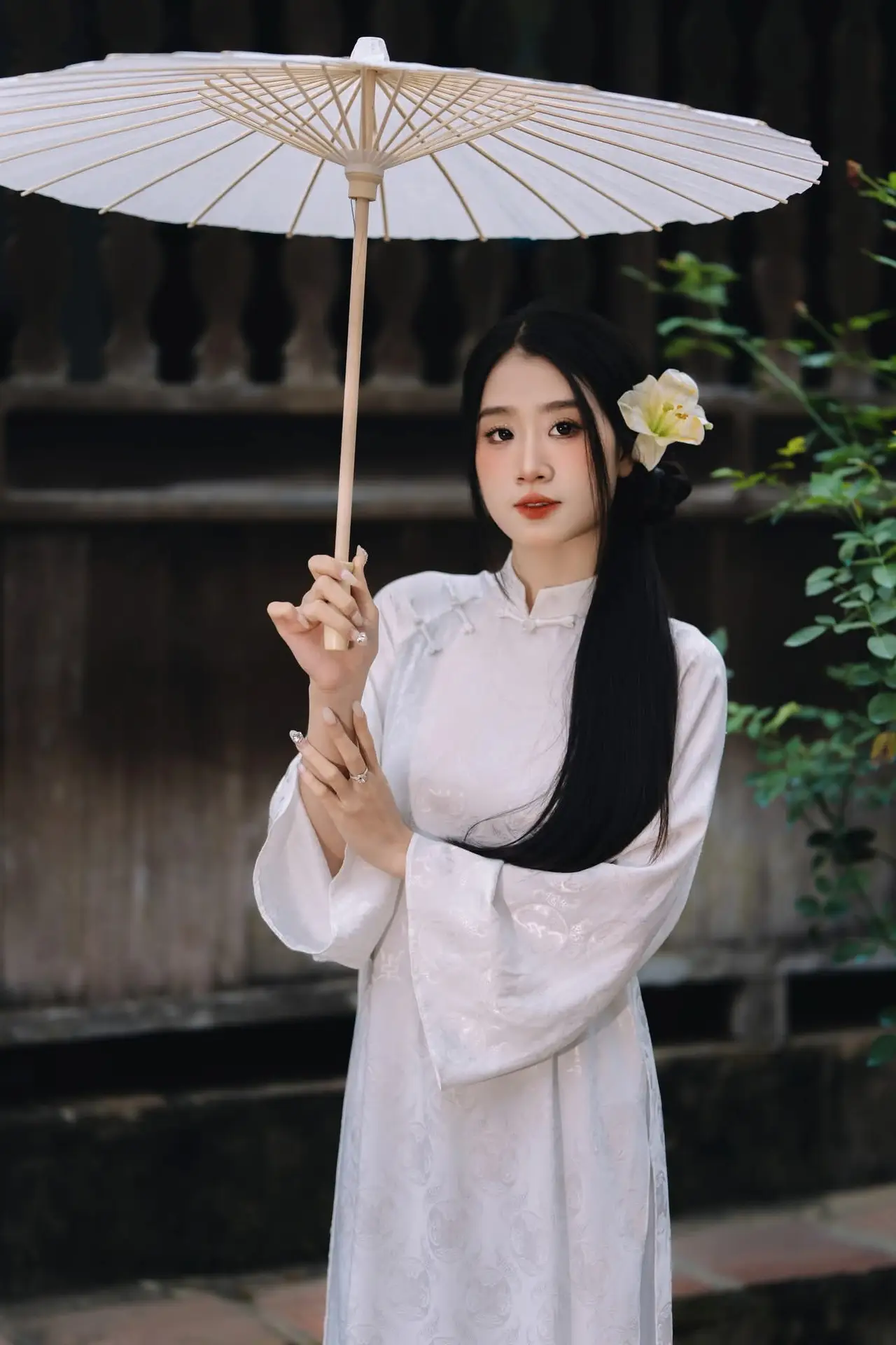 Discover the Grace of White Ao Dai: Vietnamese Girl's Delicate Beauty Shines