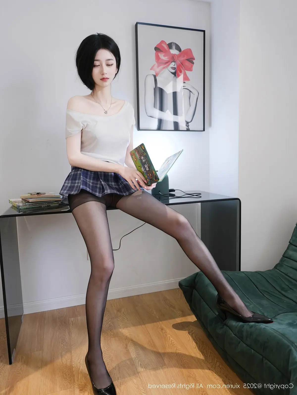 In the XiuRen No10613 photoshoot model Bai Xiao Die captivates with her enchanting presence on a soft bed She elegantly showcases her slender figure and graceful curves in a pristine white off-shoulder top perfectly paired with mysterious black sheer stockings Her long legs are accentuated by striking black and red high heels creating a captivating focal point Her gaze directed towards the camera exudes confidence and a hint of shyness forming an irresistible charm The entire scene radiates sophisticated elegance and subtle sensuality making it impossible for viewers to look away This collection truly offers a wonderful visual experience highlighting Bai Xiao Die's class and alluring demeanor#BaiXiaoDie #XiuRen #SheerStockings #AlluringFashion #BedroomStyle