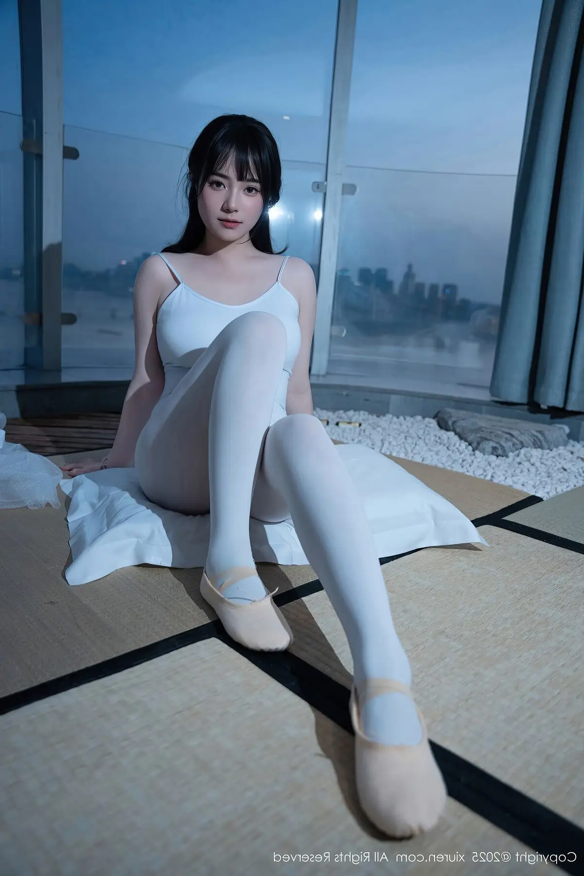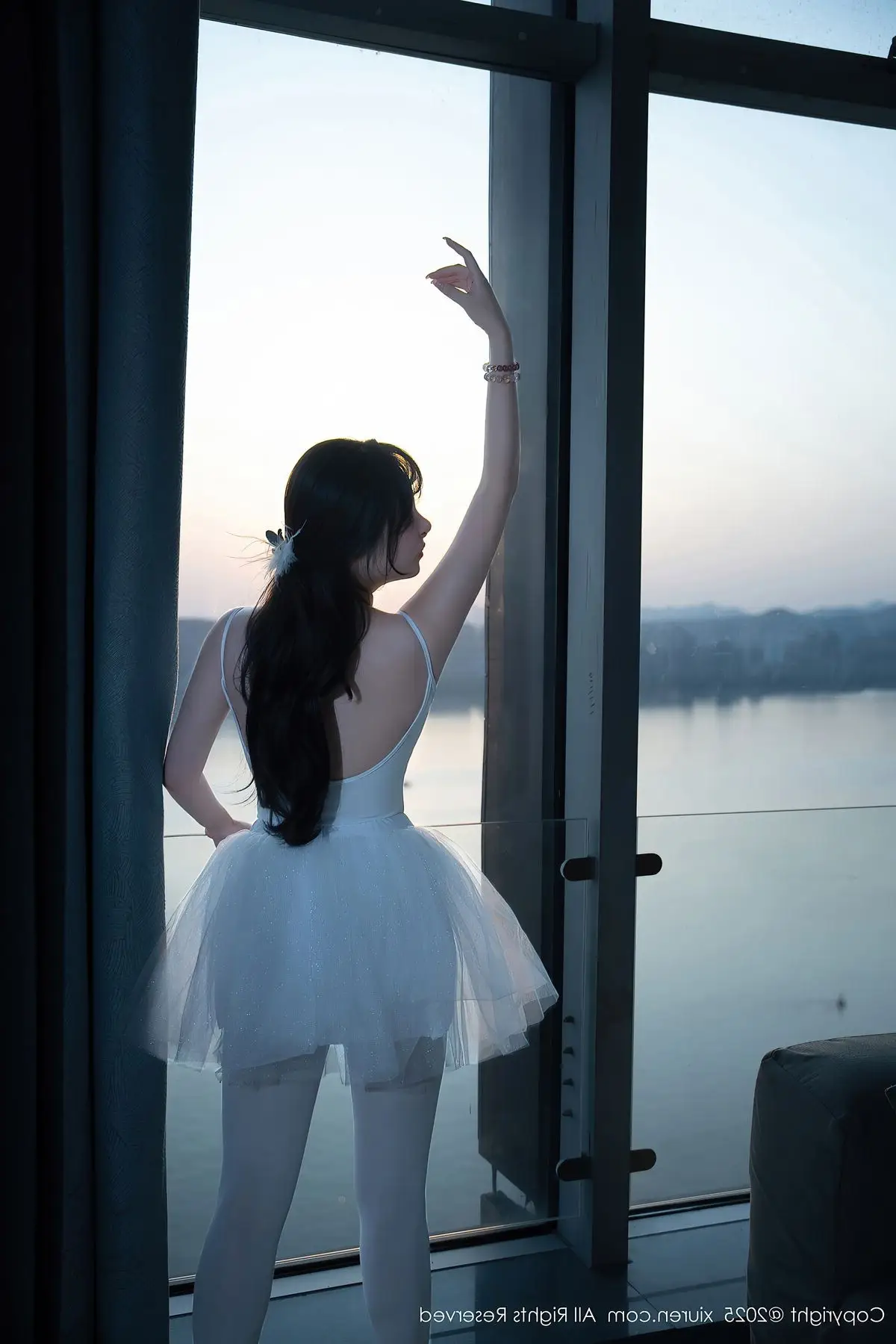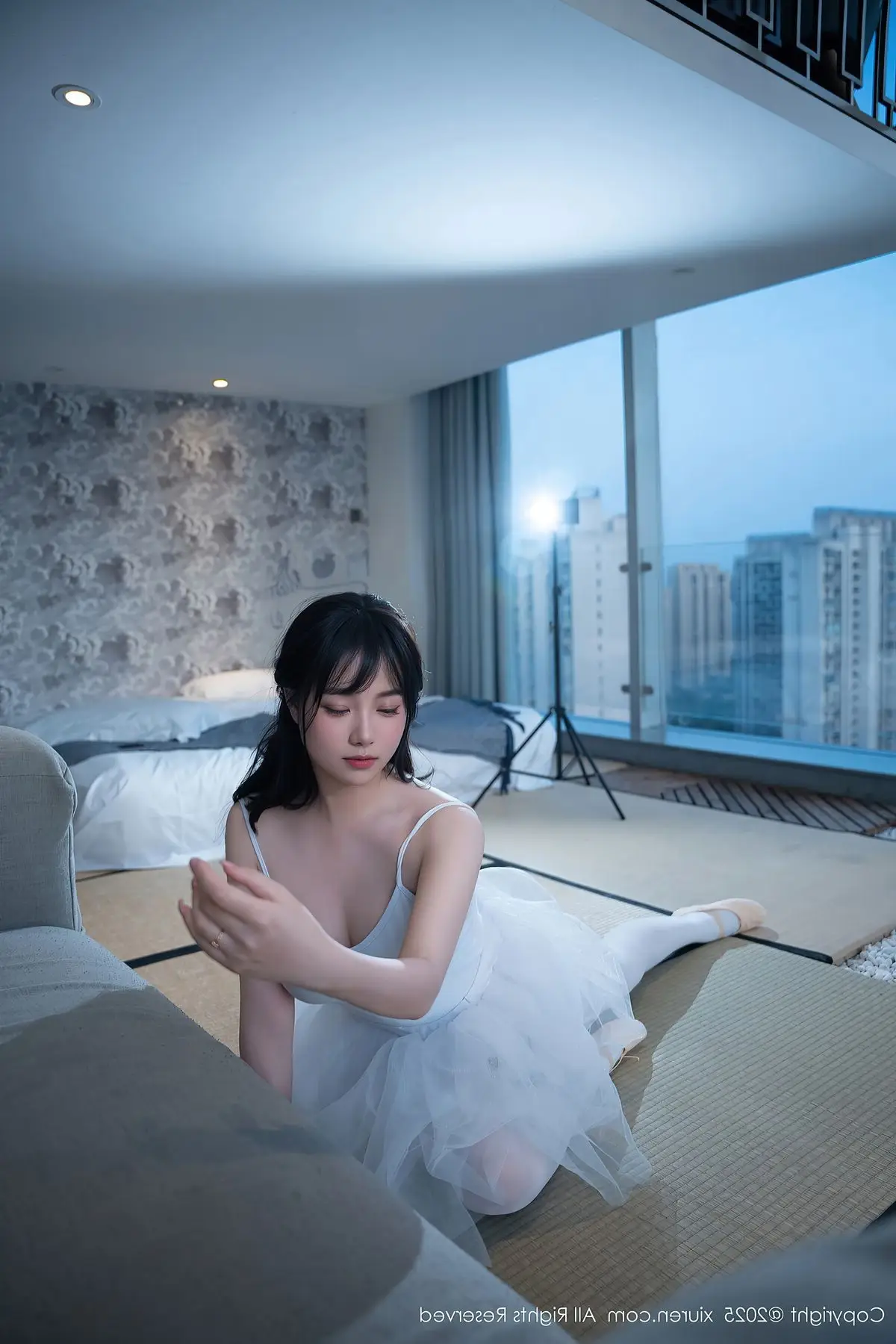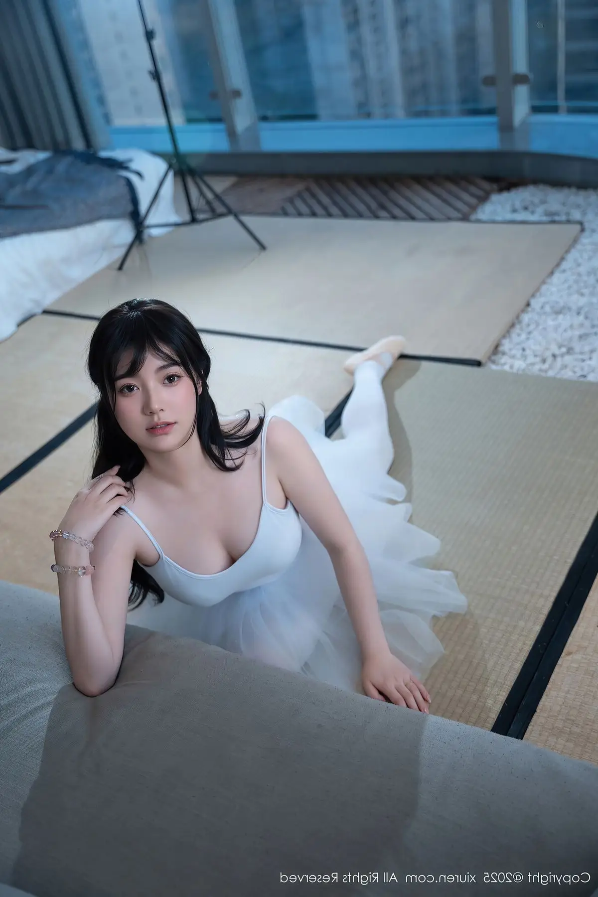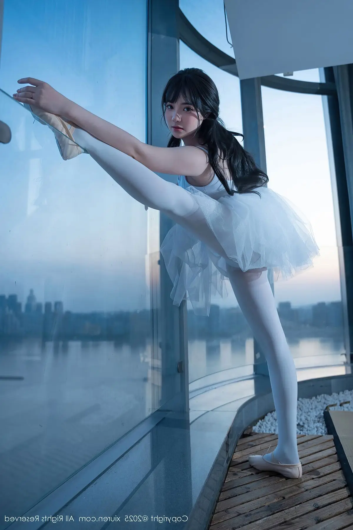 This stunning photo captures model Ruan Qing in a pristine white ballet ensemble, exuding both elegance and allure. She sits gracefully on the floor, her delicate arms raised in a classic ballet pose, showcasing remarkable fluidity and artistry. Soft light streaming through the large windows behind her highlights her figure and the ethereal flow of her tutu, creating a dreamlike atmosphere. Ruan Qing presents an image that is simultaneously pure and captivating, evoking a sense of tranquility and artistic beauty. She truly embodies the spirit of a ballet dancer, enchanting viewers with her grace and charm.#RuanQing #WhiteBallet #GracefulPose #DancerLife #XiuRen