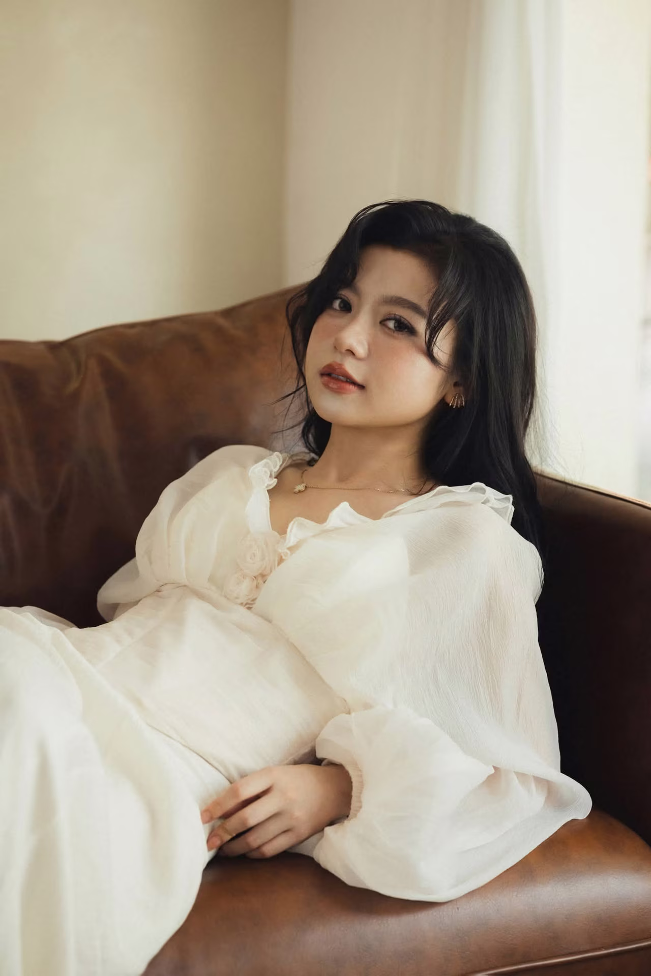 In this VGU No.26 photograph we encounter a captivating serene moment featuring a young Vietnamese woman. She wears a pristine white outfit with voluminous flowing sleeves creating an elegant and ethereal beauty. Her long dark hair cascades naturally highlighting her inherent gentle and graceful charm. The girl reclines comfortably on a soft sofa bathed in warm golden lamplight establishing a romantic and nostalgic ambiance. Her gaze meets the camera exuding confidence while maintaining an innocent purity. This is more than just a portrait it is a narrative of style and inner beauty. The image evokes a sense of peace and tranquility inviting viewers to admire the inherent grace of the modern Vietnamese woman. #Vietnamese #pretty #charmVGU No.25: Discover the Radiant Smile of a Young Woman with Relaxing Music