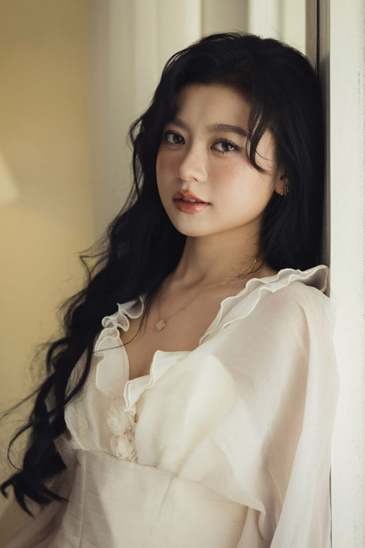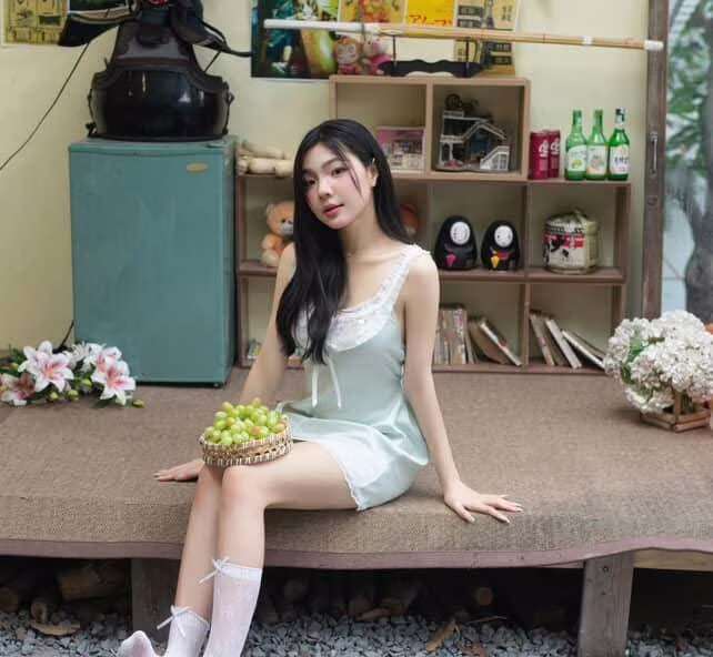 This stunning VGU No.35 image captures the pure and graceful beauty of a young woman. With her dark hair adorned by a delicate flower, she gently holds a fresh bouquet of soft-hued blooms. Her gaze is tender and dreamy, as if lost in thought amidst the lush, peaceful garden setting. Her pristine white dress further enhances her ethereal and refined appearance, creating a truly poetic image. This is a serene, dreamy moment where natural beauty and a pure soul perfectly intertwine. More than just a portrait, this photograph tells a story of quiet contemplation and inherent charm, evoking romantic feelings and admiration for East Asian elegance. #Vietnamese #pretty #charmVGU No.34: Captivating Asian Muse: Serene Beauty in a Delicate Pink Slip Dress