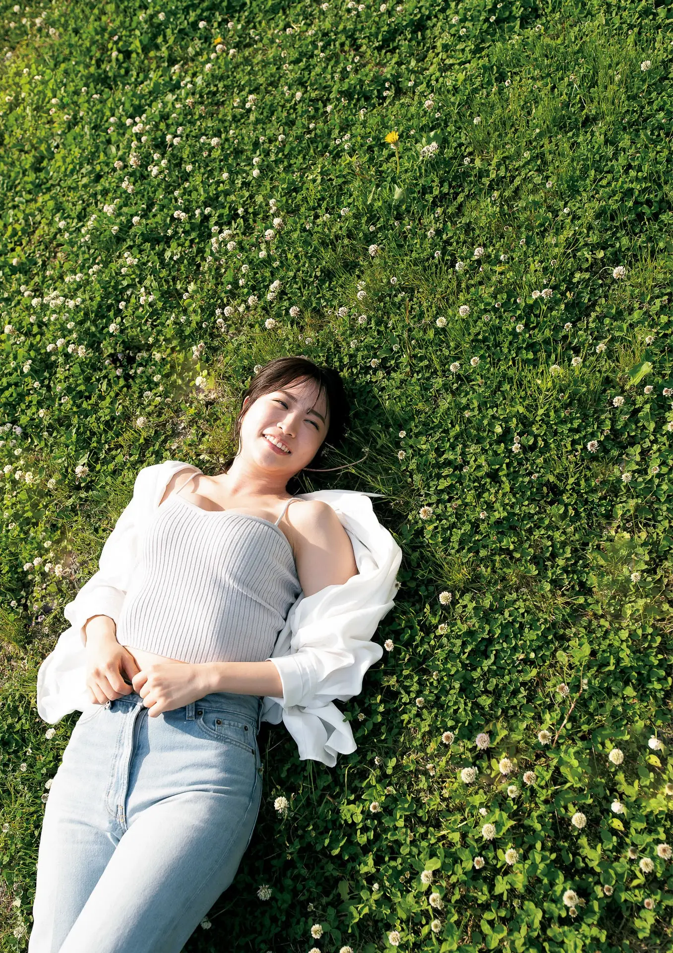 Suzuhara Riko: Radiant Smile On Green Grass Soft Warm Moments Of A Japanese Girl
