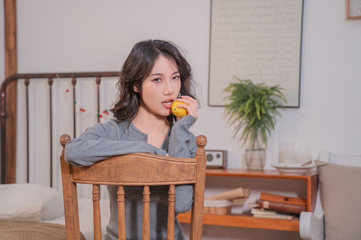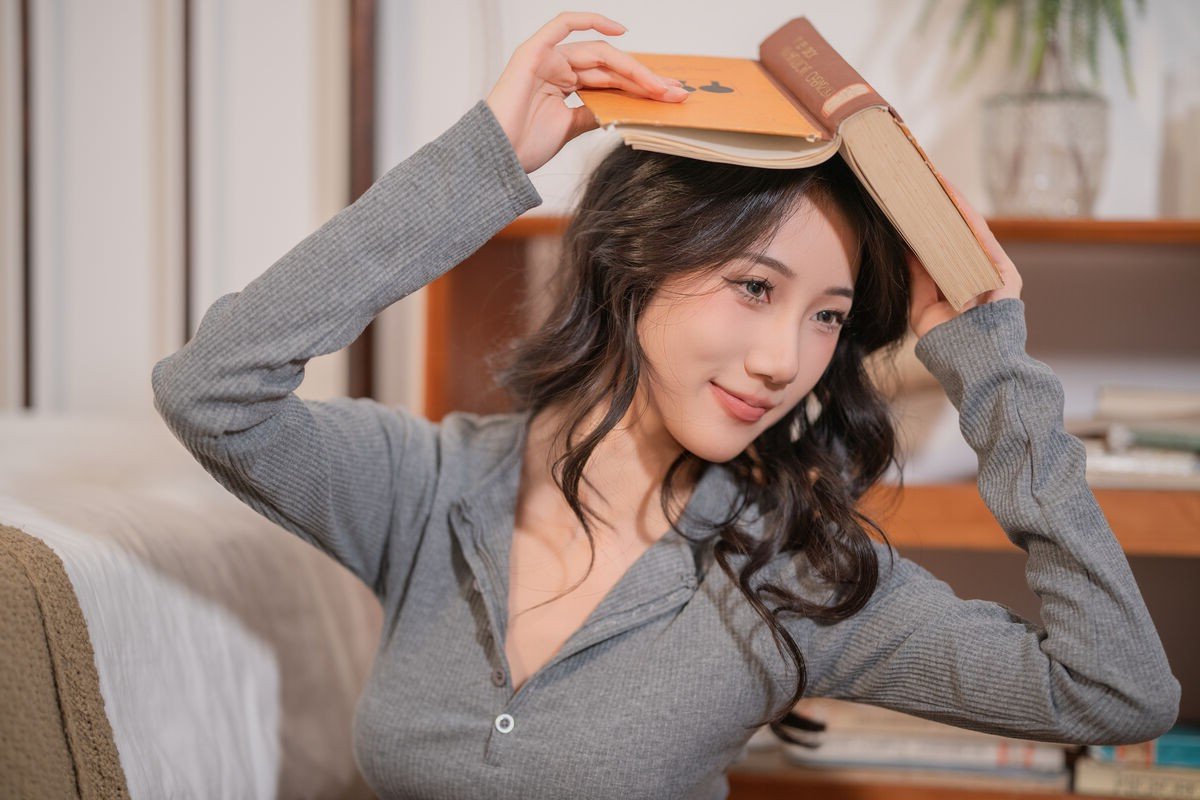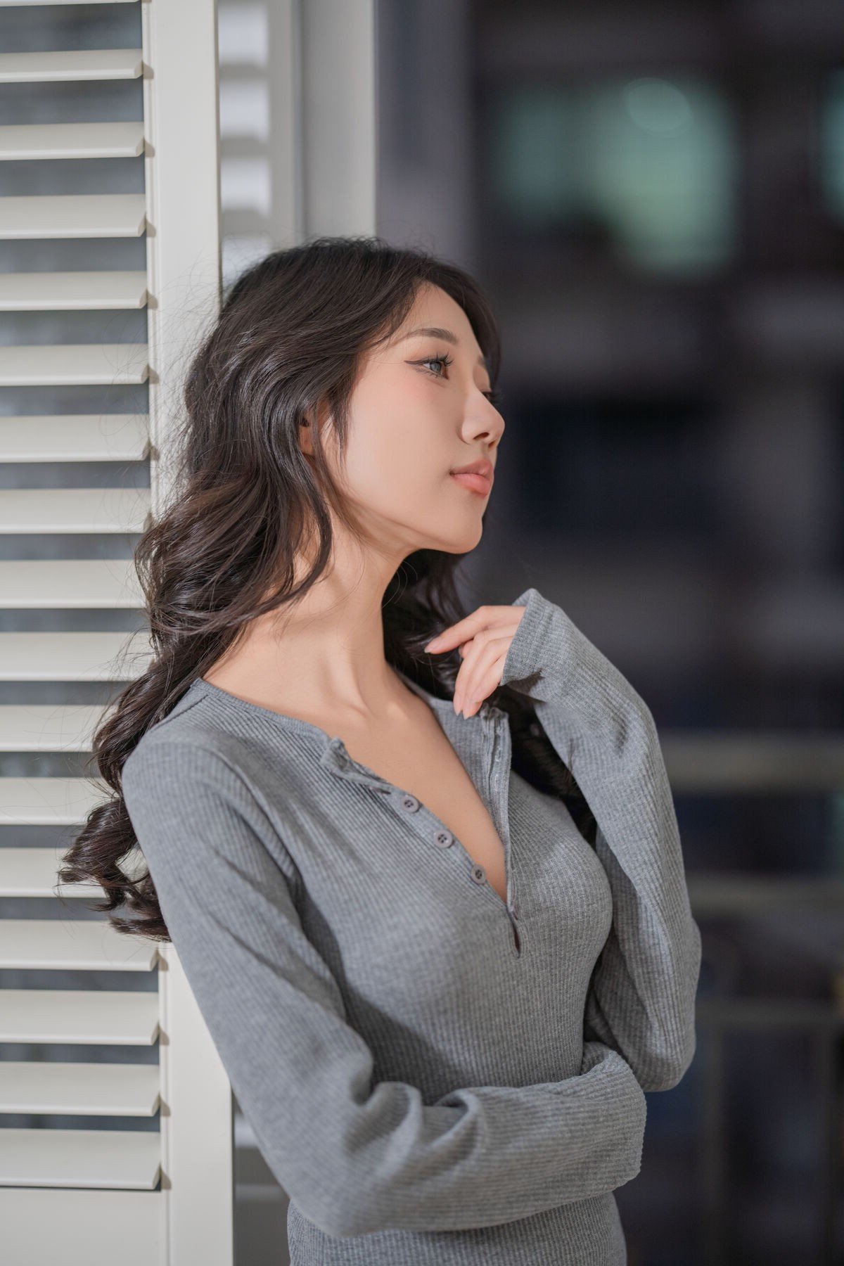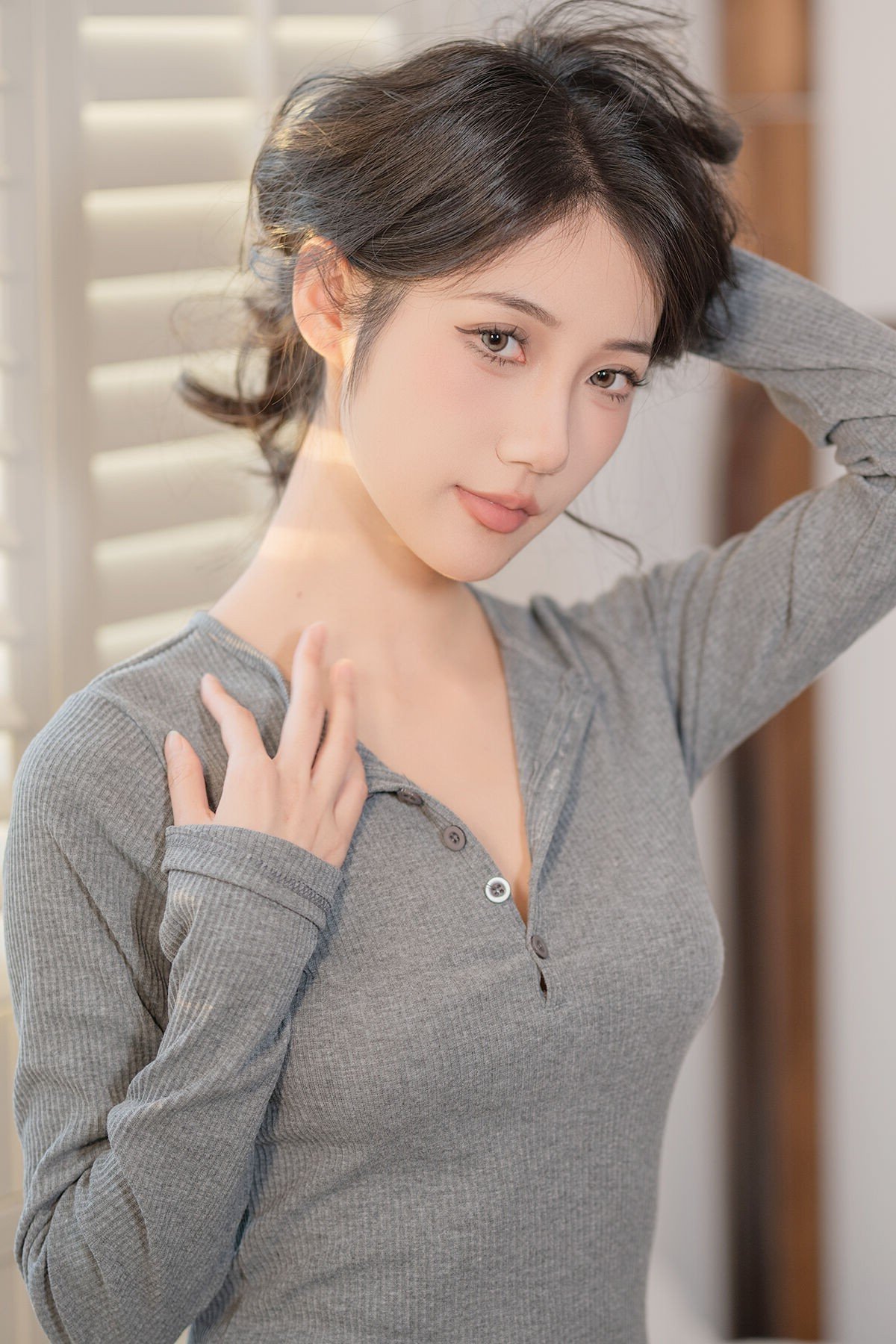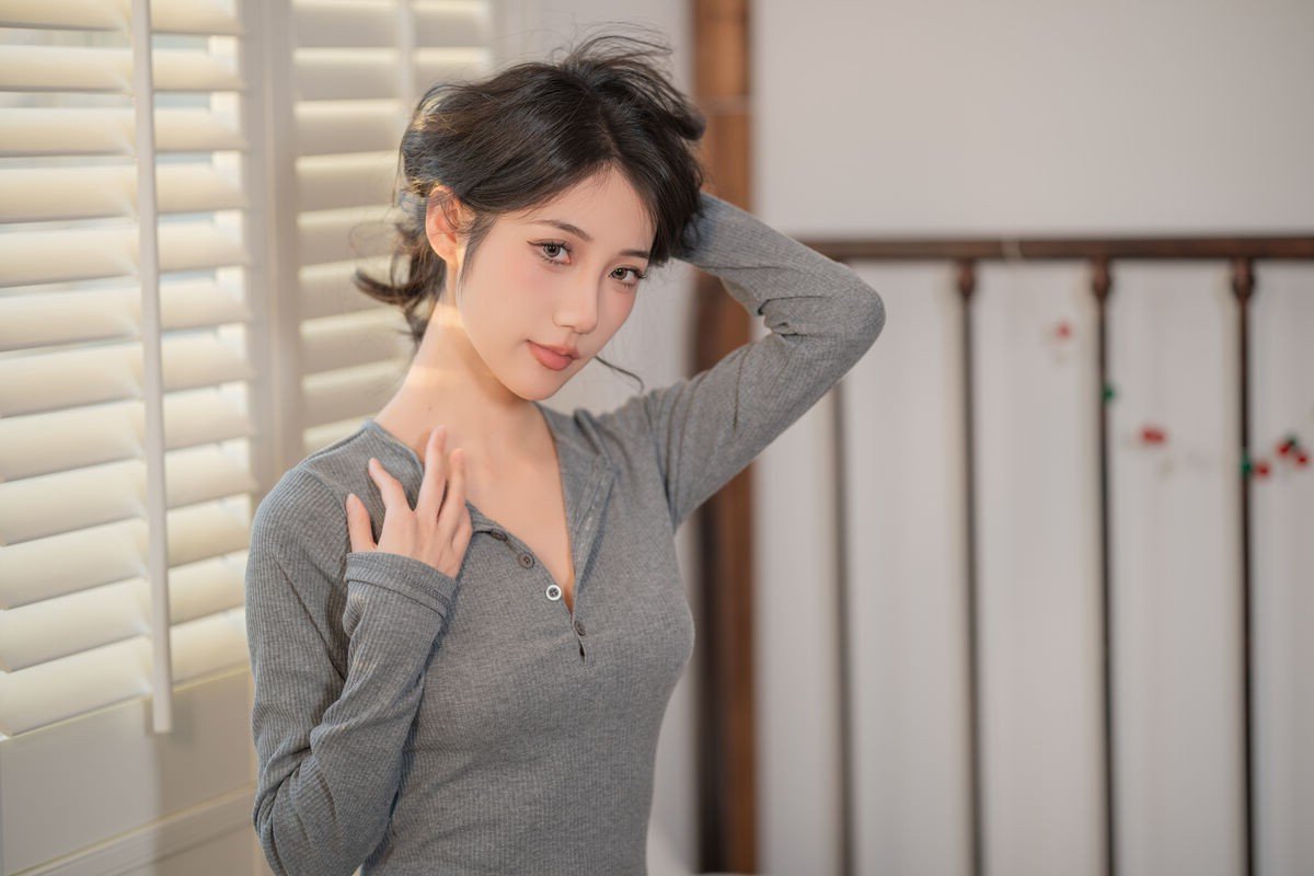 This stunning photograph features model O1ne Wan exuding natural elegance and captivating charm. She showcases grace in a simple yet sophisticated gray long-sleeved top that accentuates her slender figure and soft contours. The gentle lighting highlights her smooth skin and flowing hair, creating an intimate and emotional moment. O1ne Wan's deep eyes and subtle smile invite viewers to admire a beauty that is understated yet utterly compelling. This image is a vivid testament to Art Language YiTuYu艺图语 where every small detail tells a story of elegance and allure transforming the photograph into a genuine and memorable work of art.