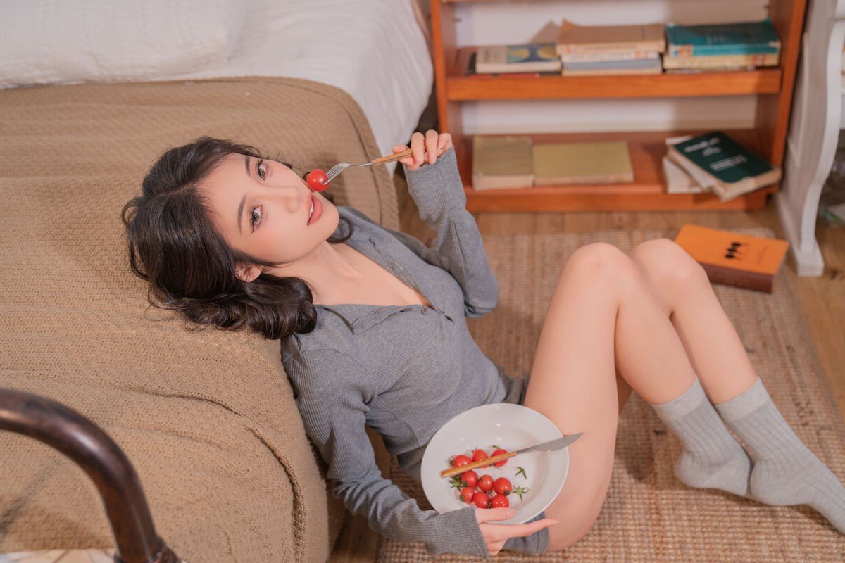 Elegant Beauty of Model O1ne Wan in Gray Top - YiTuYu Vol.8302