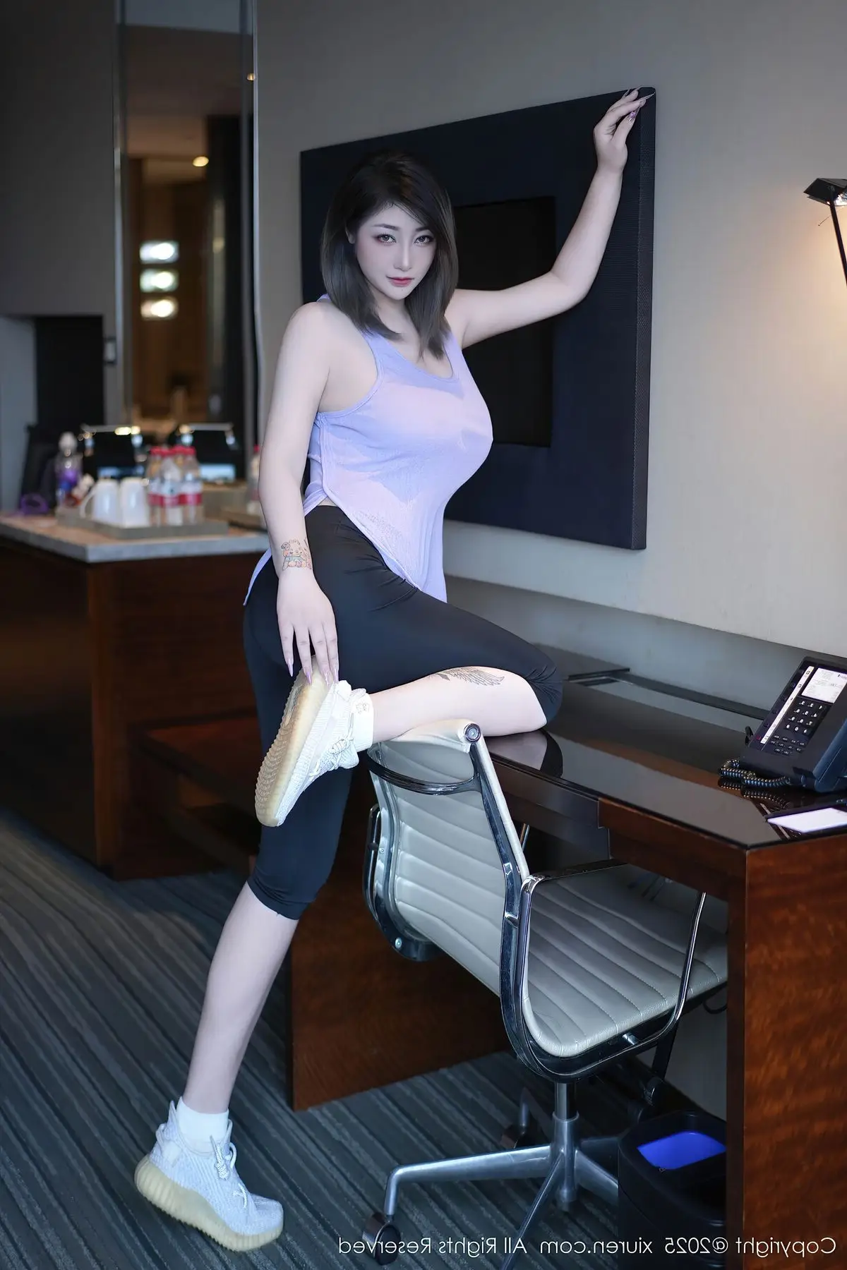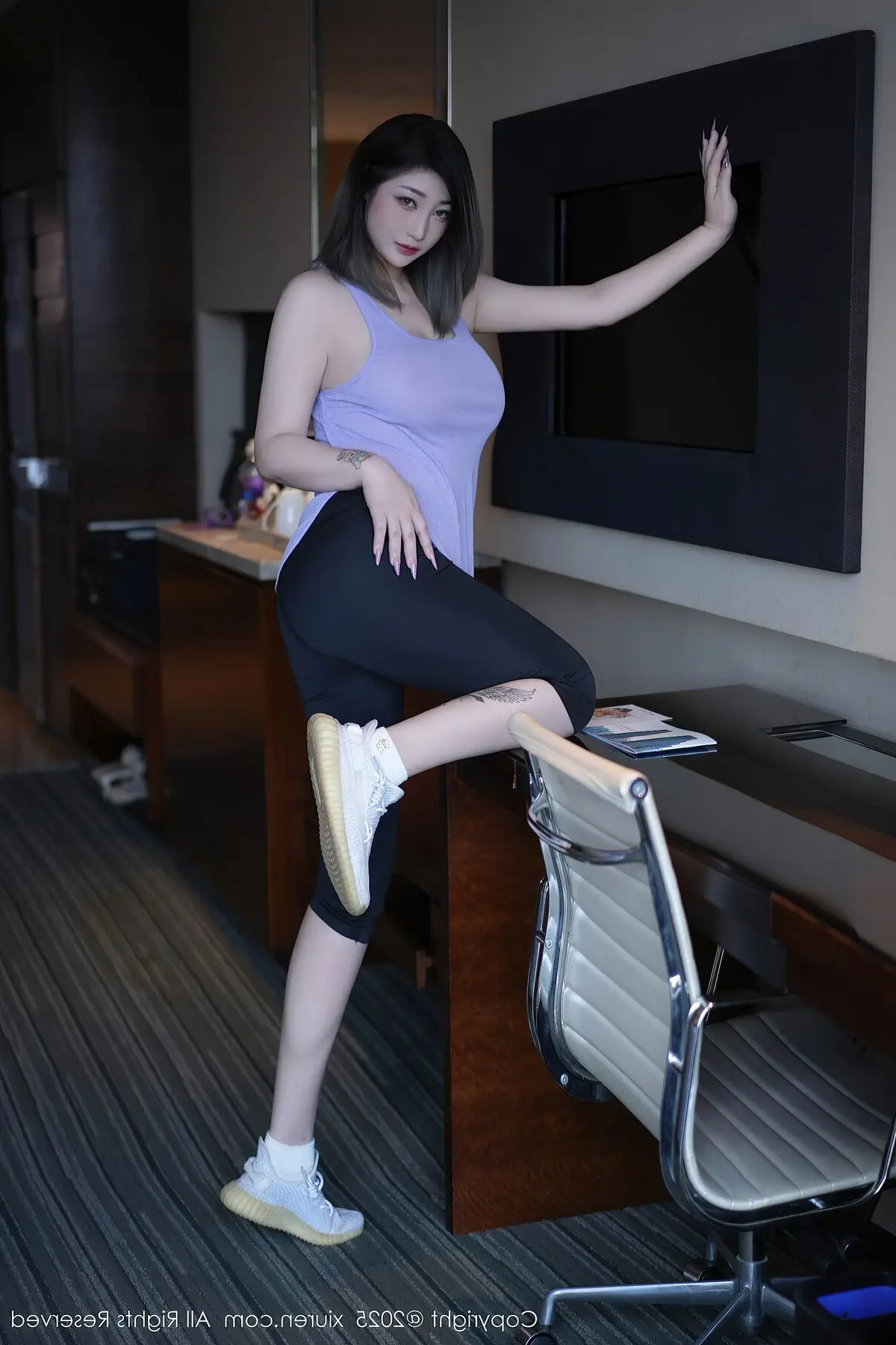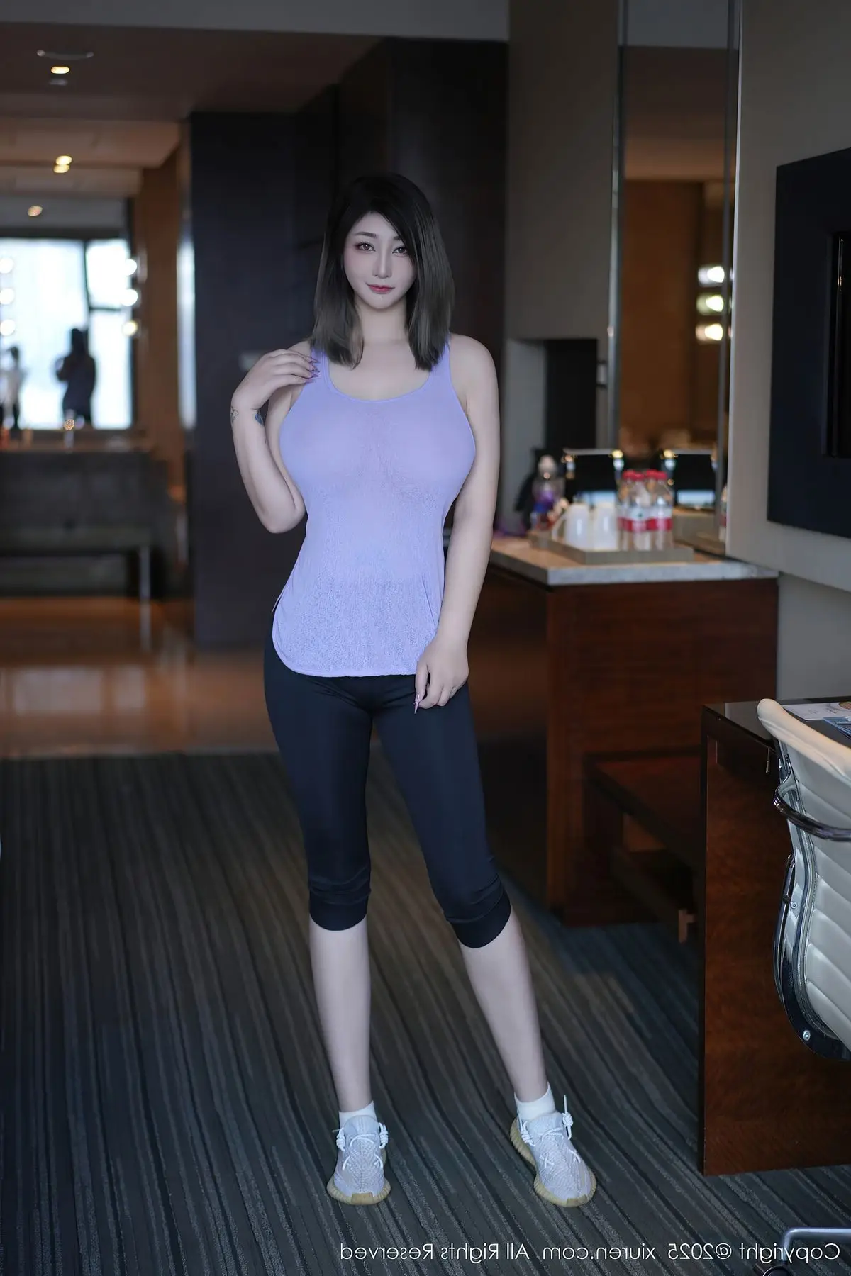 Immerse yourself in the impressive XiuRen No.10682 collection, where model Da Ji Toxic shines with a healthy and dynamic beauty. Dressed in simple yet figure-flattering sportswear, Da Ji Toxic skillfully highlights her alluring curves and confident demeanor. The light purple tank top, paired with tight black leggings and white athletic shoes, creates an overall look that is both elegant and sensual. Each photograph exudes a strong, individual personality, yet remains soft and feminine. This photo set is sure to inspire an active lifestyle and modern beauty.