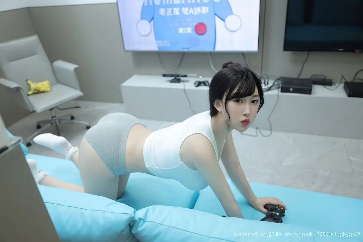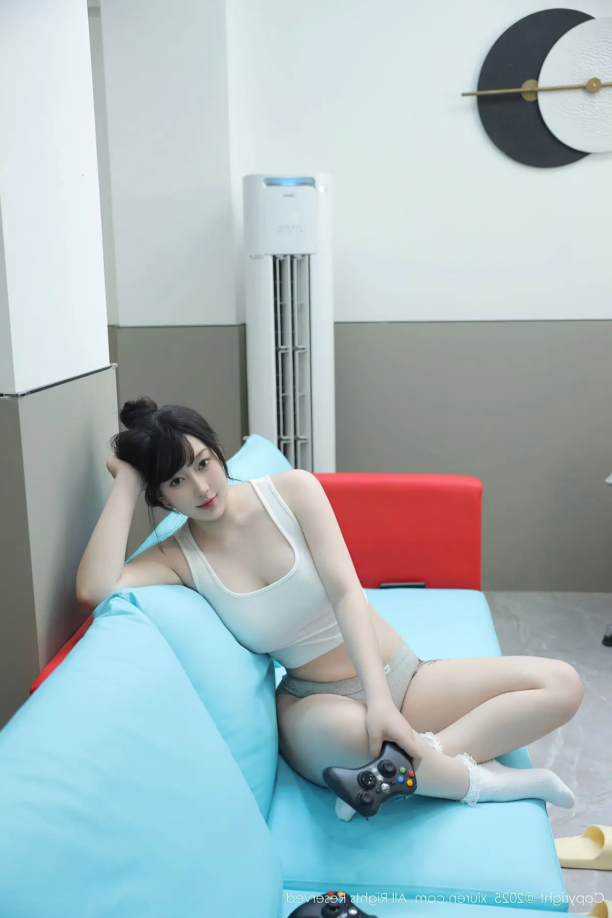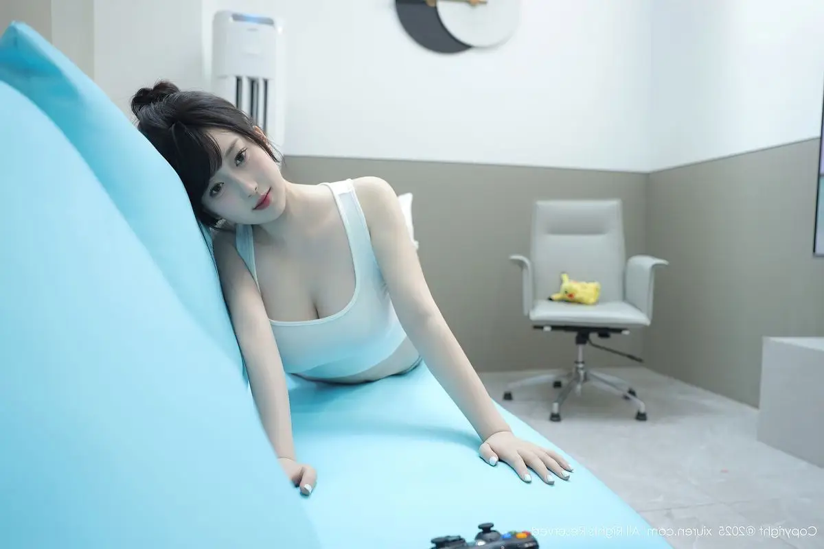 The XiuRen No.10676 collection features Li Gin En Irene showcasing her sweet and captivating beauty. In a modern studio setting the model gracefully poses on a soft light blue lounge chair. Li Gin En Irene appears utterly charming in simple attire that highlights her natural elegance. Her eyes draw viewers into a mesmerizing personal world. Every captured moment radiates Li Gin En Irene's relaxed confidence. This is a truly admirable photo series where beauty and style blend perfectly creating an irresistible appeal. Discover the enchanting allure of Li Gin En Irene in this exquisite compilation.
