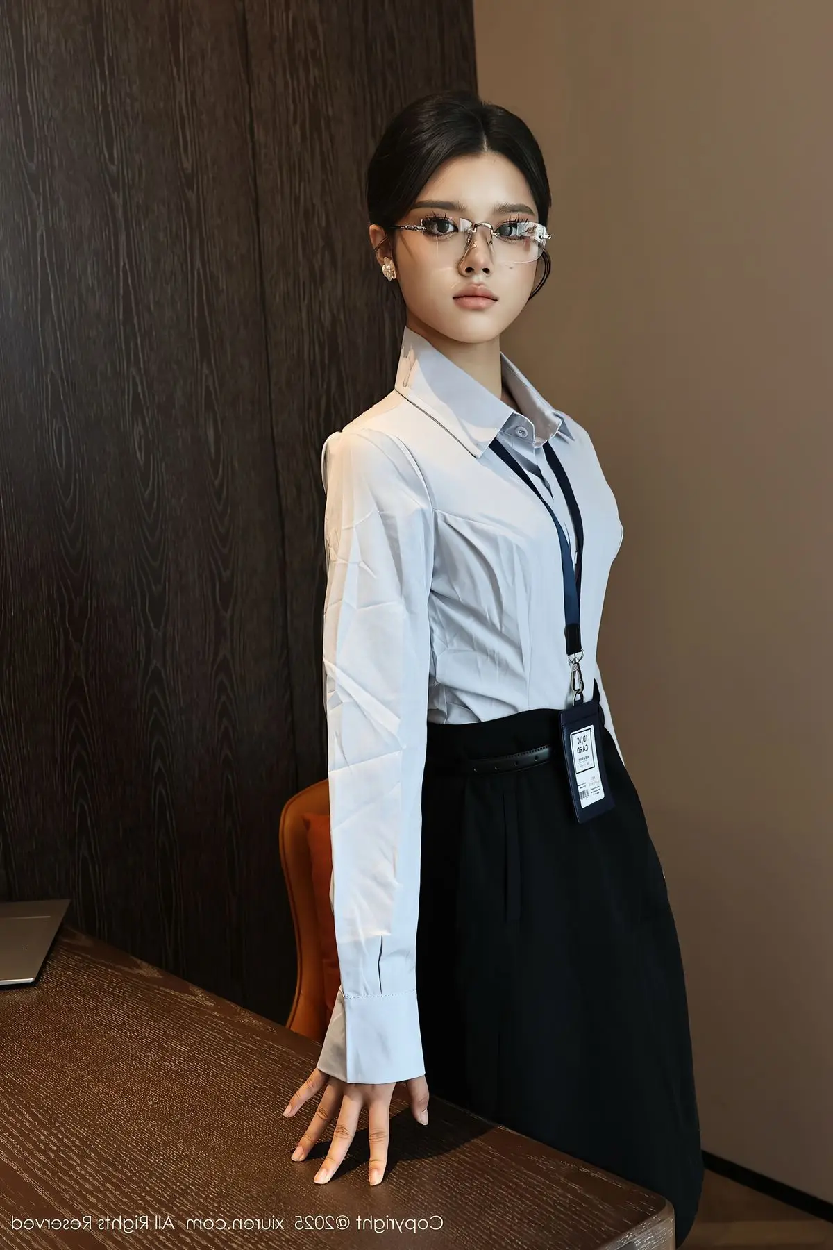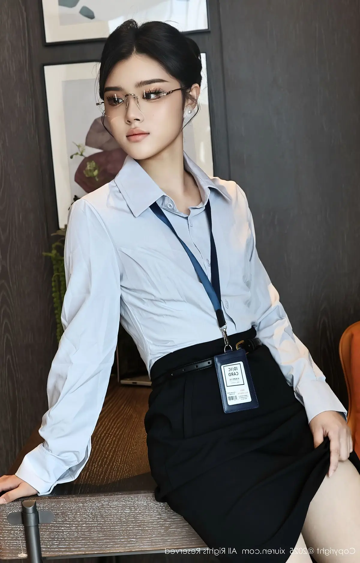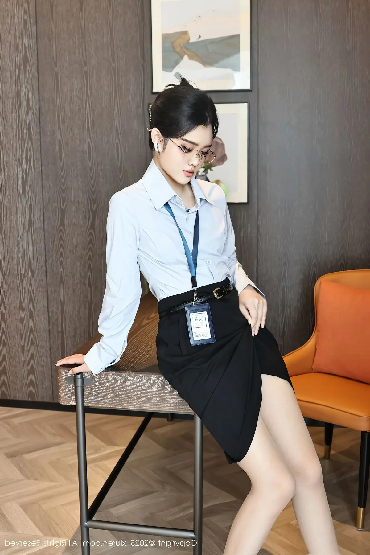 Discover the captivating allure of Nuo Li Zi in the XiuRen No10674 collection This office lady exudes sophisticated charm in her elegant light blue shirt and sleek black pencil skirt embodying professionalism with a touch of irresistible grace Every detail from her sheer stockings to her exquisite high heels contributes to a confident and refined demeanor Nuo Li Zi portrays a modern office woman both strong and independent yet retaining her graceful and enticing appeal This image not only captures a moment but also conveys a narrative of style and self-assurance in the workplace Immerse yourself in this subtle elegance and charm
