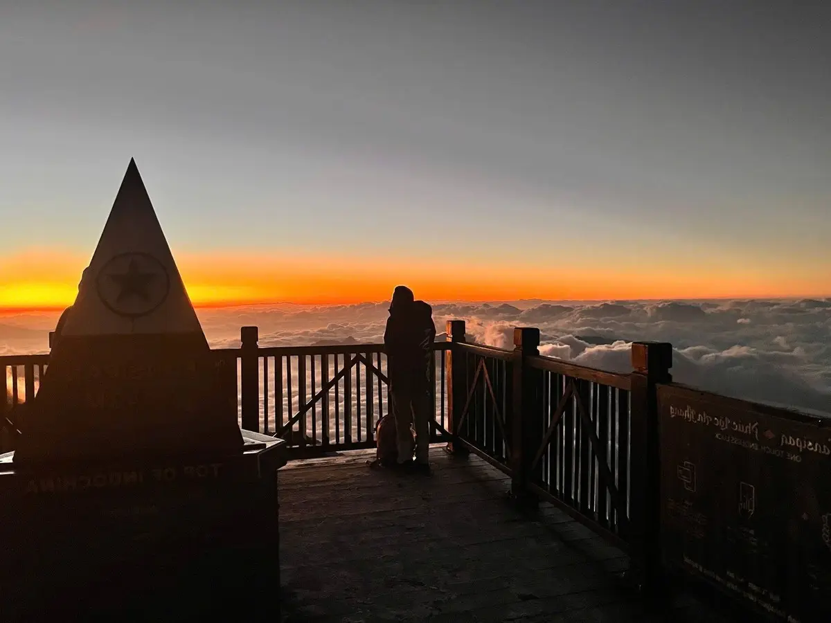 This stunning photo captures visitors captivated by the ethereal sea of clouds from Fansipan peak. On the 'Roof of Indochina', the clear blue sky merges with endless white cloud formations, creating a magnificent and unforgettable panorama. It’s the perfect moment for 'cloud hunting' and experiencing the miraculous beauty of Northwest nature. Travelers can feel serenity and pride in conquering this majestic summit. The grand mountain landscape alongside the mystical sea of clouds offers a unique Fansipan travel experience, captivating every eye and heart that loves nature. A year-end trip to admire this beauty will undoubtedly leave a profound impression.