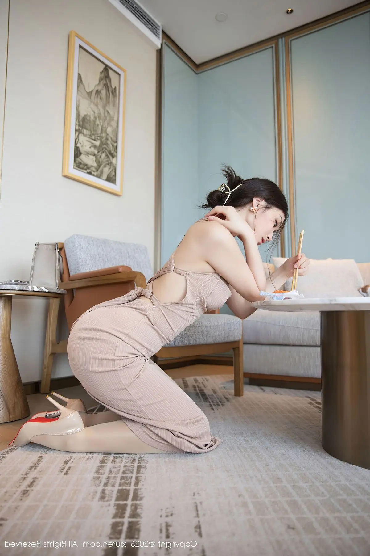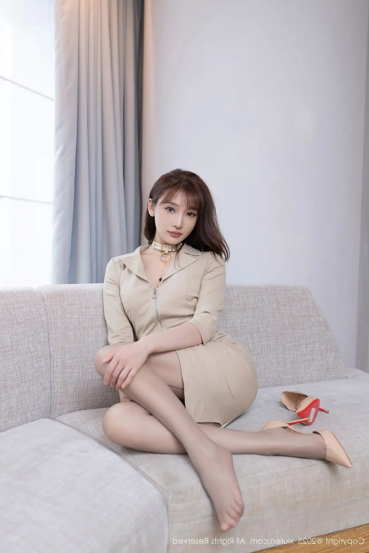 Dive into the exclusive XiuRen No.10677 photo collection featuring the mesmerizing model Lu Xuan Xuan. In this captivating shot Lu Xuan Xuan exudes sophisticated charm clad in an elegant beige dress that perfectly accentuates her graceful silhouette. The dress with its stylish front zipper and belted waist creates a look that is both professional and subtly alluring reminiscent of a chic confident secretary. Her direct gaze and poised demeanor convey a compelling self-assurance drawing viewers into her world. This image is a highlight from the special XiuRen series showcasing Lu Xuan Xuan's unique appeal and artistic presence making it a truly unforgettable visual experience for admirers of fashion and beauty.