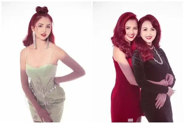The image showcases the stunning young woman Dieu My daughter of Miss Dieu Hoa radiating fresh beauty and chic fashion style truly like a hot girl Her vibrant red hair styled in a high bun along with long tassel earrings creates a captivating highlight The formfitting mint green dress accentuates her slender figure and the sparkling embellishments at the waist further enhance her allure Despite not being active in showbiz Dieu My consistently makes a strong impression on the public with her outstanding appearance and confident demeanor She is about to embark on a new chapter in life with her marriage to an Indian husband a cross-border love story promising many interesting and happy moments This image perfectly represents the modern beauty and independent life choices of the younger generation.