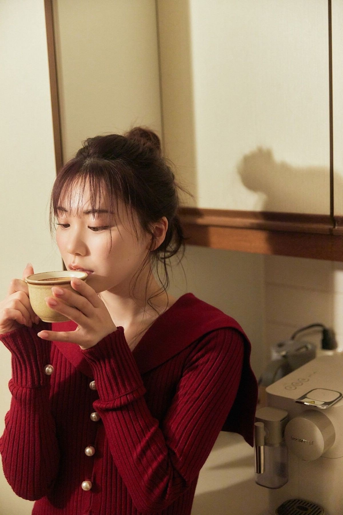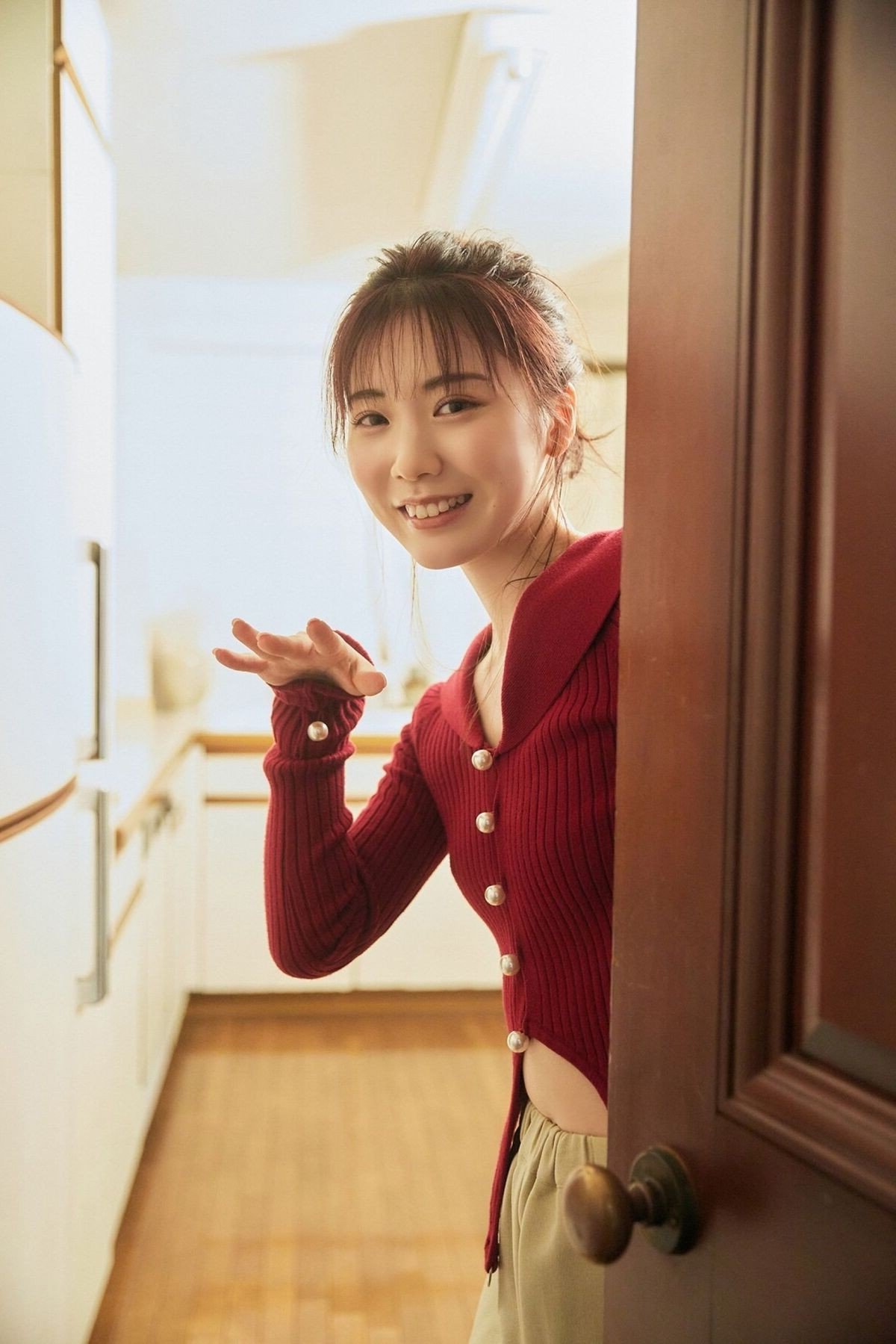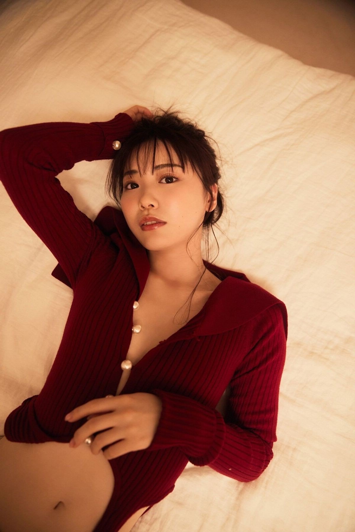 This stunning image features JP Mio Ishikawa a model renowned for her graceful and captivating beauty She is adorned in pure white attire an off-shoulder knitted top elegantly revealing her delicate shoulders and slender waist perfectly complemented by simple yet alluring white bikini bottoms Her gentle smile and soft gaze directly into the camera create a profound connection with the viewer The elegant pose with one leg slightly bent exudes natural beauty and quiet confidence Mio Ishikawa truly embodies grace and radiant charm highlighting her most beautiful essence This photograph not only captures a moment but also conveys deep emotion and the irresistible allure of a talented model It’s a perfect representation of her enchanting presence