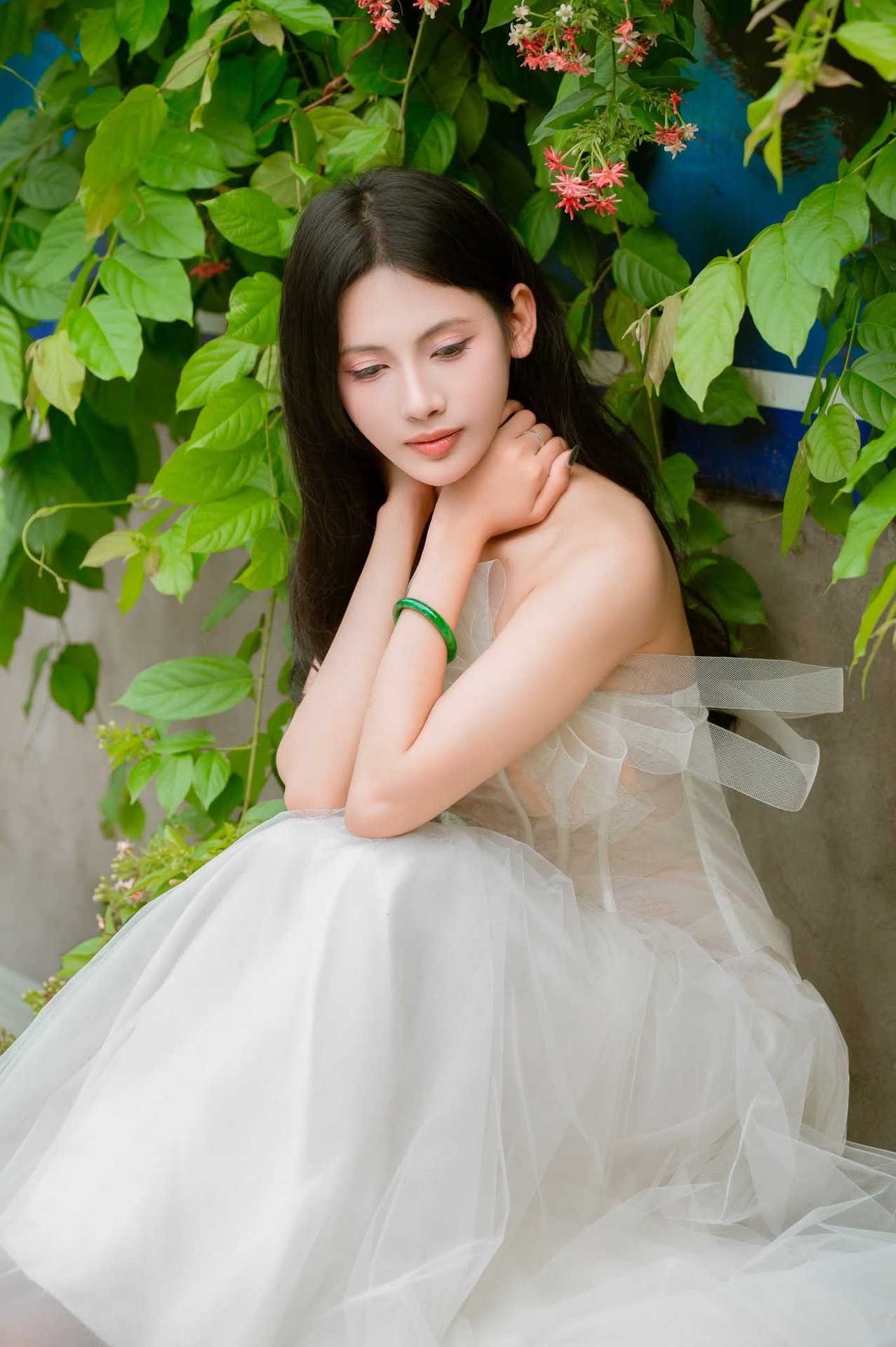 Captivating Traditional Portrait: Elegant Long-Legged Hot Girl in Dreamy Setting