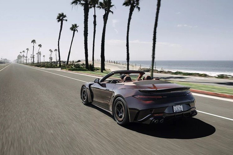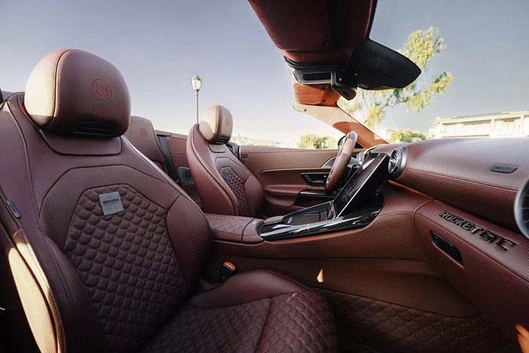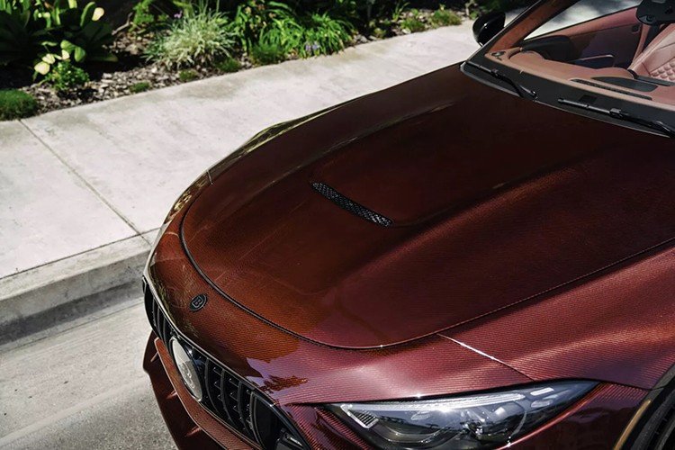 This stunning image showcases the magnificent Mercedes AMG SL 63 S, masterfully transformed by Brabus into the awe inspiring Rocket GTC DEEP RED. This high performance convertible sports car captivates with its alluring deep red carbon fiber body, a testament to exquisite craftsmanship and unique design. Boasting an incredible 985 horsepower, the Rocket GTC DEEP RED promises an exhilarating driving experience and unparalleled speed. It stands as a powerful symbol of luxury, prestige, and superior performance, asserting its position as one of the worlds most formidable custom supercars, destined to turn heads on any road.