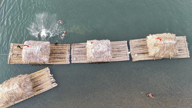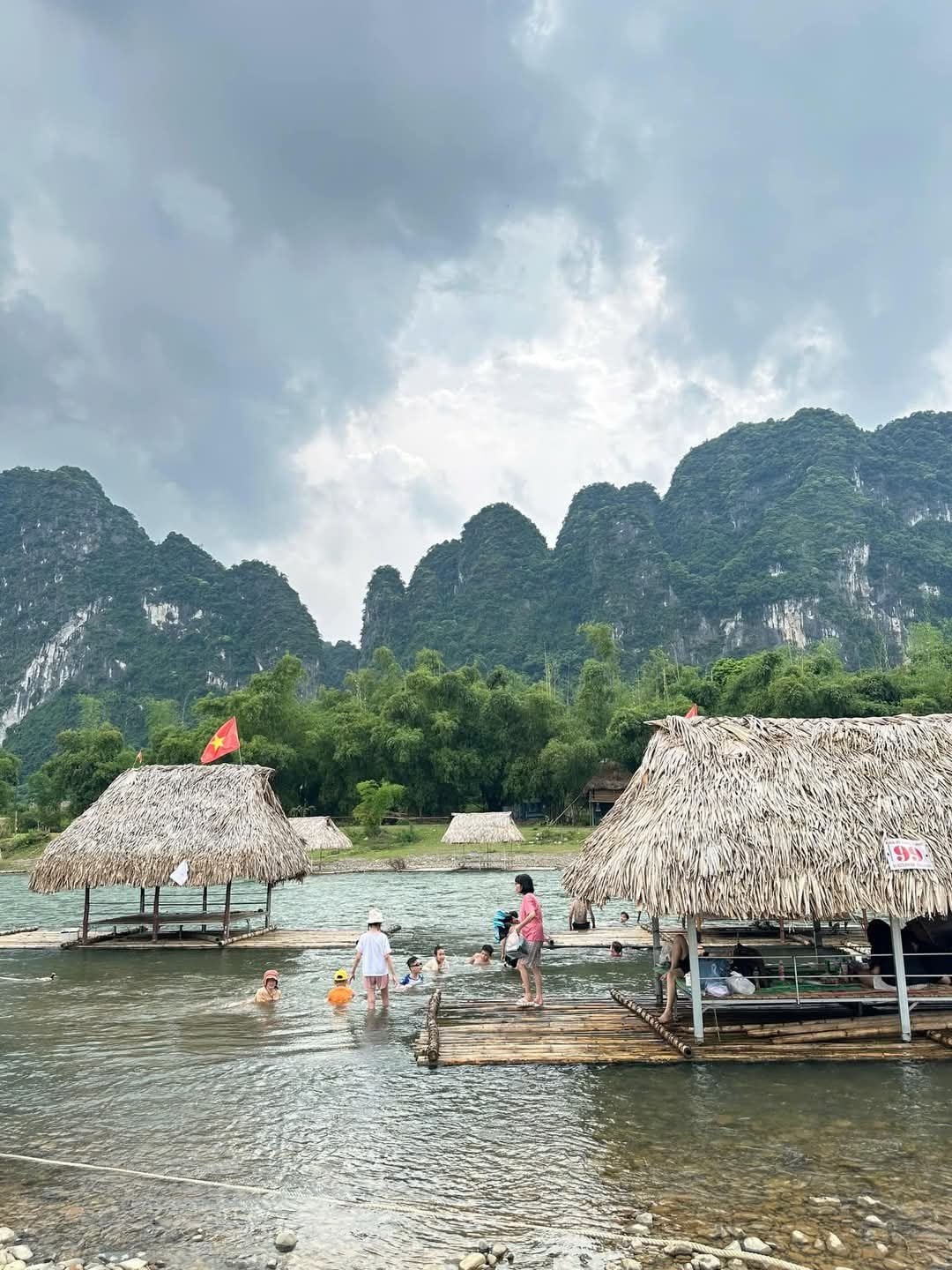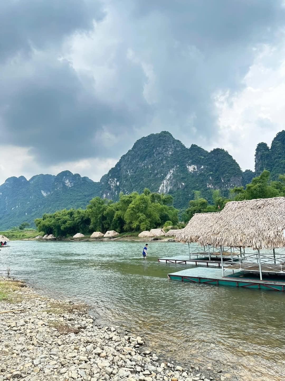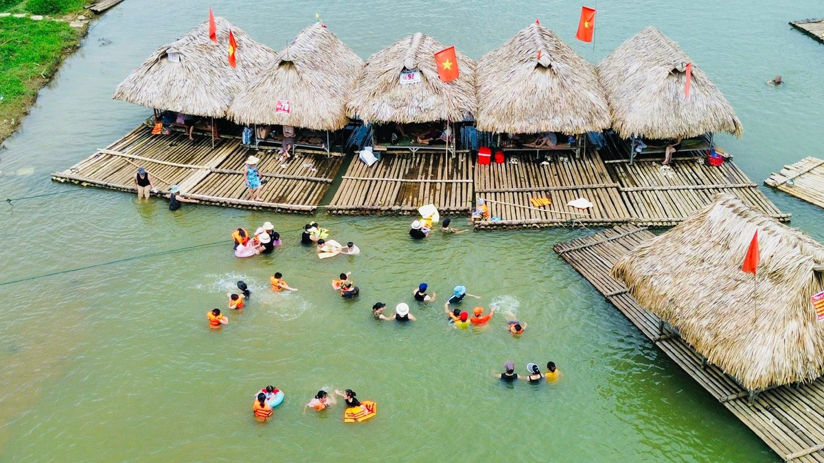 Explore the stunning **natural landscapes of Vietnam** at Boi River, Phu Tho. This unique setup, featuring tables and chairs placed directly in the crystal-clear water, offers an unparalleled relaxing experience. Guests can immerse themselves in the majestic scenery of **towering mountains**, breathe in the fresh air, and savor the profound tranquility characteristic of **Vietnamese rural tourism**. An ideal destination for **rafting experiences in Phu Tho** or other **Phu Tho ecological tourism** activities, discovering the grandeur of its mountains and the rich Mường culture. A truly memorable escape into the heart of Vietnamese nature.