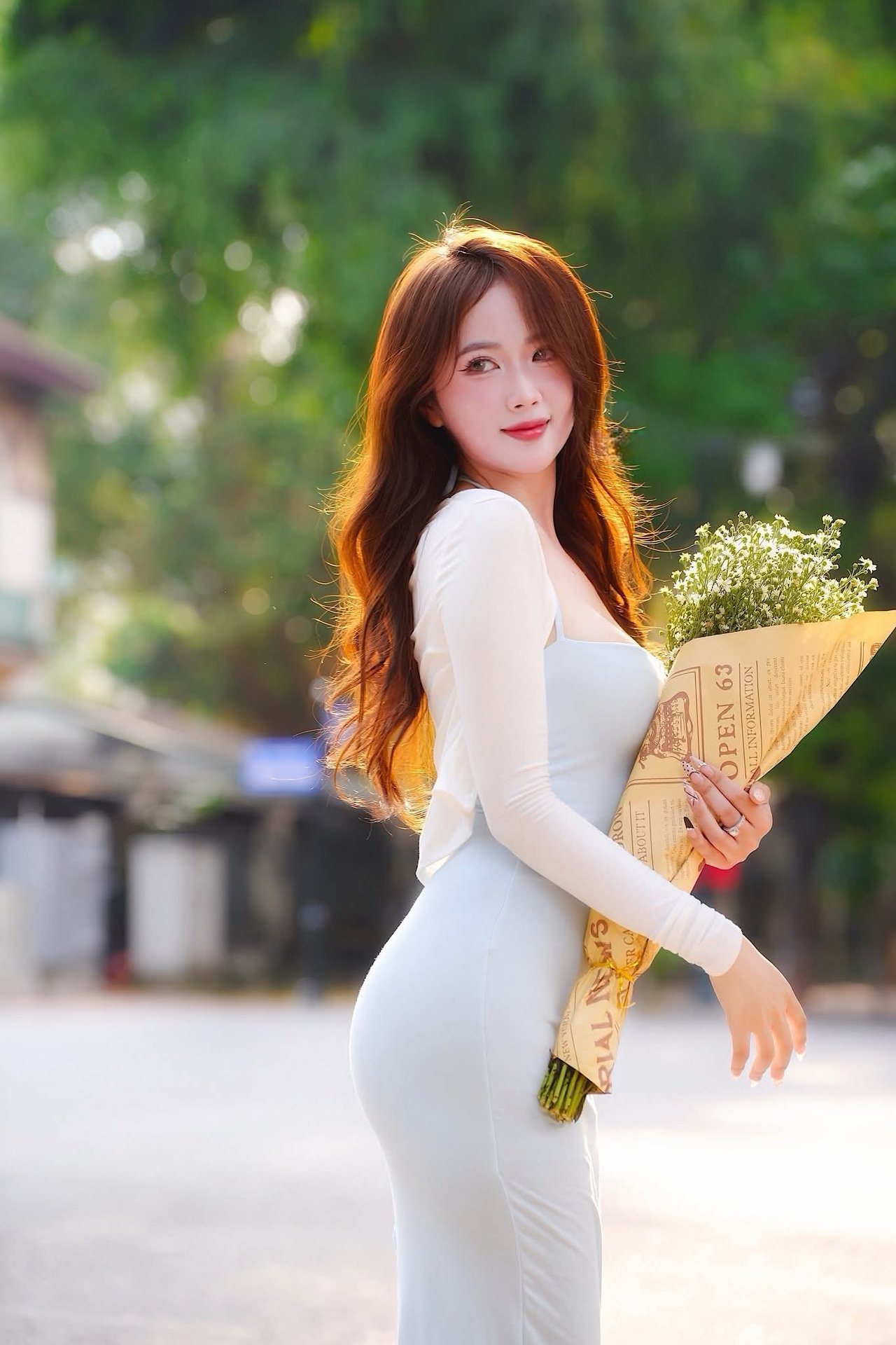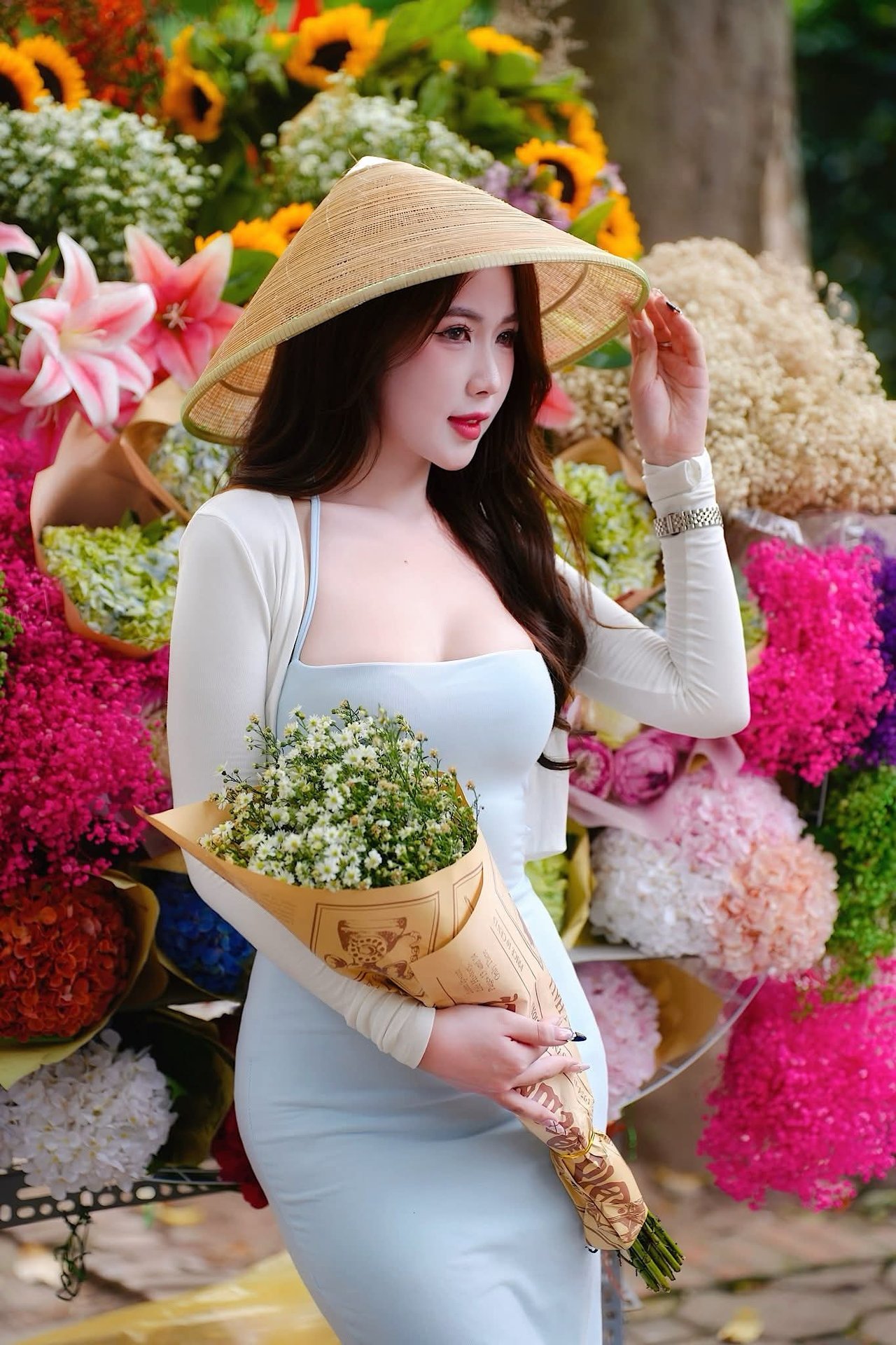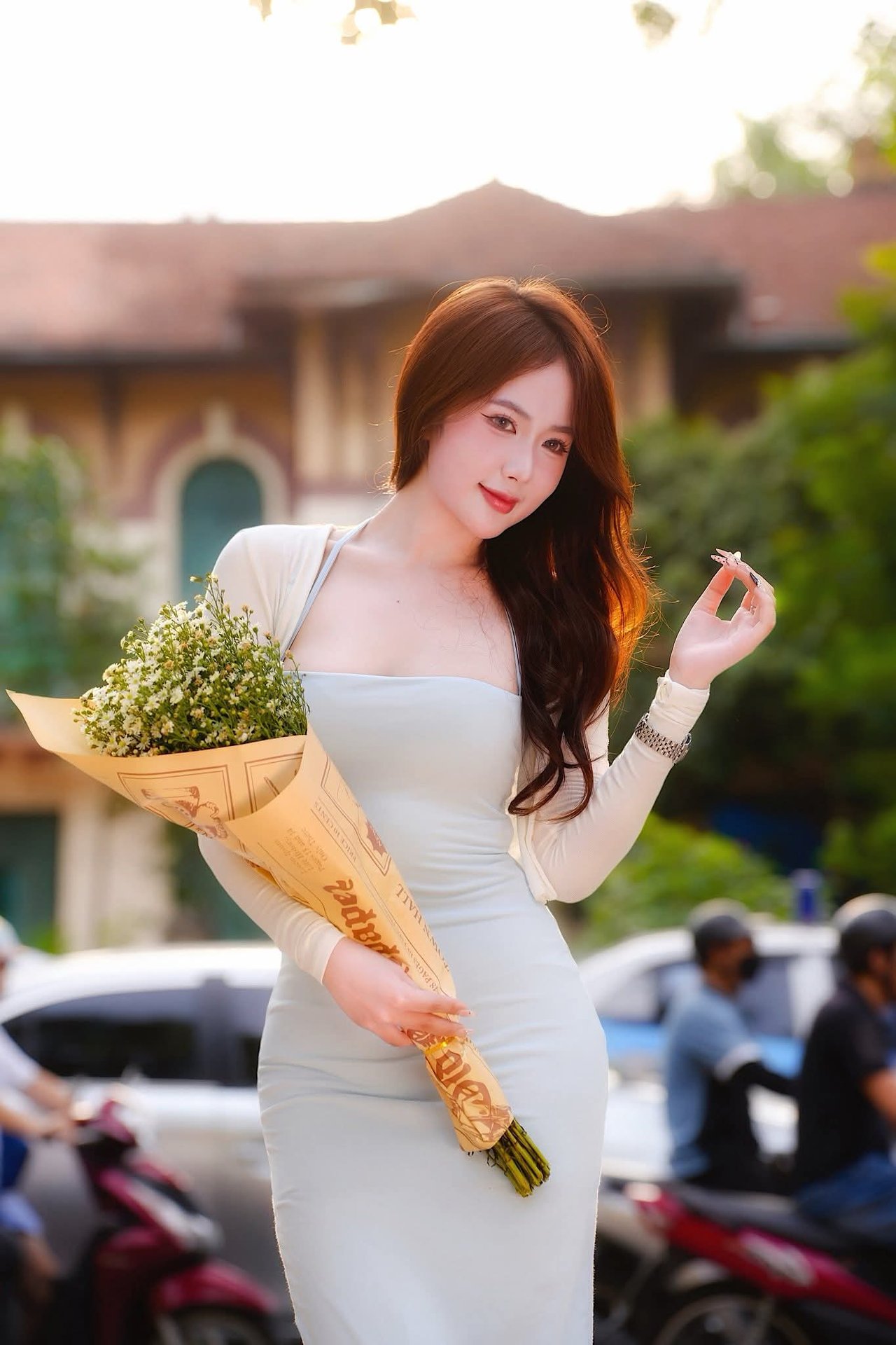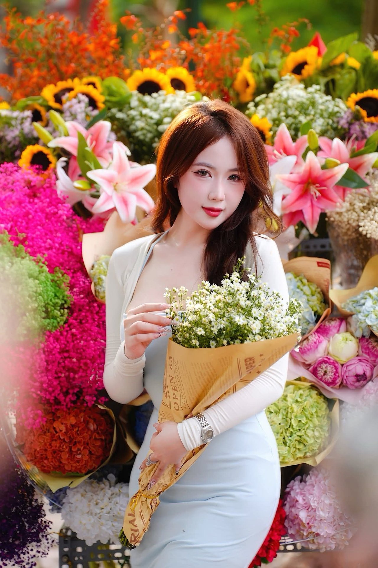 Cô gái Việt Nam dịu dàng trong mùa hoa, một con đường đầy màu sắc