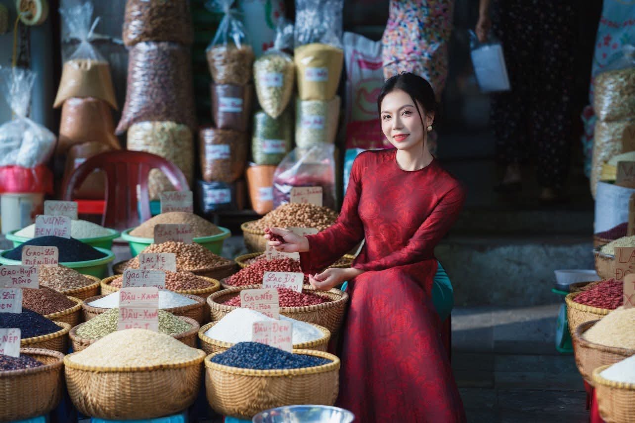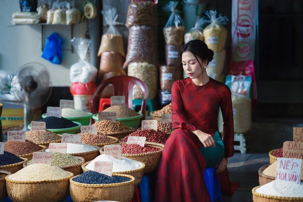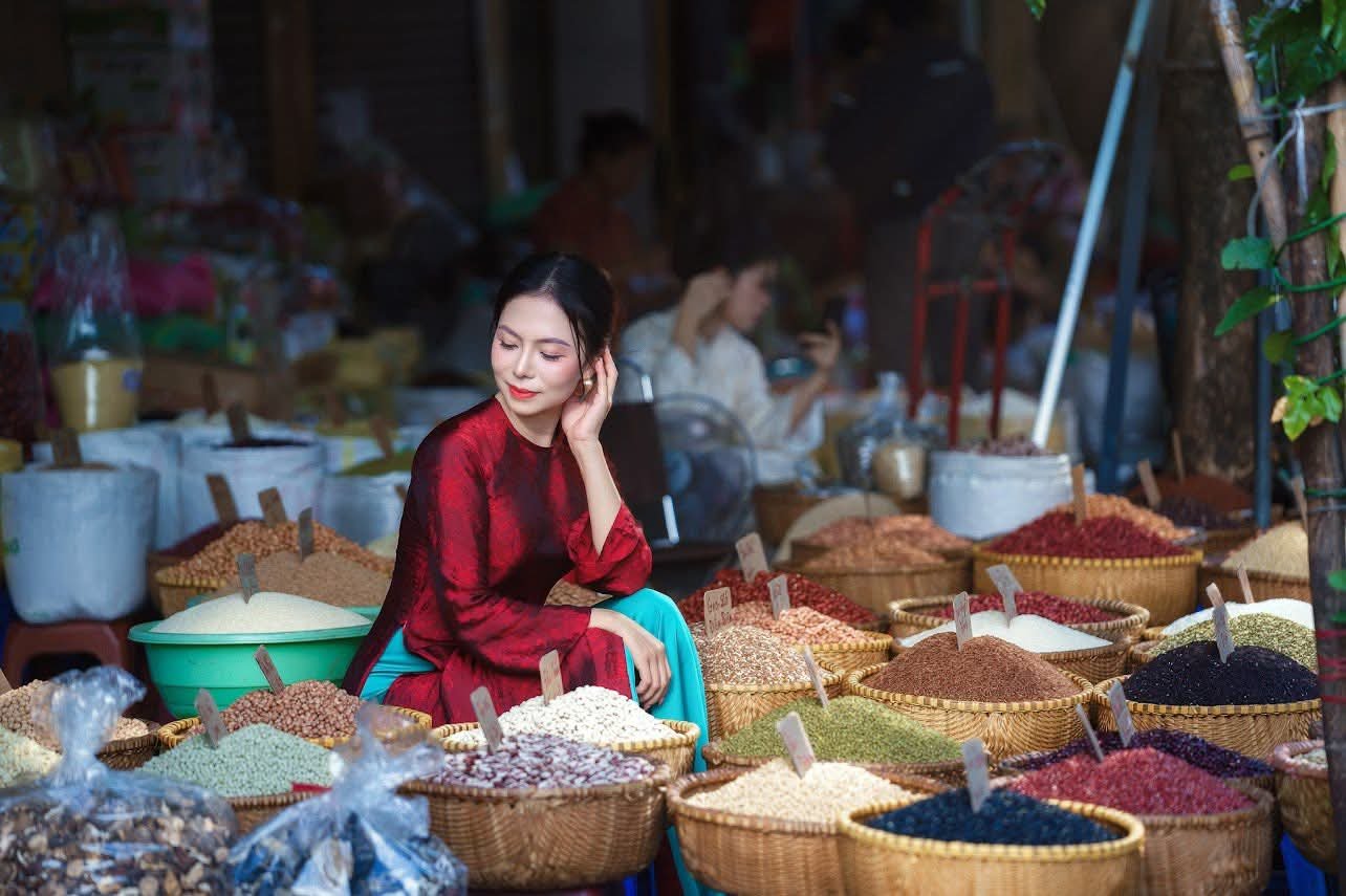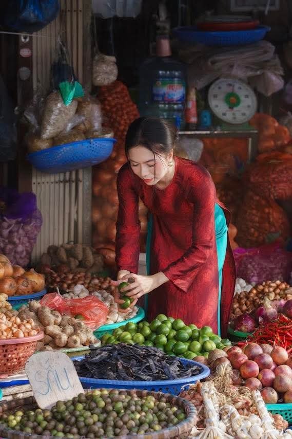 Chợ Việt, một nét thanh bình của cuộc sống thường nhật, áo dài Việt Nam dịu dàng
