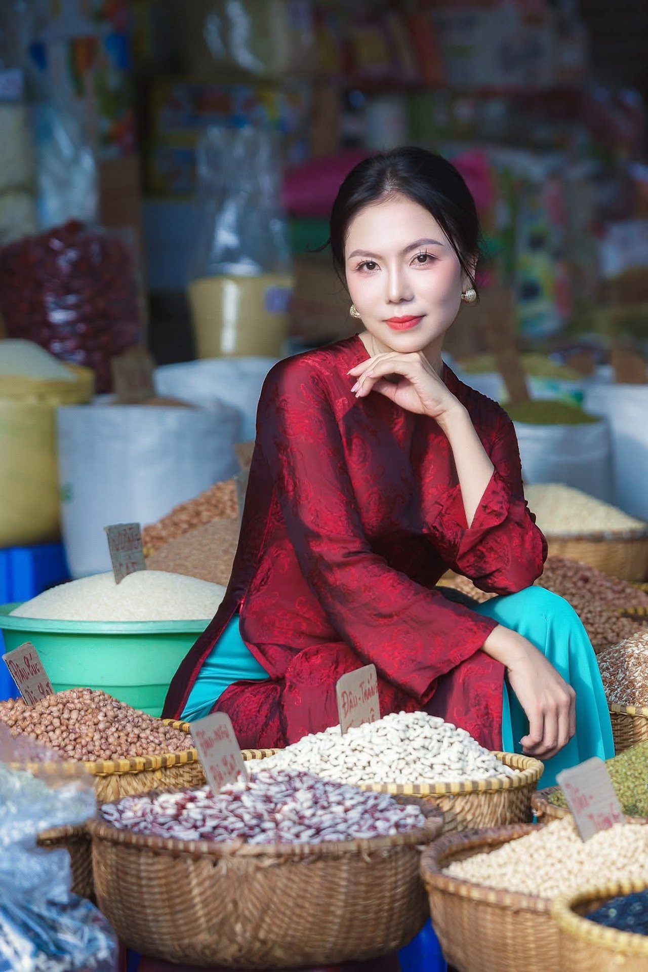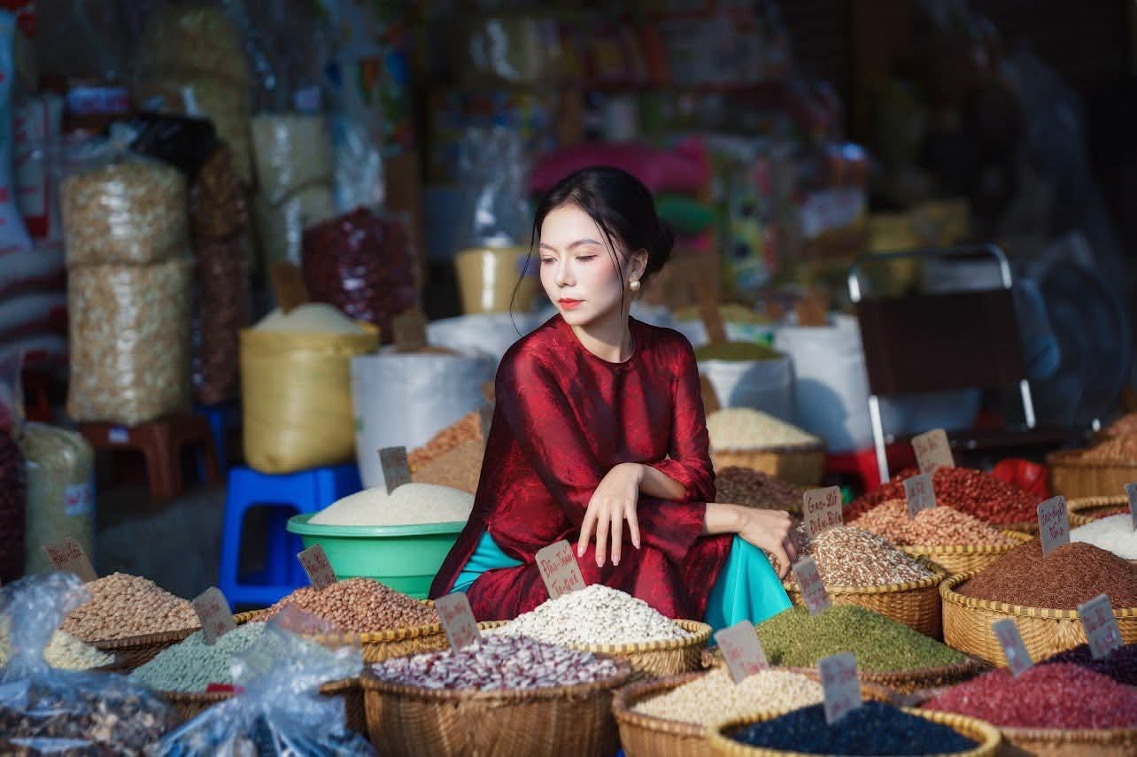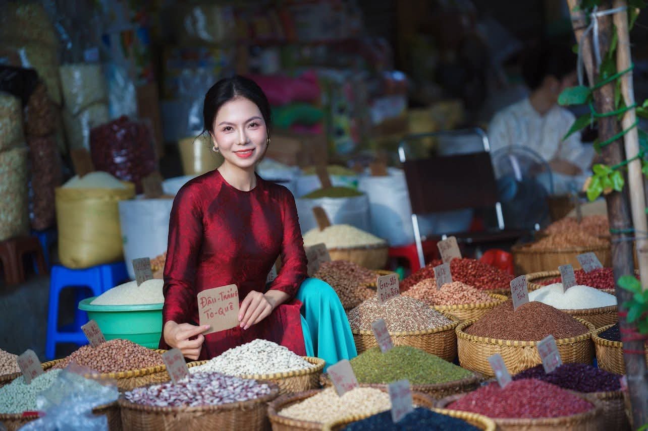 Chợ Việt, một nét thanh bình của cuộc sống thường nhật, áo dài Việt Nam dịu dàng
