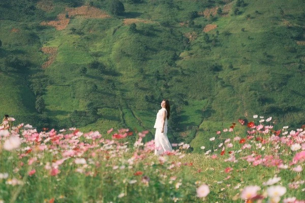 Discover the enchanting beauty of **Ta Xua Butterfly Flower Hill**, a vibrant **Vietnamese natural wonder** in full bloom. This stunning image captures the majestic **landscape** of the Northwest mountains, where the delicate pink and white cosmos flowers blend seamlessly with the vast green of the rolling hills. It's an **ideal check-in destination** for nature lovers seeking tranquility and unique photo opportunities. Immerse yourself in the fresh air, admire the picturesque **Ta Xua natural scenery**, and create unforgettable memories at one of **Vietnam's most beautiful tourist spots**.