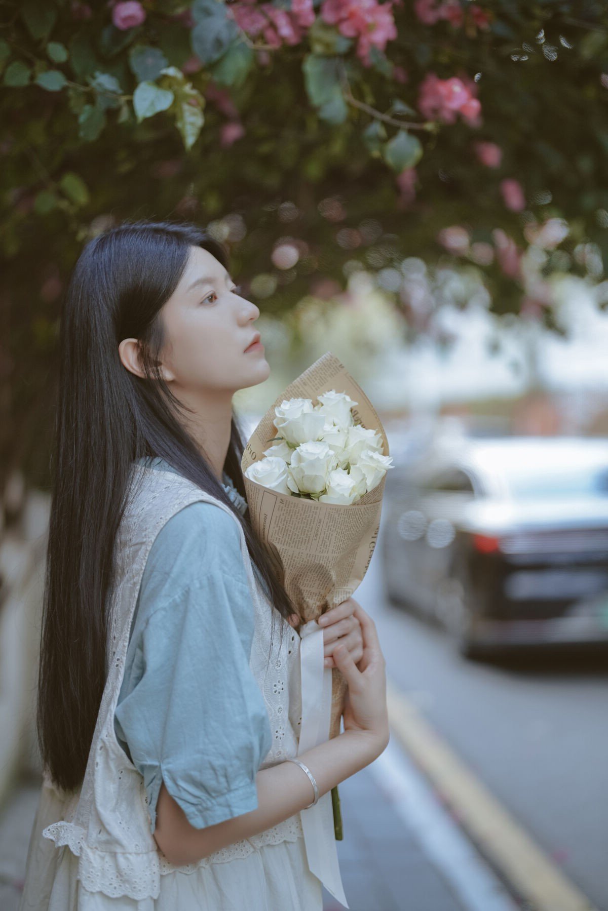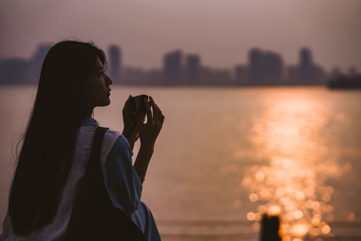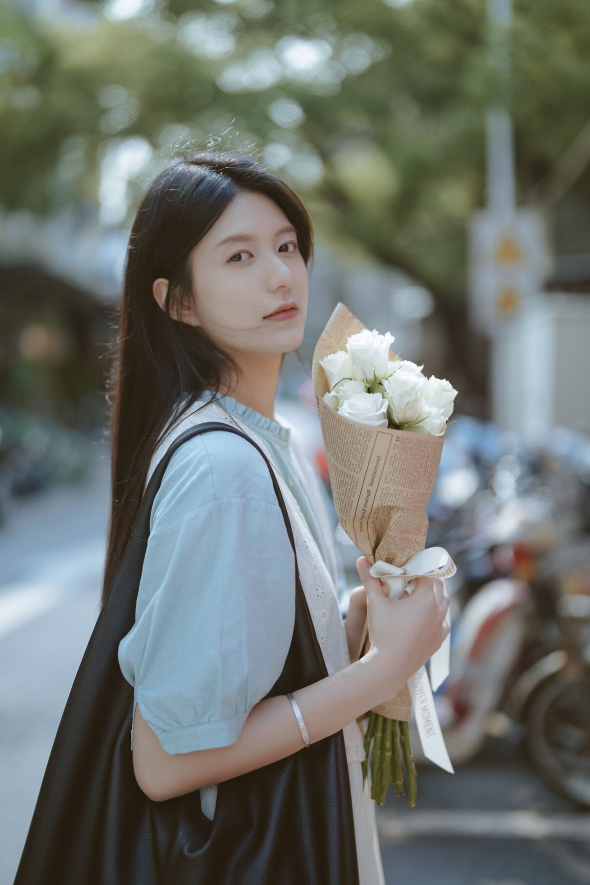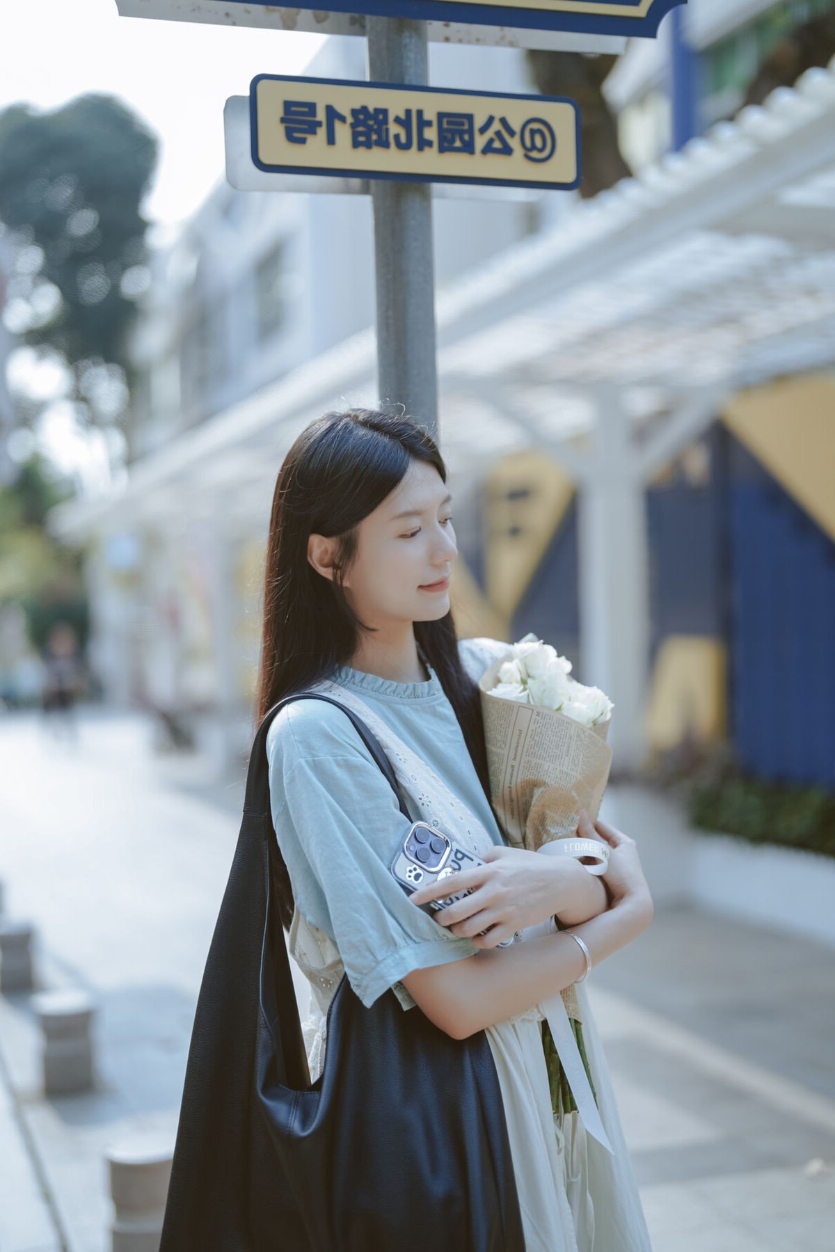 Within the romantic sunset panorama of YiTuYu Vol.8294, the figure of A Shui sits serenely by the riverbank, her long hair cascading gently as her gaze drifts towards the distant horizon. The vibrant golden-orange sunlight stretches across the water, painting a shimmering path that mirrors the silhouette of the city skyline. Despite her moniker 'A Shui who dislikes drinking water', this tranquil moment evokes a profound sense of peace, where everyday concerns seem to dissolve into the vast expanse. She appears deeply immersed in nature's beauty, finding solace and quiet contemplation amidst the bustling rhythm of life. This image transcends a mere snapshot, offering a narrative of introspection and the search for self in solitary yet meaningful moments by the water's edge.