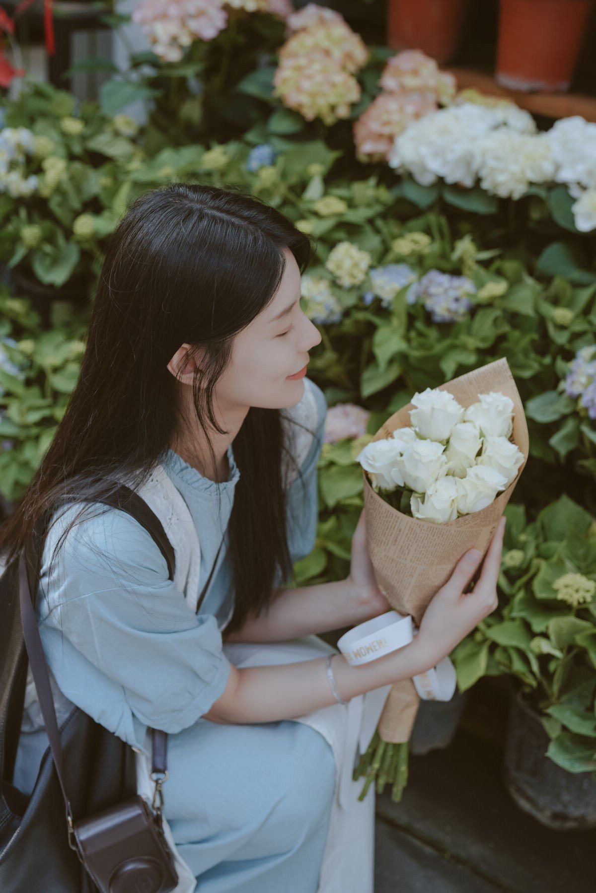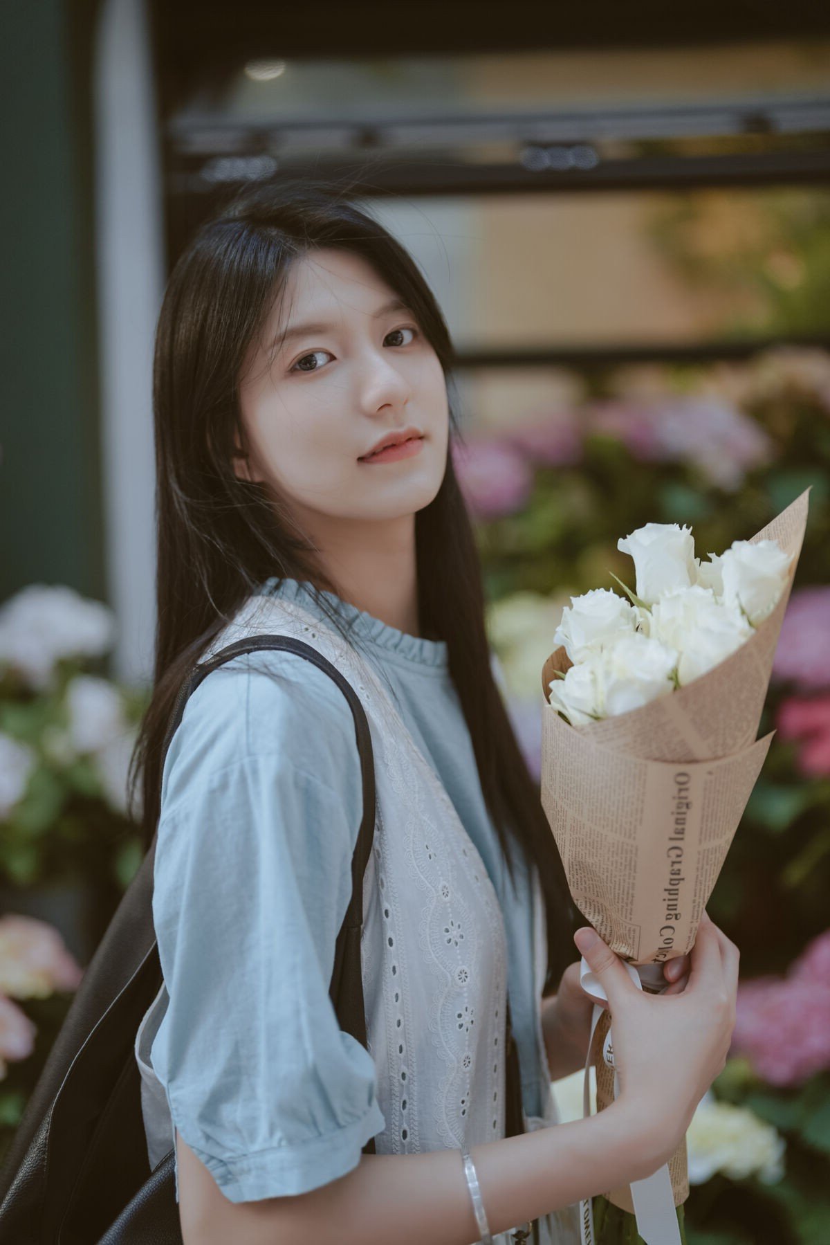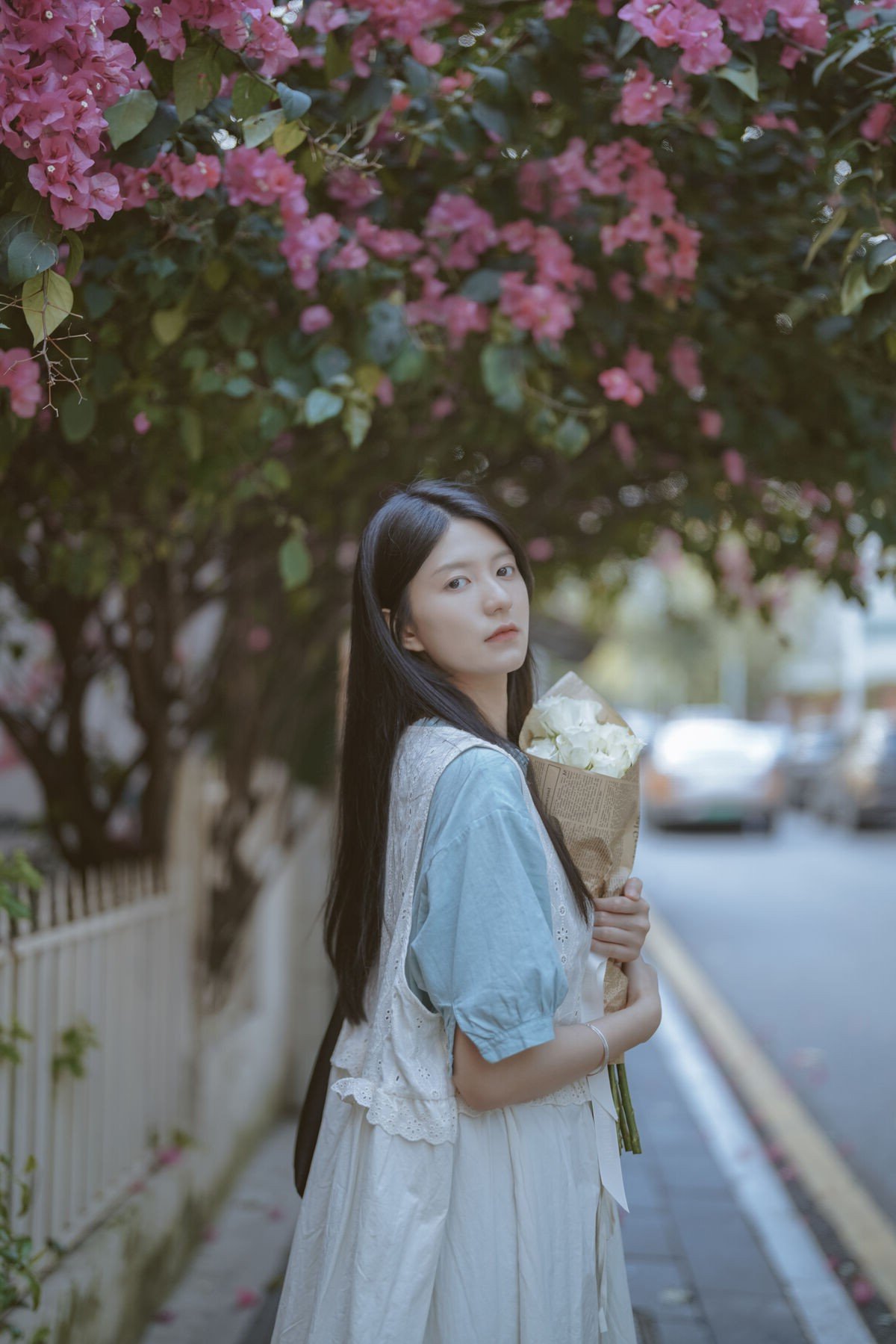 Within the romantic sunset panorama of YiTuYu Vol.8294, the figure of A Shui sits serenely by the riverbank, her long hair cascading gently as her gaze drifts towards the distant horizon. The vibrant golden-orange sunlight stretches across the water, painting a shimmering path that mirrors the silhouette of the city skyline. Despite her moniker 'A Shui who dislikes drinking water', this tranquil moment evokes a profound sense of peace, where everyday concerns seem to dissolve into the vast expanse. She appears deeply immersed in nature's beauty, finding solace and quiet contemplation amidst the bustling rhythm of life. This image transcends a mere snapshot, offering a narrative of introspection and the search for self in solitary yet meaningful moments by the water's edge.