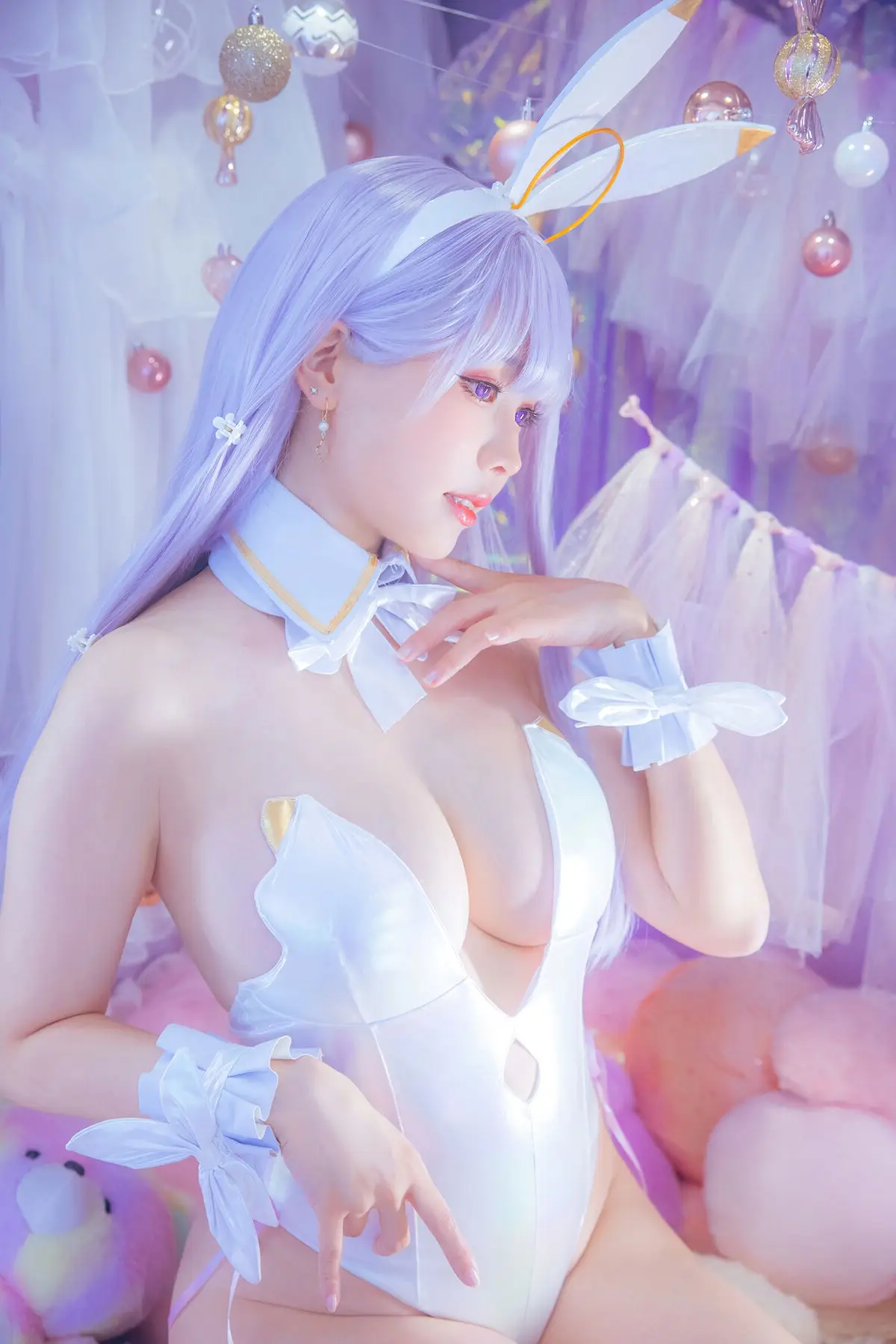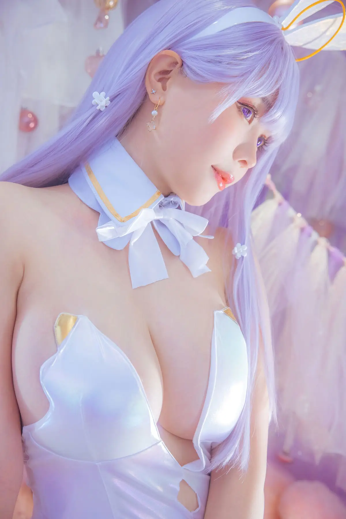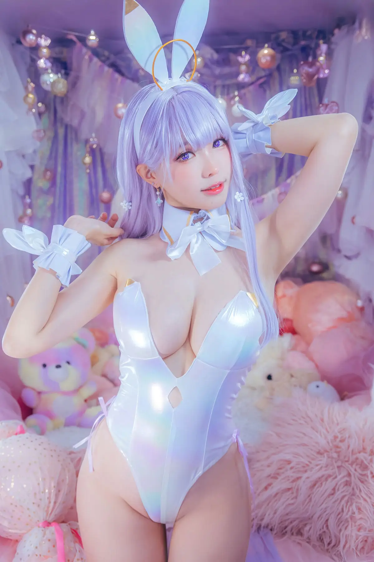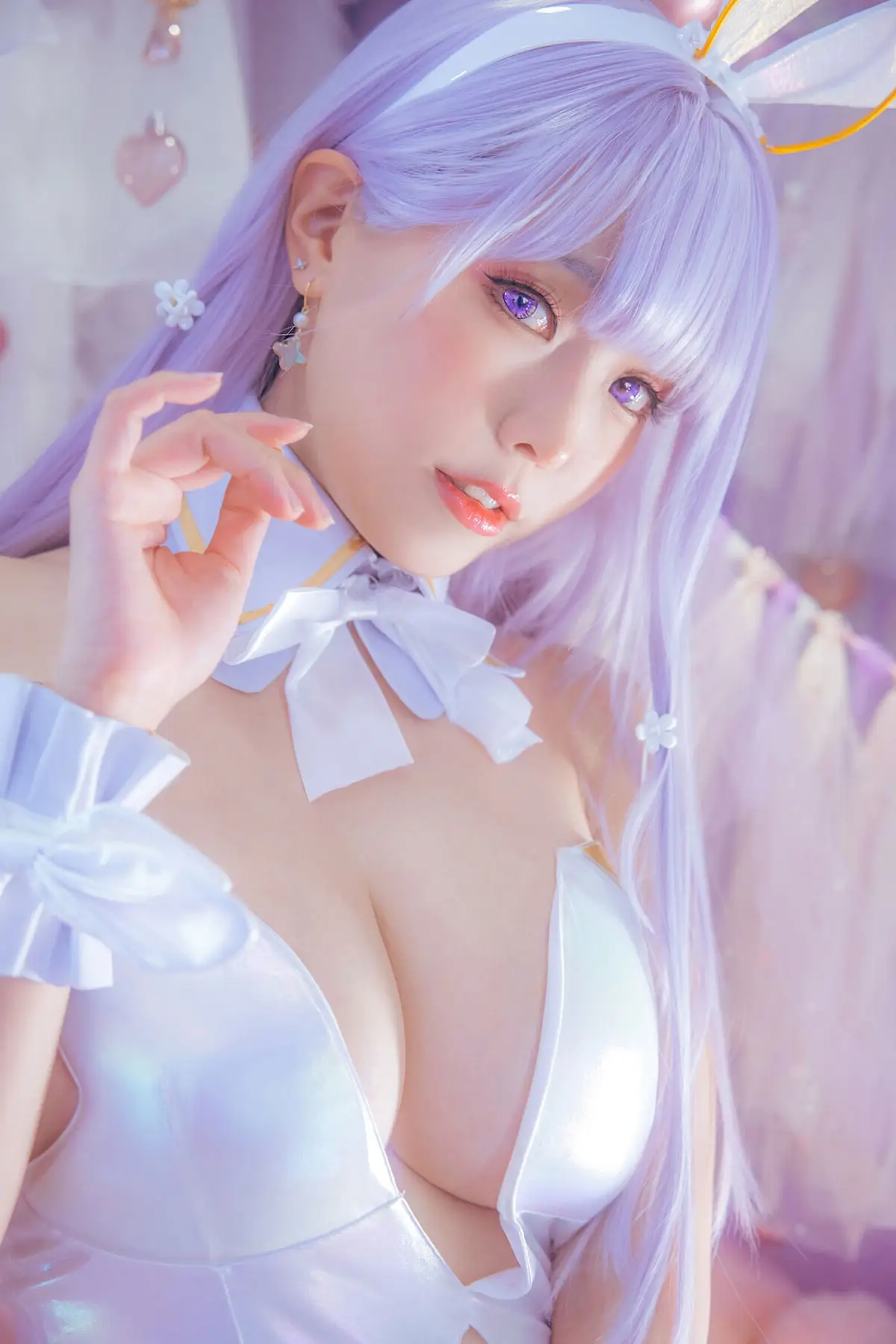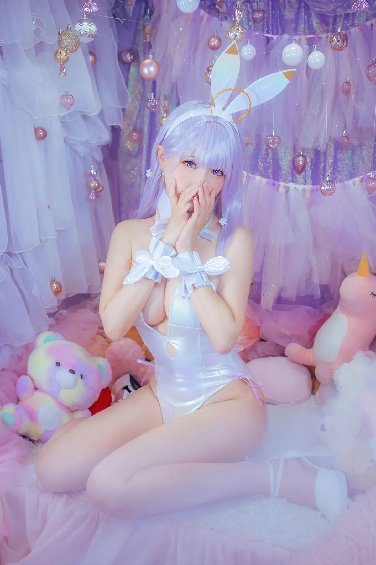 Step into a whimsical dreamscape with cosplayer Ely_eee, embodying the captivating character Bunny Plymouth. Adorned in a pristine white bunny girl outfit, complete with delicate bunny ears and intricate lace details, she exudes a charm that is both innocent and alluring. Ely_eee's sparkling gaze and elegant gesture of covering her mouth enhance her adorable yet shy demeanor. The photograph beautifully showcases the meticulous craftsmanship of the cosplay costume and creates an ethereal, fairytale setting where Bunny Plymouth's beauty is perfectly celebrated, drawing every eye.#Coser #Ely_eee #BunnyPlymouth #Cosplay #BunnyGirl #Kawaii
