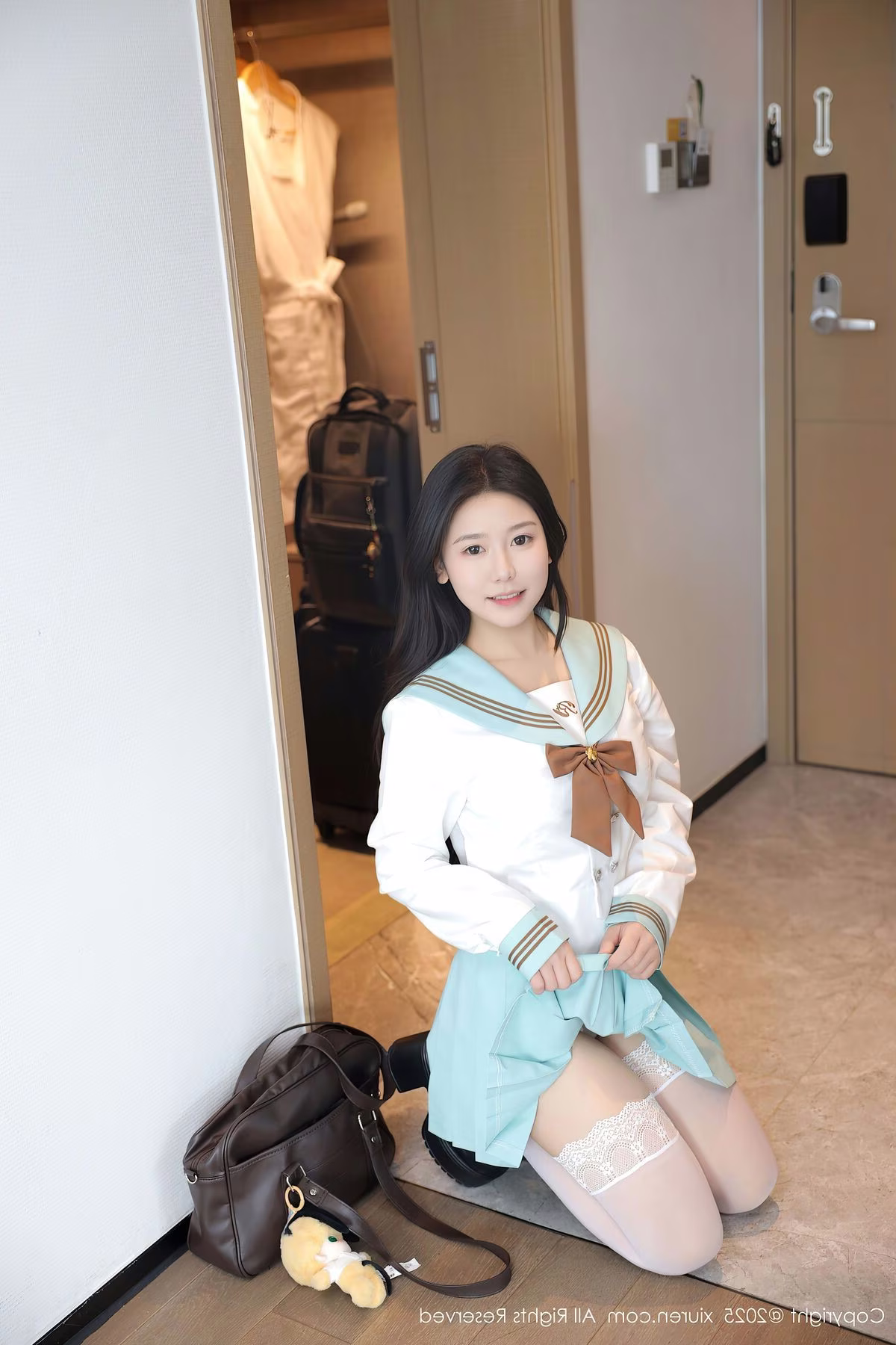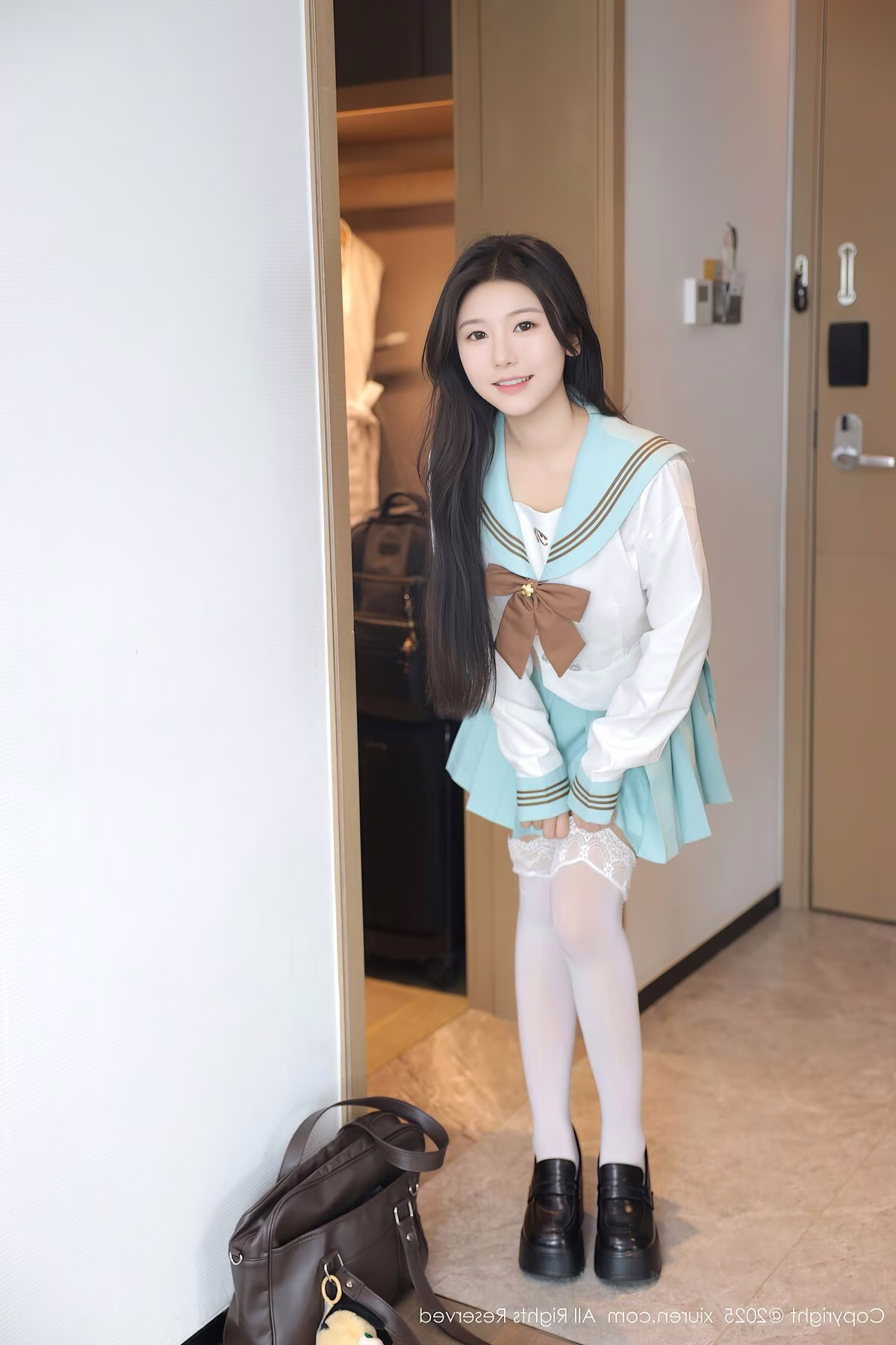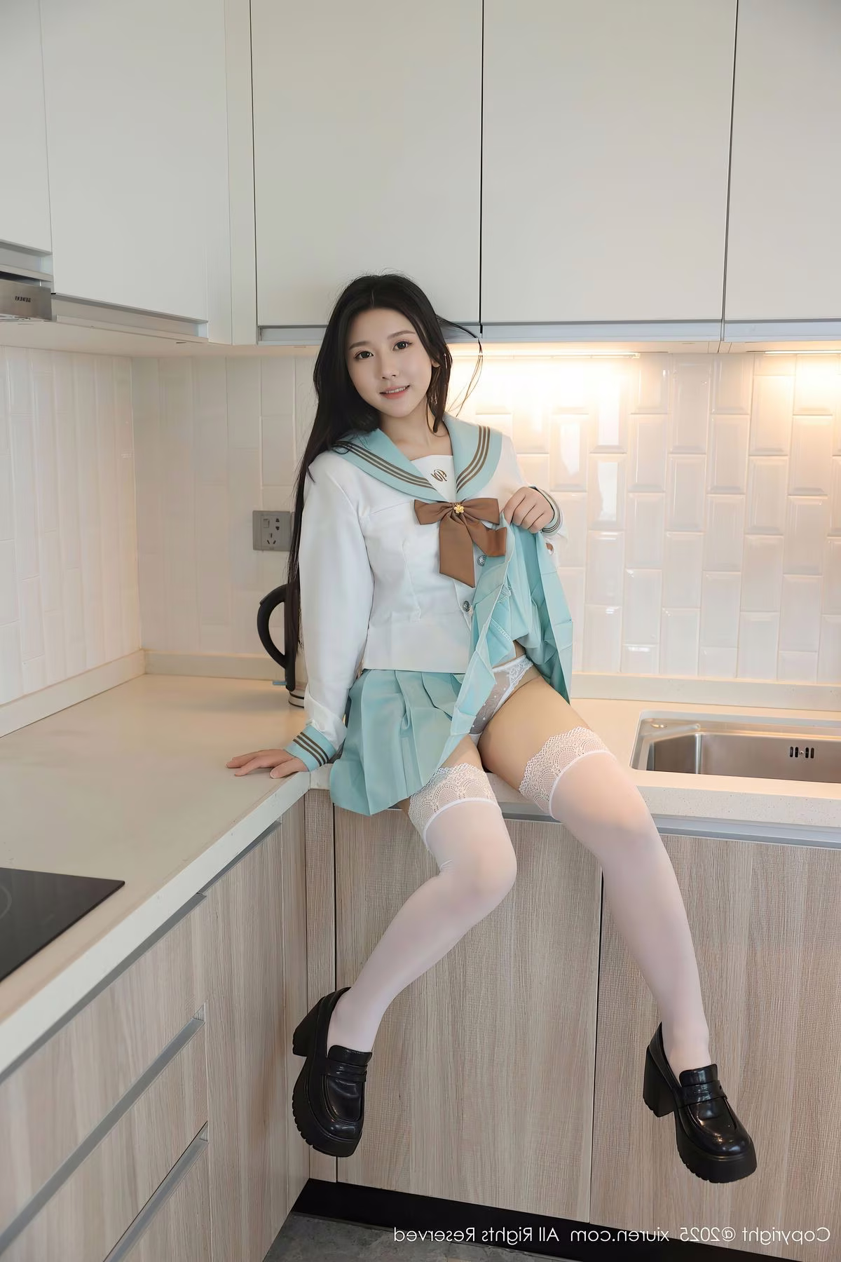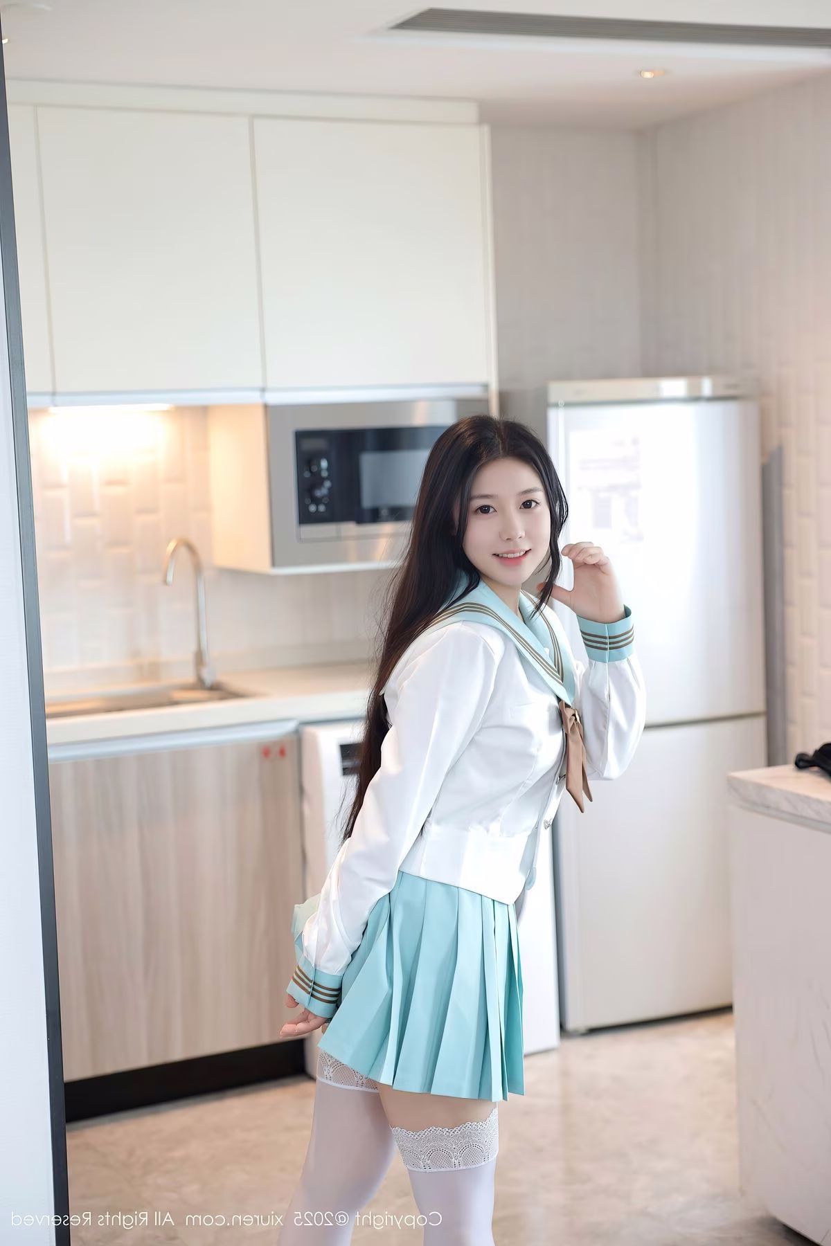 Discover the fresh and captivating charm of Lin Jia Xin (林嘉馨) in the exclusive XiuRen No.10379 photo set. The model showcases her graceful allure in a classic schoolgirl outfit, featuring a pristine white shirt, a light blue pleated skirt, and a distinctive brown bow. Her relaxed pose in a bright, modern setting highlights her natural demeanor and gentle smile. Each image in this collection captures moments of elegance and innocent beauty, creating an irresistible appeal. The XiuRen No.10379 Lin Jia Xin series is sure to enchant viewers with its perfect blend of youthful style and captivating Asian aesthetics.