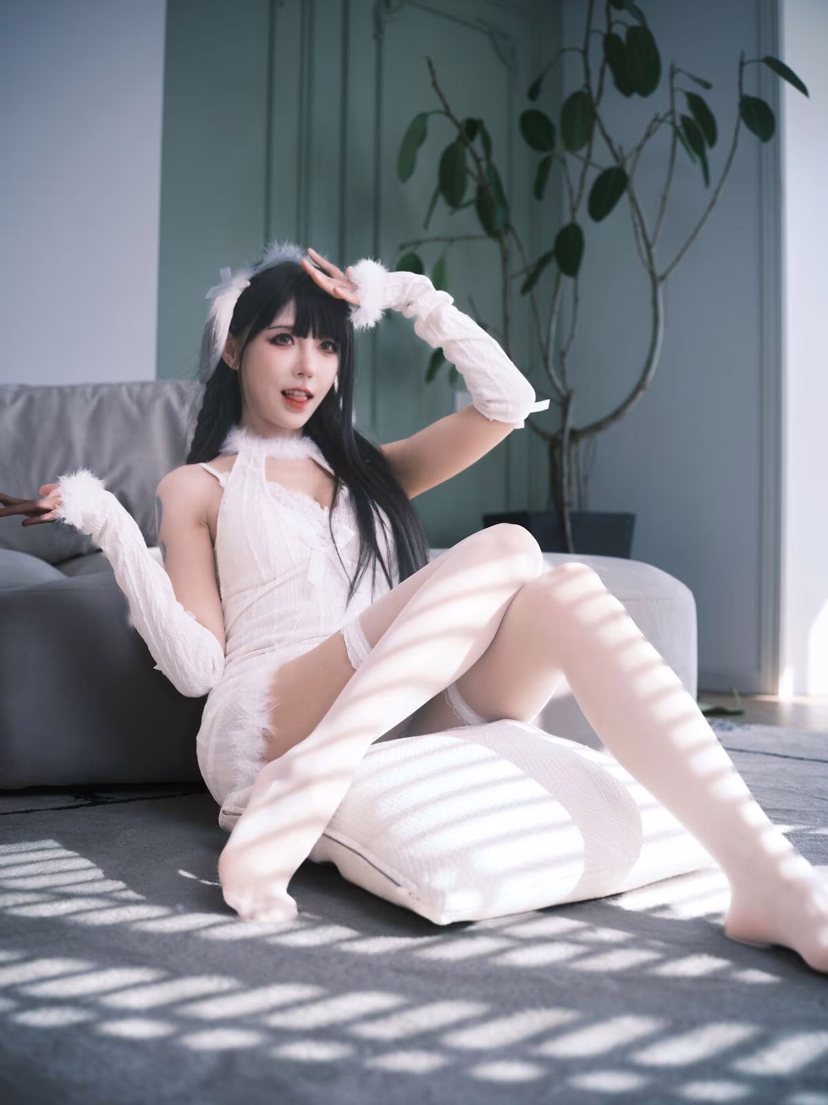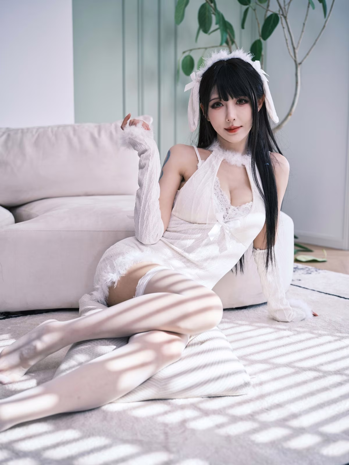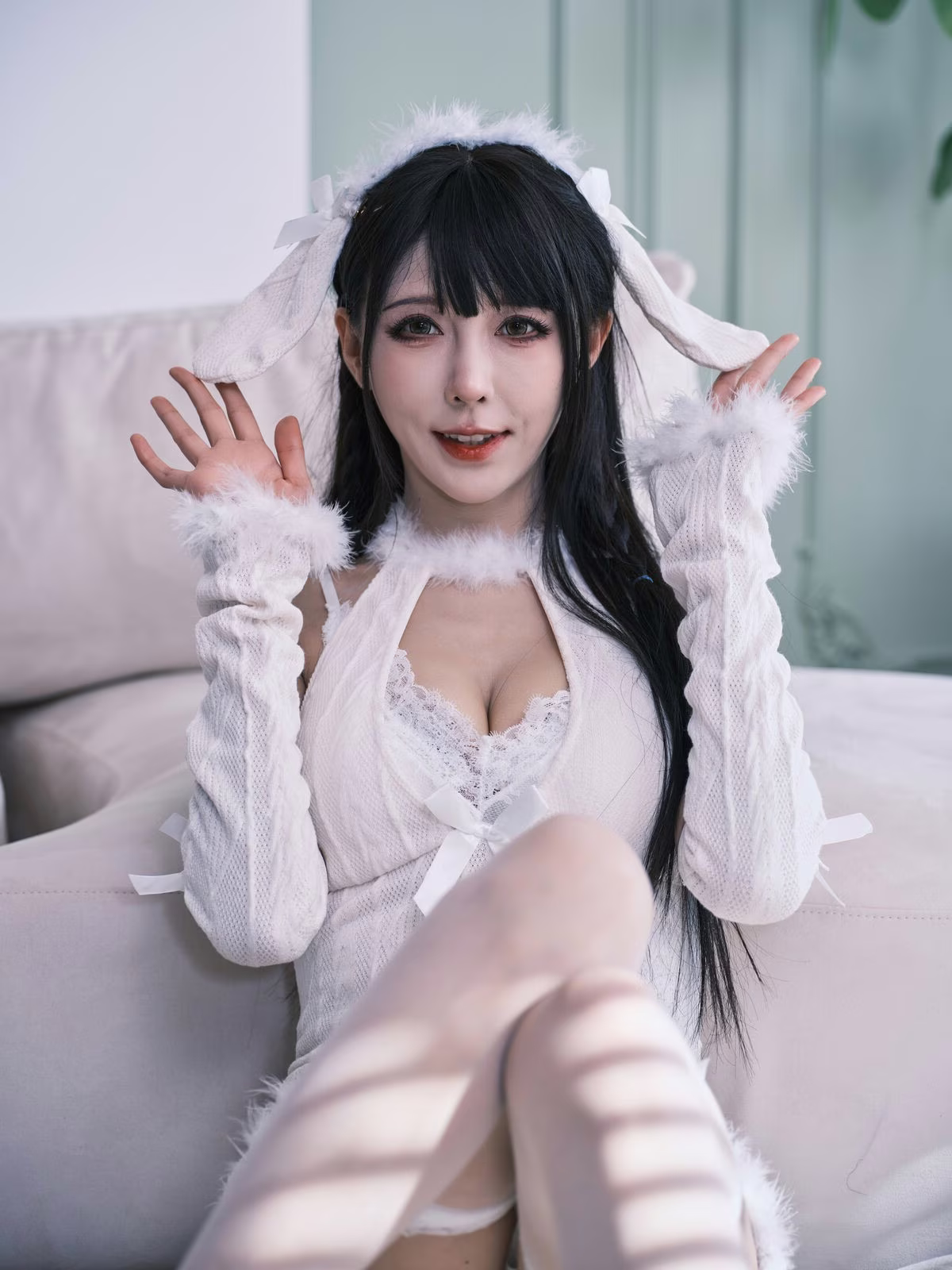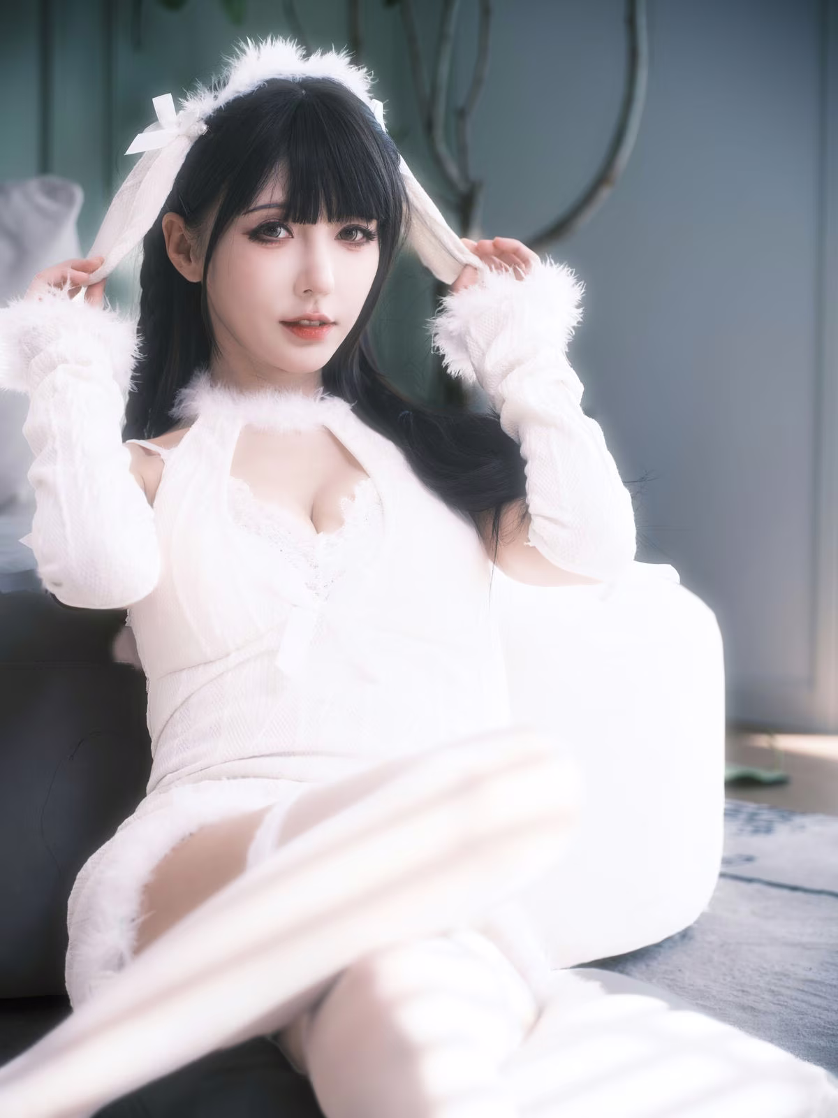 The image features Xia Shu You Ren Zhang in a truly enchanting moment She is adorned in a pristine white outfit with delicate lace and soft fluffy accents exuding a charm that is both innocent and alluring Her striking red eyes and long dark hair create a captivating contrast highlighting her unique aura and expressive gaze Posed comfortably on a sofa with a gentle smile and endearing hand gestures she radiates warmth and approachability inviting viewers into her world This YiTuYu Vol8287 collection beautifully blends photographic artistry with the models natural elegance offering a visually compelling and memorable experience Explore this exceptional Art Language series now
