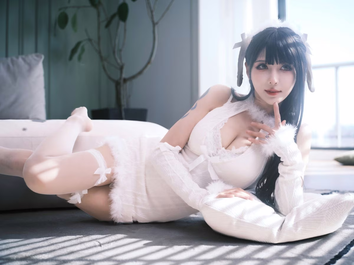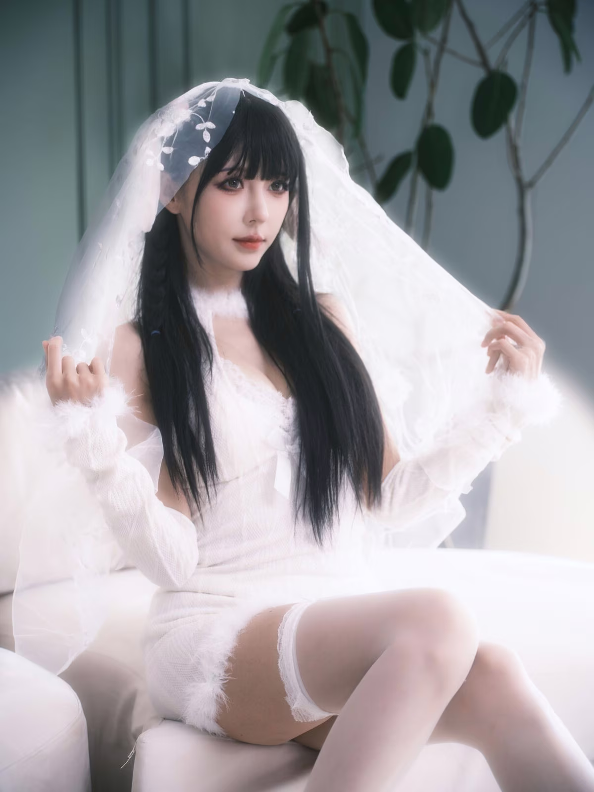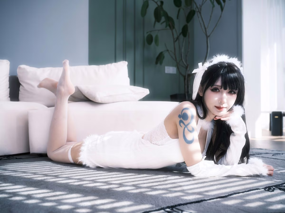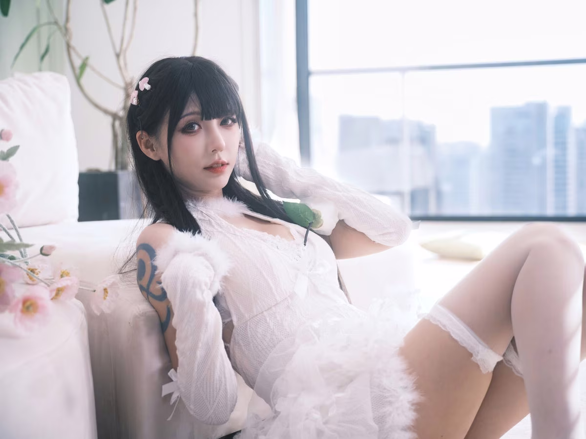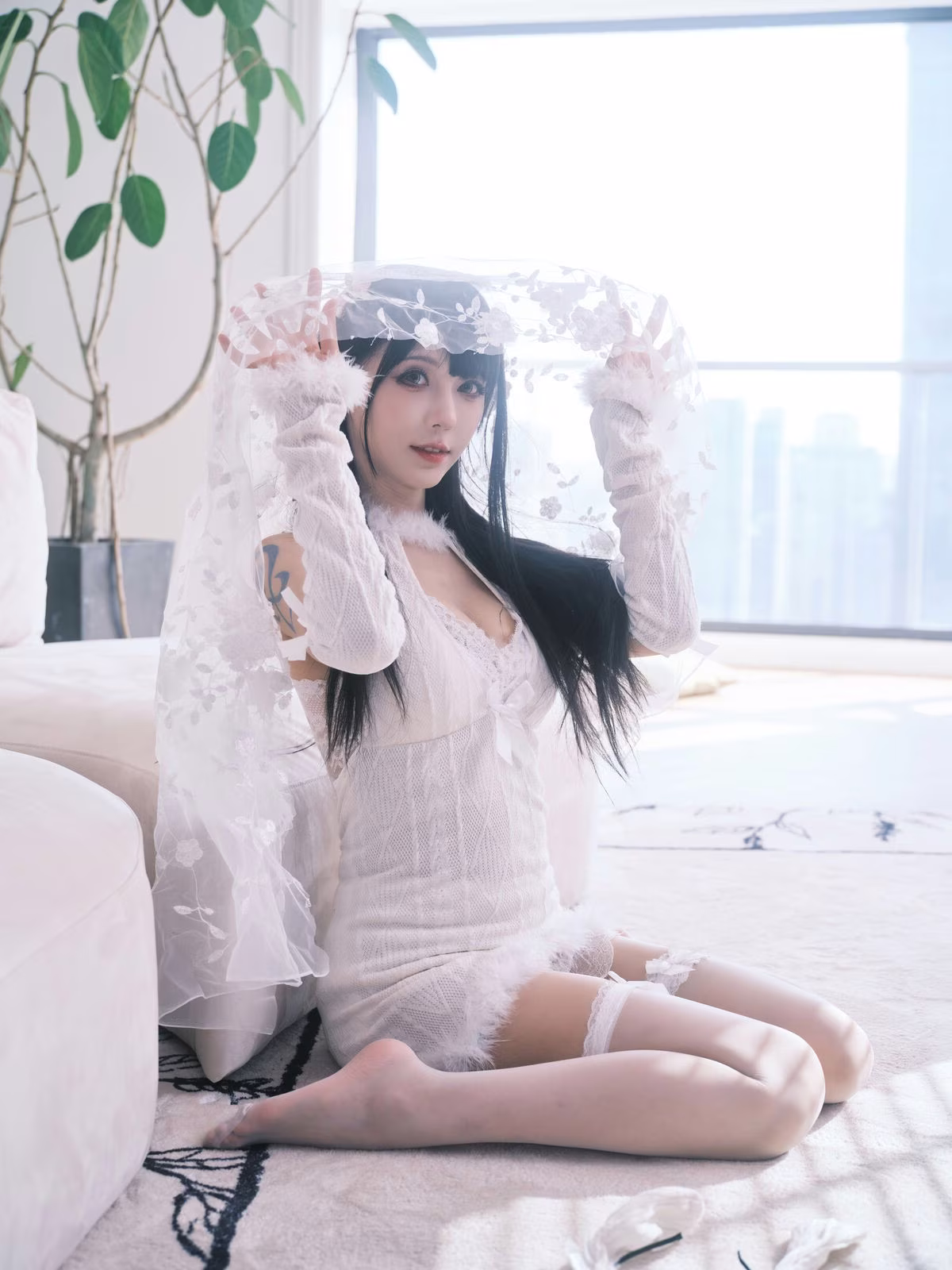 The image features Xia Shu You Ren Zhang in a truly enchanting moment She is adorned in a pristine white outfit with delicate lace and soft fluffy accents exuding a charm that is both innocent and alluring Her striking red eyes and long dark hair create a captivating contrast highlighting her unique aura and expressive gaze Posed comfortably on a sofa with a gentle smile and endearing hand gestures she radiates warmth and approachability inviting viewers into her world This YiTuYu Vol8287 collection beautifully blends photographic artistry with the models natural elegance offering a visually compelling and memorable experience Explore this exceptional Art Language series now