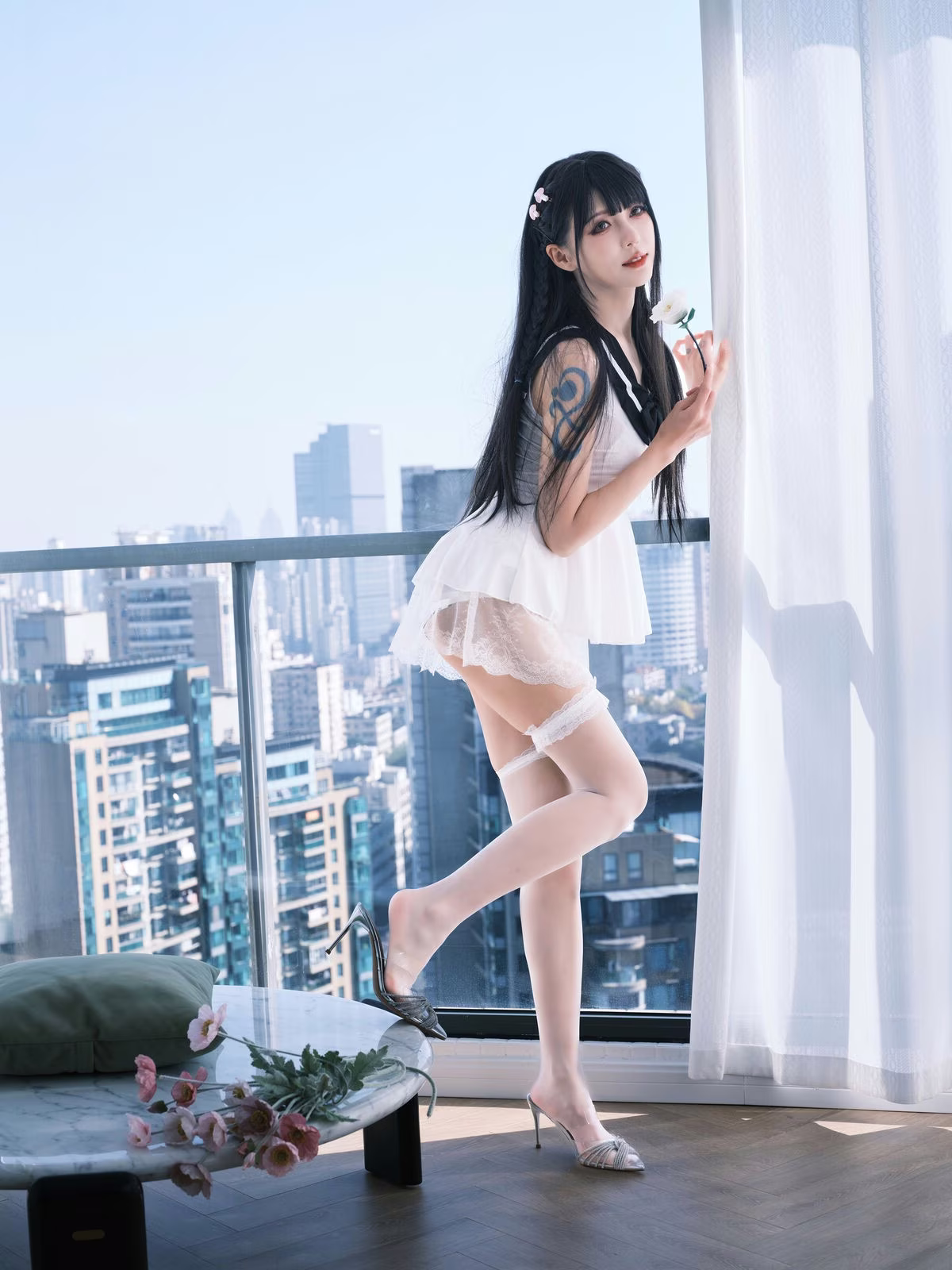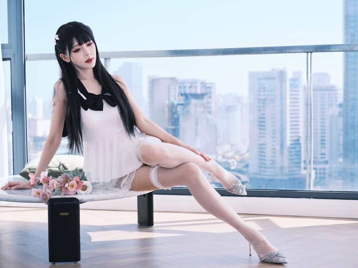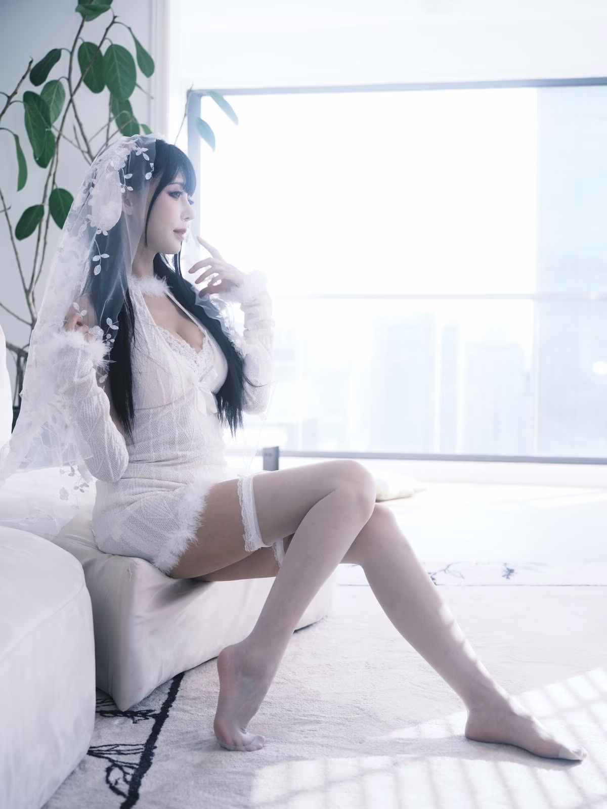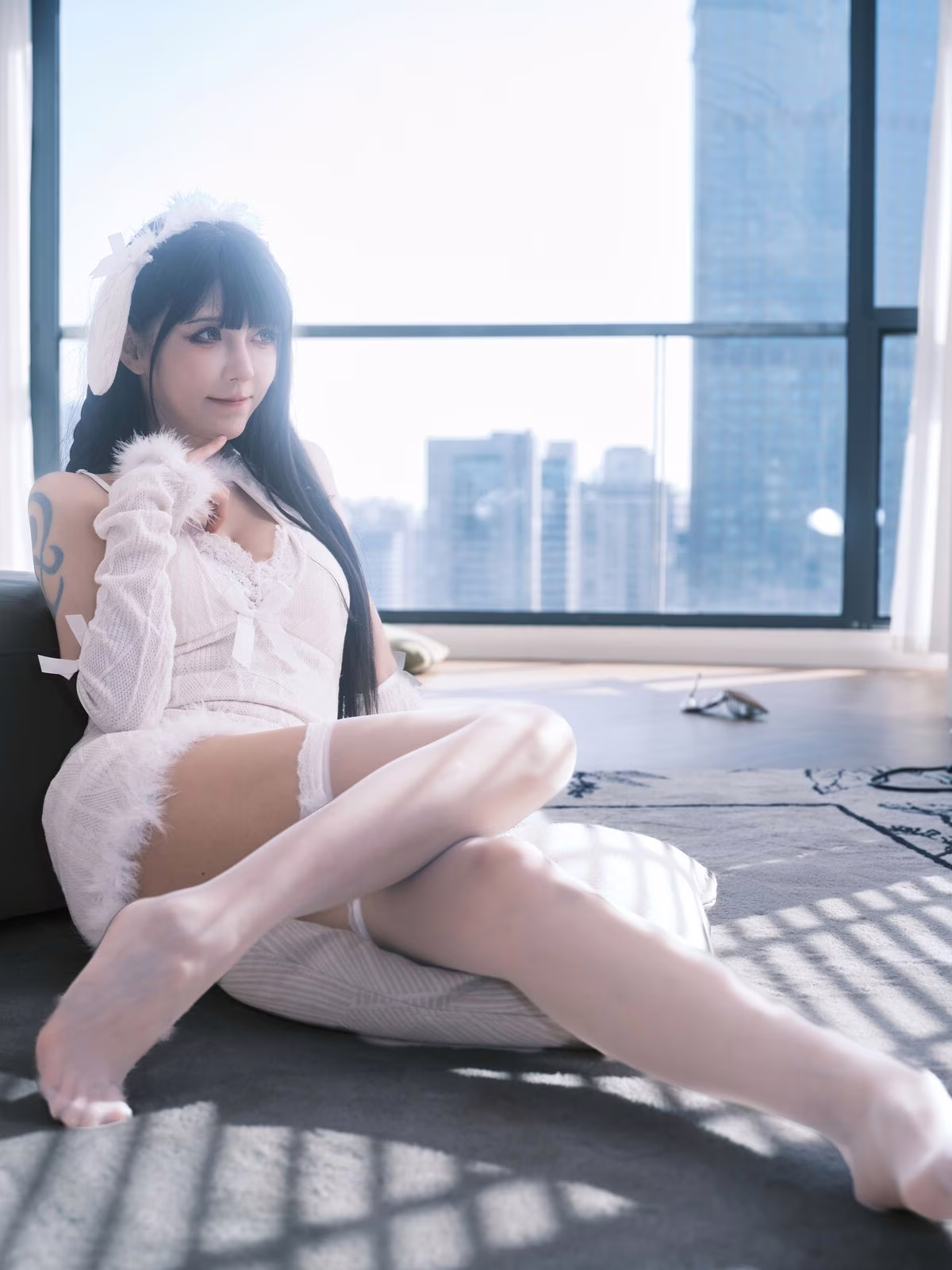The image features Xia Shu You Ren Zhang in a truly enchanting moment She is adorned in a pristine white outfit with delicate lace and soft fluffy accents exuding a charm that is both innocent and alluring Her striking red eyes and long dark hair create a captivating contrast highlighting her unique aura and expressive gaze Posed comfortably on a sofa with a gentle smile and endearing hand gestures she radiates warmth and approachability inviting viewers into her world This YiTuYu Vol8287 collection beautifully blends photographic artistry with the models natural elegance offering a visually compelling and memorable experience Explore this exceptional Art Language series now