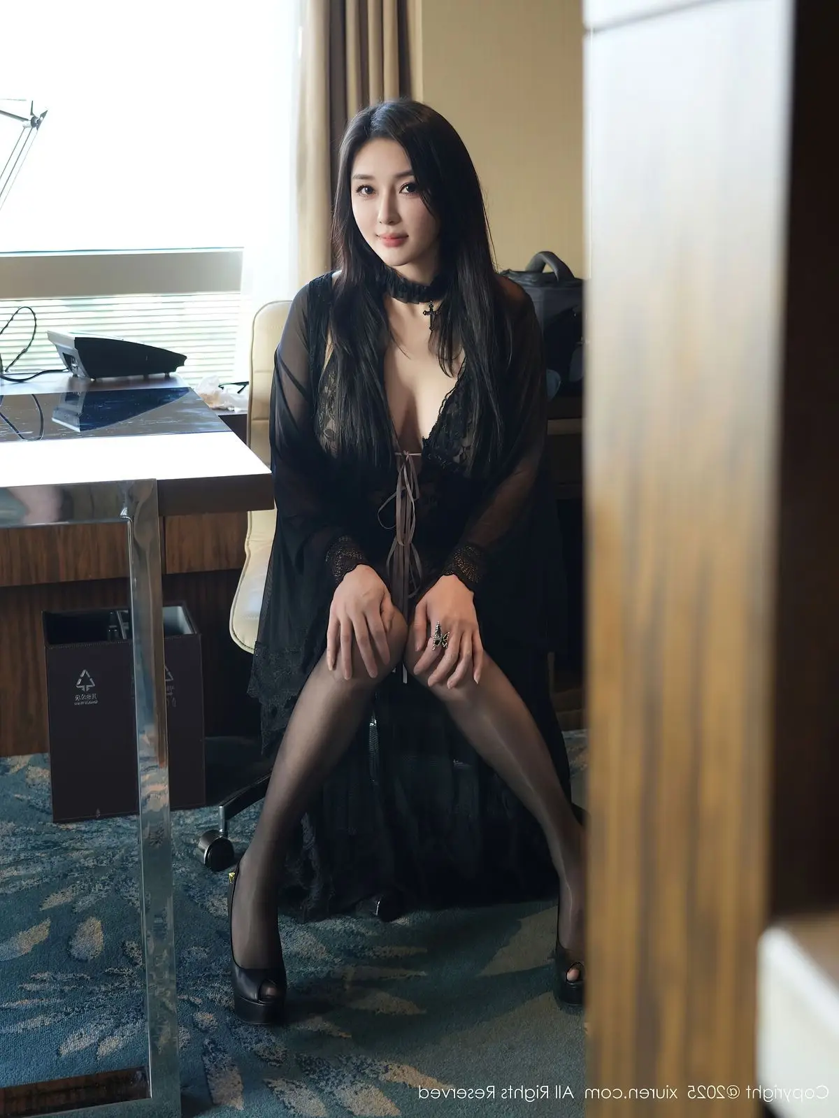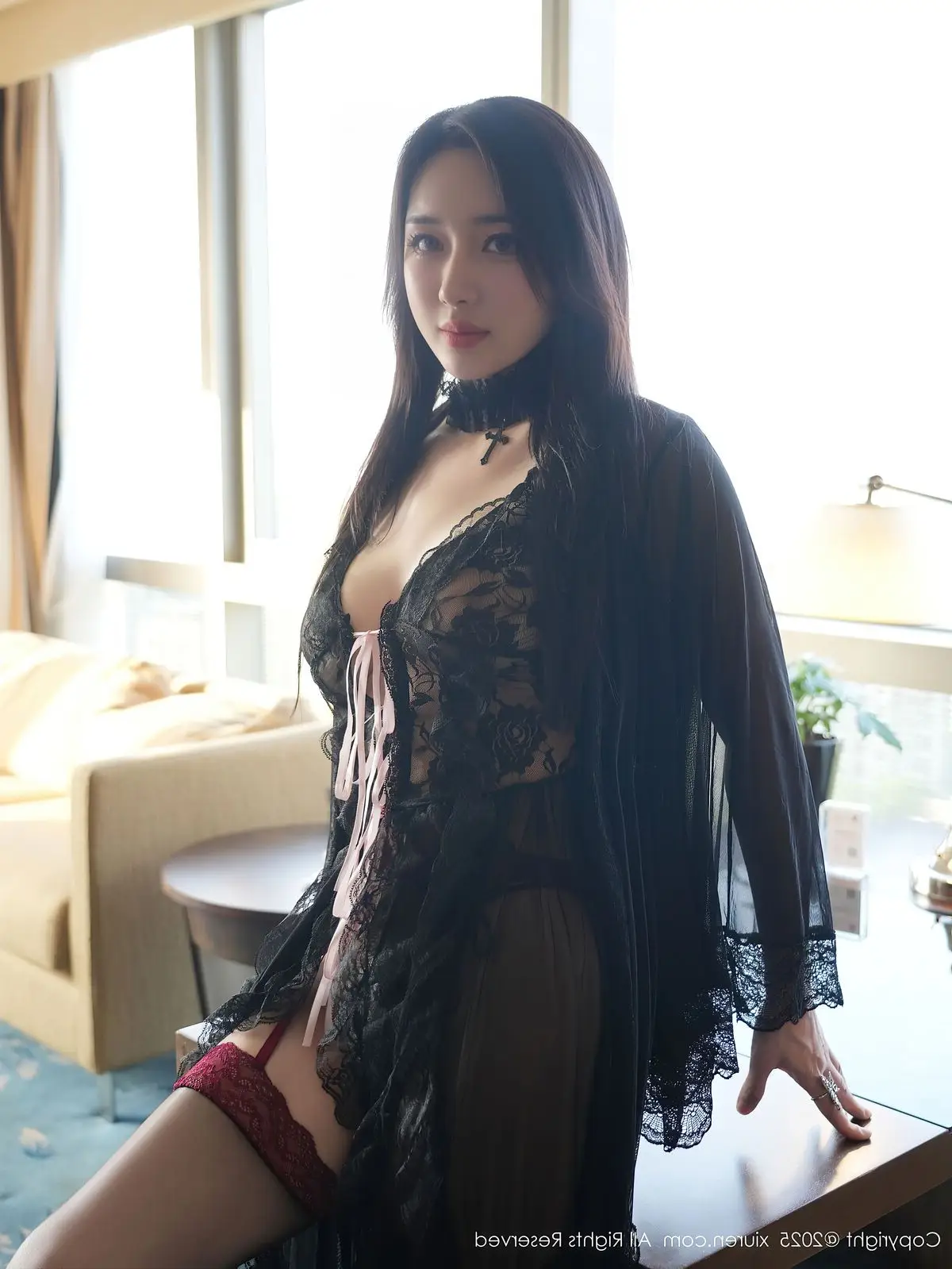 Su Yi Nuo captivates with her enchanting beauty in the XiuRen No.10490 collection. She exudes confidence and allure, gracefully clad in a delicate sheer black nightgown that accentuates her slender figure and sensual curves. The soft lace material and flowing design create an air of mystery and undeniable charm. With her mesmerizing gaze and professional demeanor, Su Yi Nuo transforms the attire into a statement of self-assurance and feminine elegance. This image is part of a special photo album where Su Yi Nuo perfectly blends gentle grace with irresistible appeal, showcasing her unique charm and fashion sense.#SuYiNuo #XiuRen #BlackNightgown #LingerieFashion #Alluring