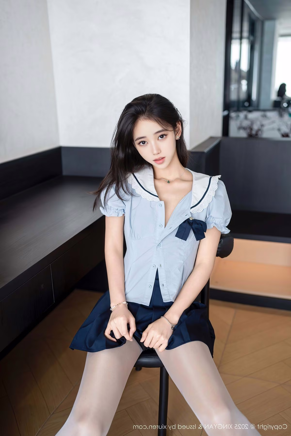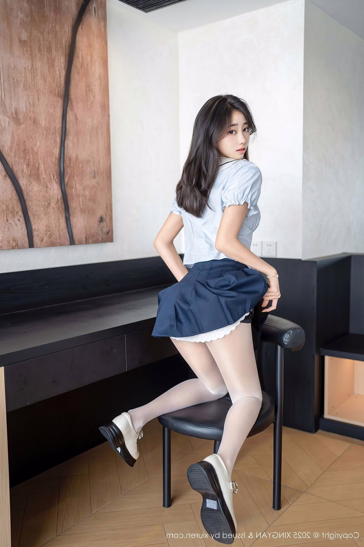 Discover the XingYan Vol.360 collection, where model Shi An An captivates with her elegant and charming modern schoolgirl style. She is exquisitely dressed in a refined light blue blouse, a dark pleated skirt, and gracefully adorned with long white stockings paired with classic Mary Jane shoes. Every pose of Shi An An exudes a delicate blend of innocence and playful allure, creating an irresistible appeal. This photoshoot not only highlights her graceful physique but also captures her captivating and mesmerizing aura. It promises a truly valuable visual experience, offering a profound glimpse into the harmonious fusion of traditional charm and contemporary flair, ensuring viewers are utterly drawn to each expressive frame.