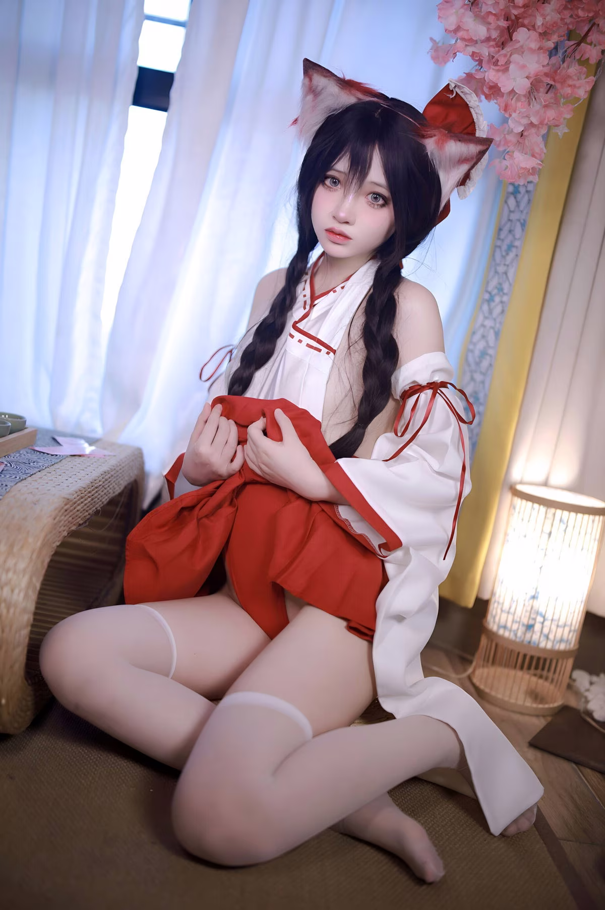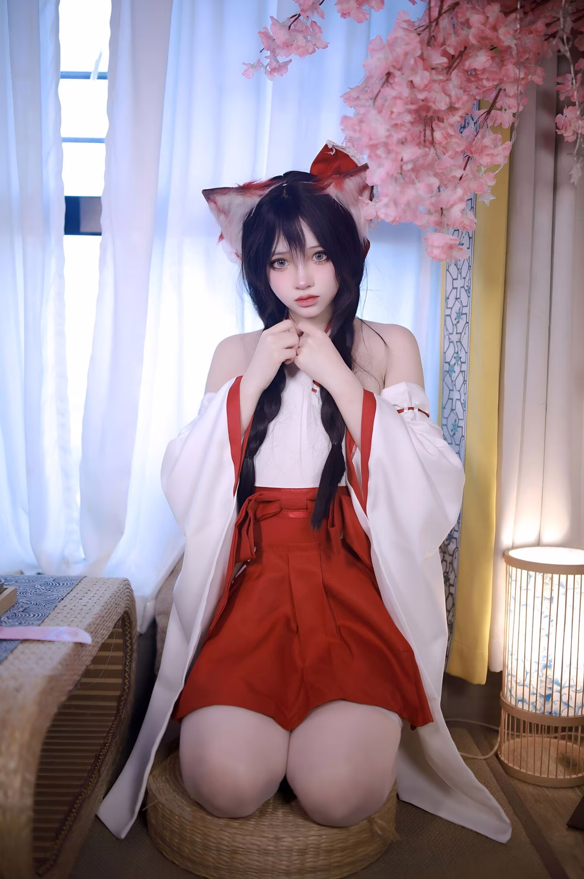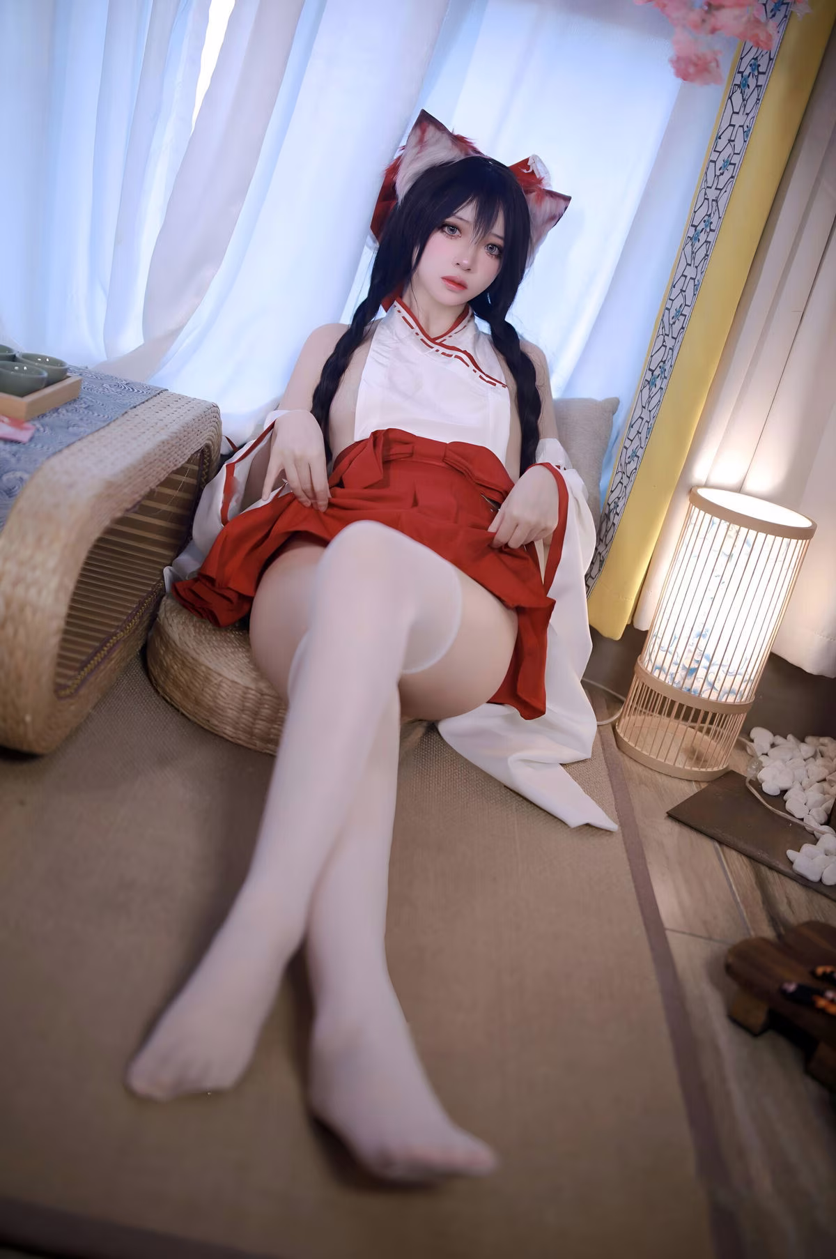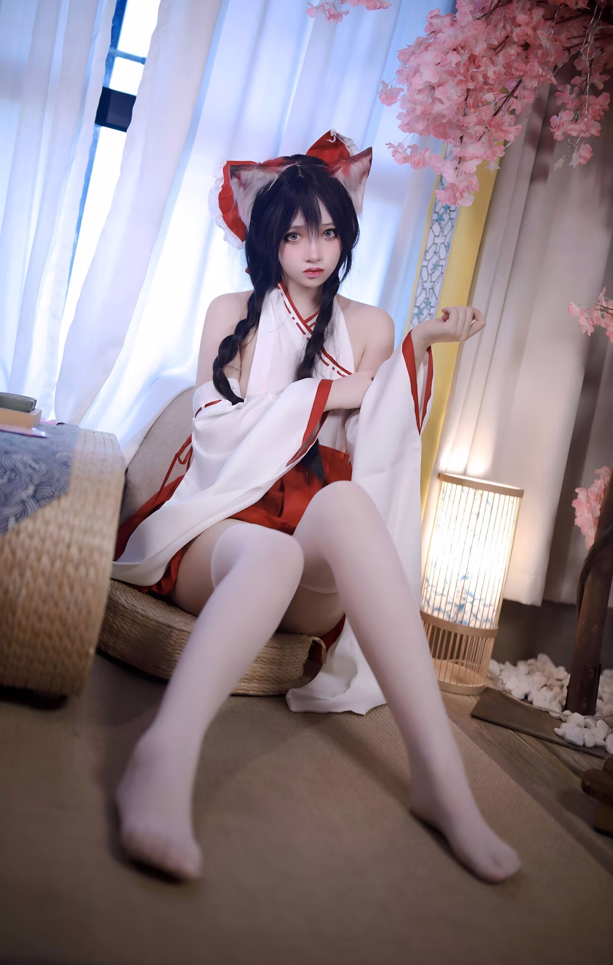 In this artistic cosplay photoshoot Coser 疯猫ss masterfully transforms into a charming and enchanting Kitsune. She dons traditional Japanese attire featuring pristine white and vibrant red hues symbolizing purity and power. Every detail from the adorable fox ears to the stylized kimono exudes a classic yet modern beauty. Seated amidst a romantic setting adorned with blooming cherry blossoms sakura 疯猫ss appears as a spirit stepping out of a fairy tale. Her captivating gaze and confident yet gentle demeanor create an irresistible allure reminiscent of mystical charms. This portrayal is a perfect fusion of East Asian aesthetics and the art of cosplay delivering an impressive visual experience.