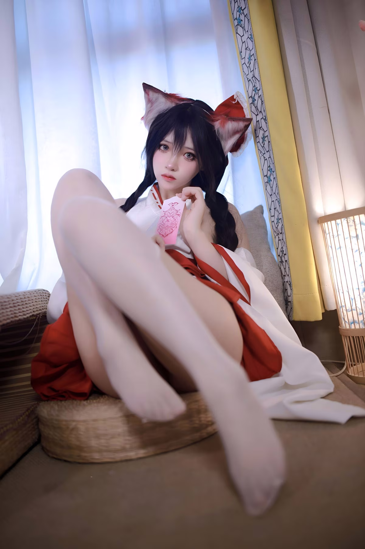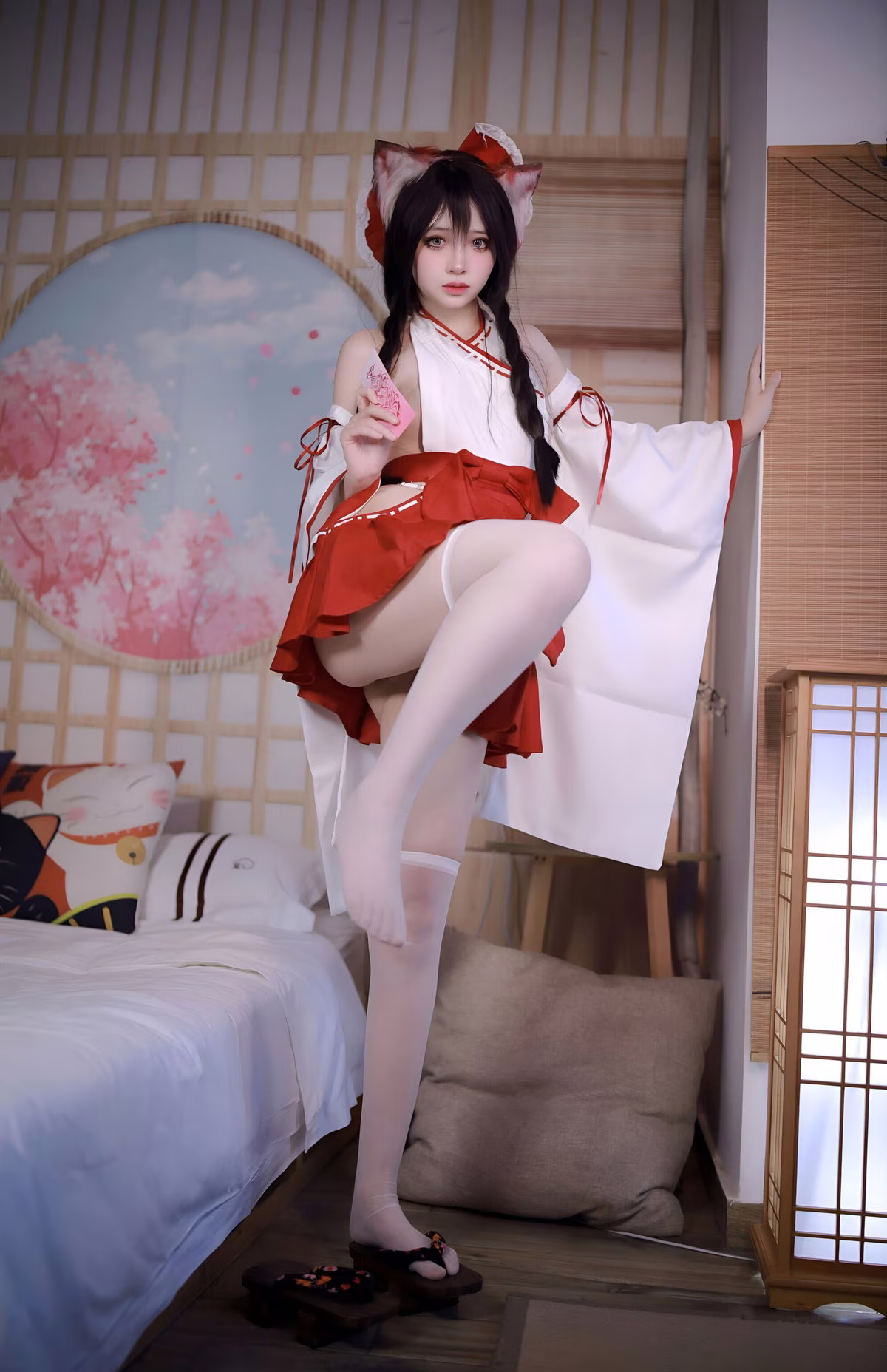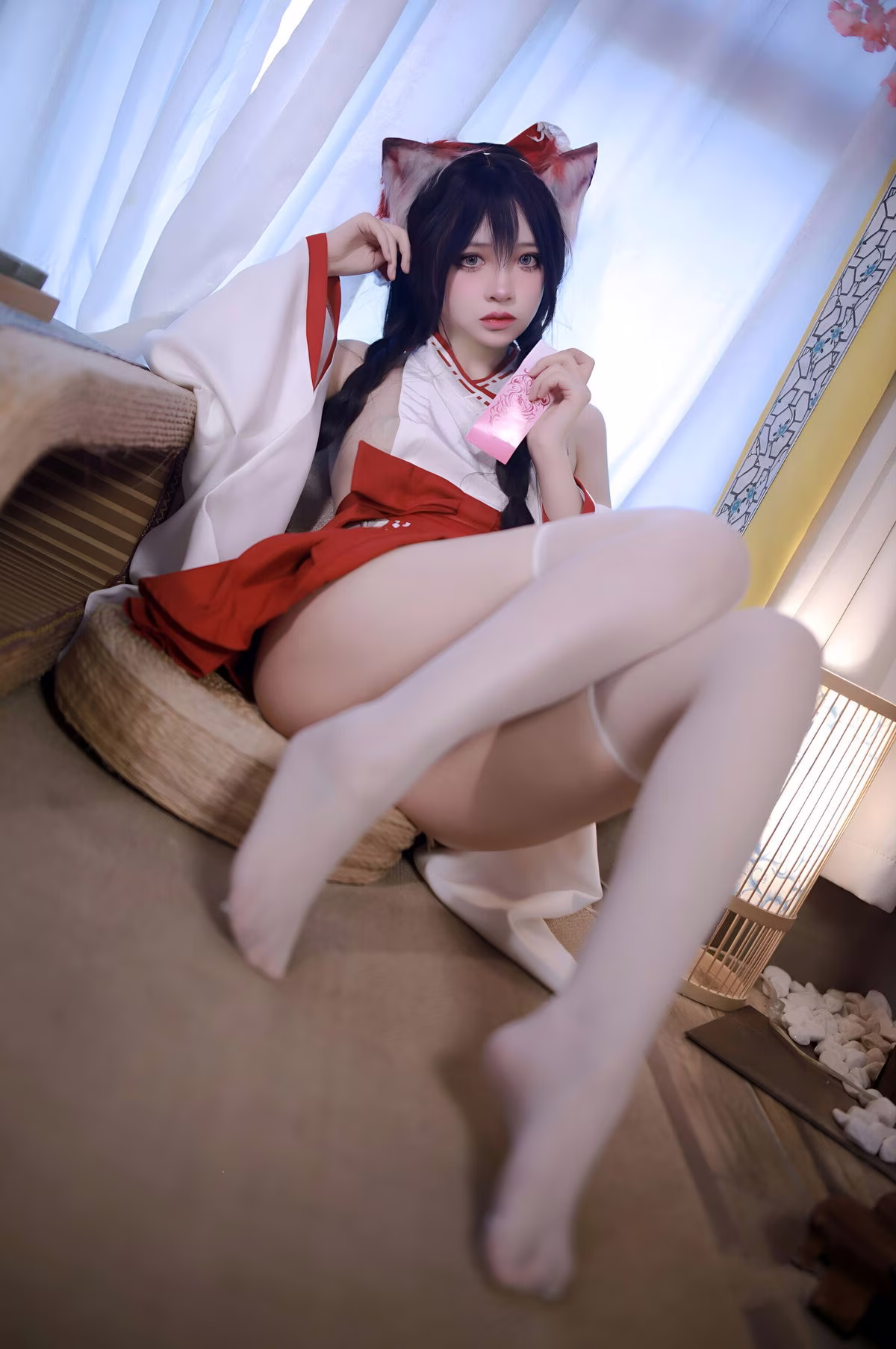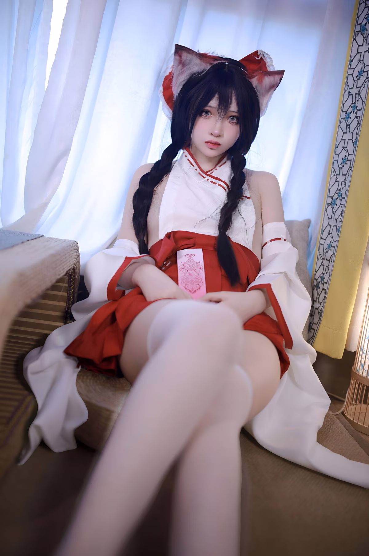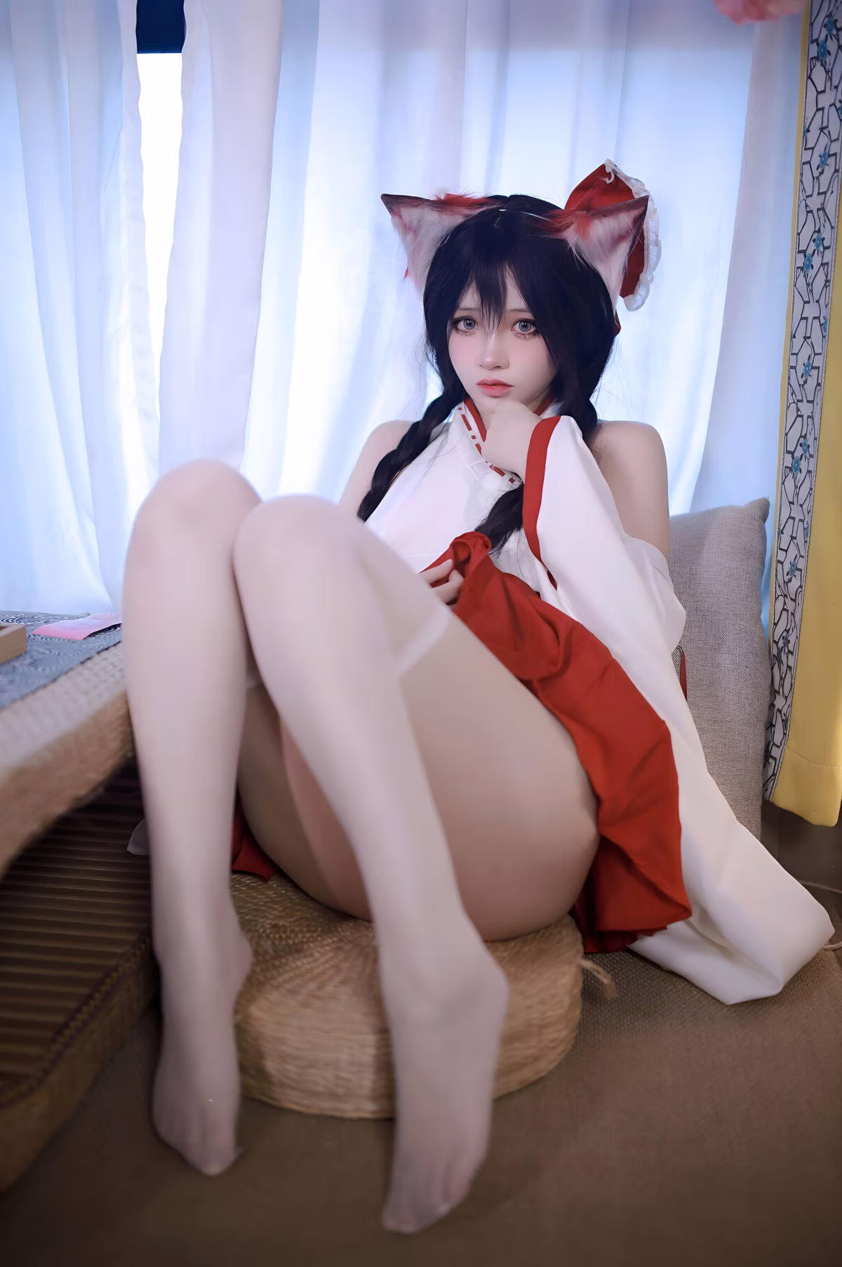 In this artistic cosplay photoshoot Coser 疯猫ss masterfully transforms into a charming and enchanting Kitsune. She dons traditional Japanese attire featuring pristine white and vibrant red hues symbolizing purity and power. Every detail from the adorable fox ears to the stylized kimono exudes a classic yet modern beauty. Seated amidst a romantic setting adorned with blooming cherry blossoms sakura 疯猫ss appears as a spirit stepping out of a fairy tale. Her captivating gaze and confident yet gentle demeanor create an irresistible allure reminiscent of mystical charms. This portrayal is a perfect fusion of East Asian aesthetics and the art of cosplay delivering an impressive visual experience.