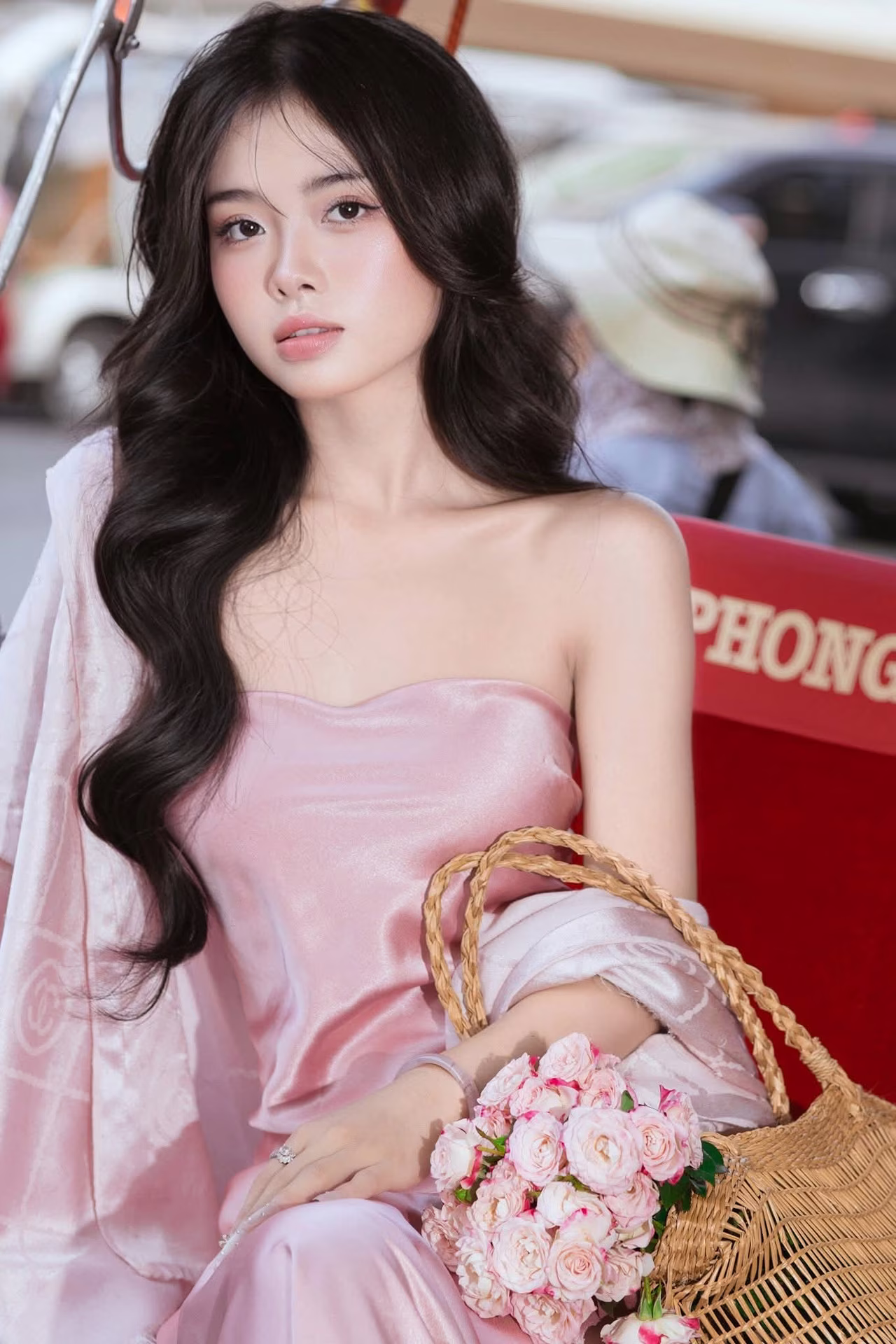 This captivating image beautifully portrays the elegant charm of a Vietnamese woman amidst a vibrant city street. Dressed in a delicate pink top, she is gracefully selecting fresh pomelos from a roadside vendor's cart. The scene not only highlights the traditional beauty and refined essence of Vietnamese women but also evokes a sense of serene authenticity within the bustling urban rhythm. Her meticulously crafted woven bamboo basket further enhances her natural, understated style. This simple yet enchanting moment offers a vivid glimpse into Vietnam's rich street culture, where beauty and daily life seamlessly intertwine. #Vietnamese #pretty #charm