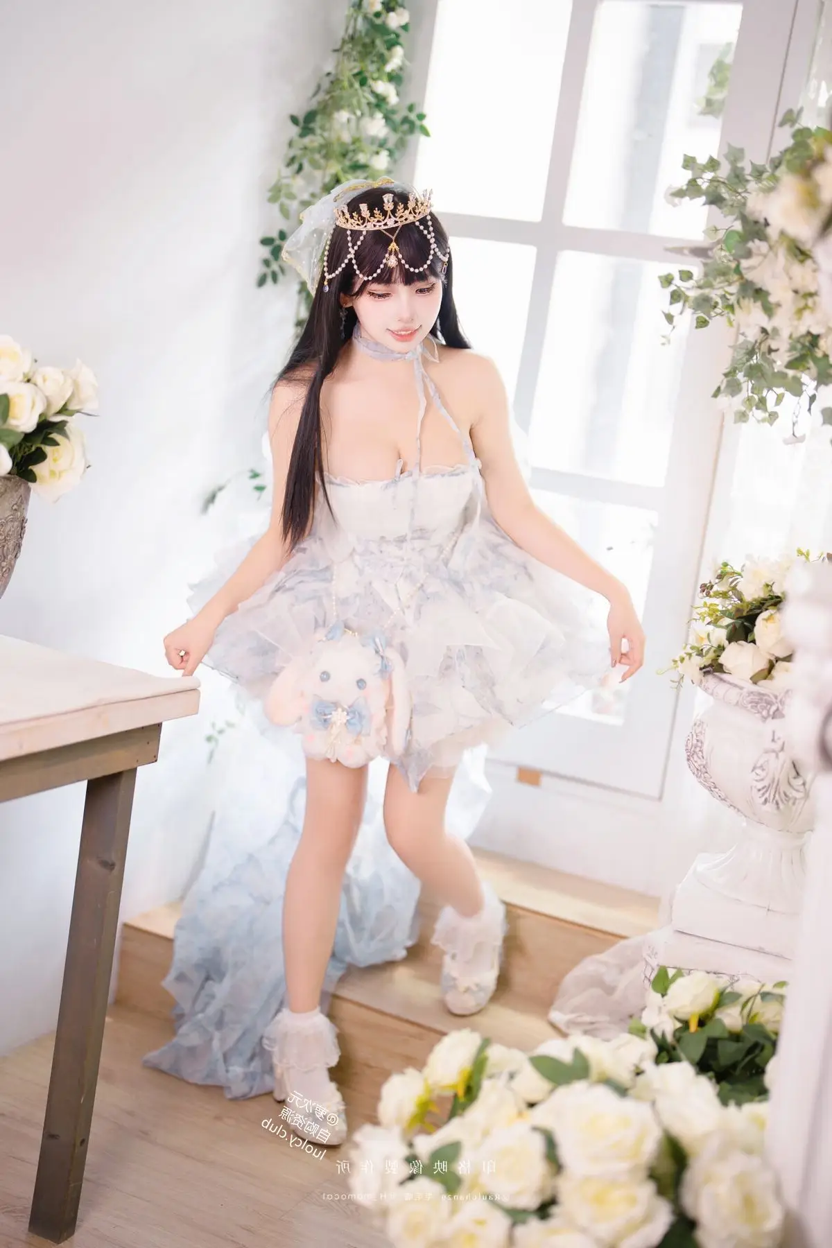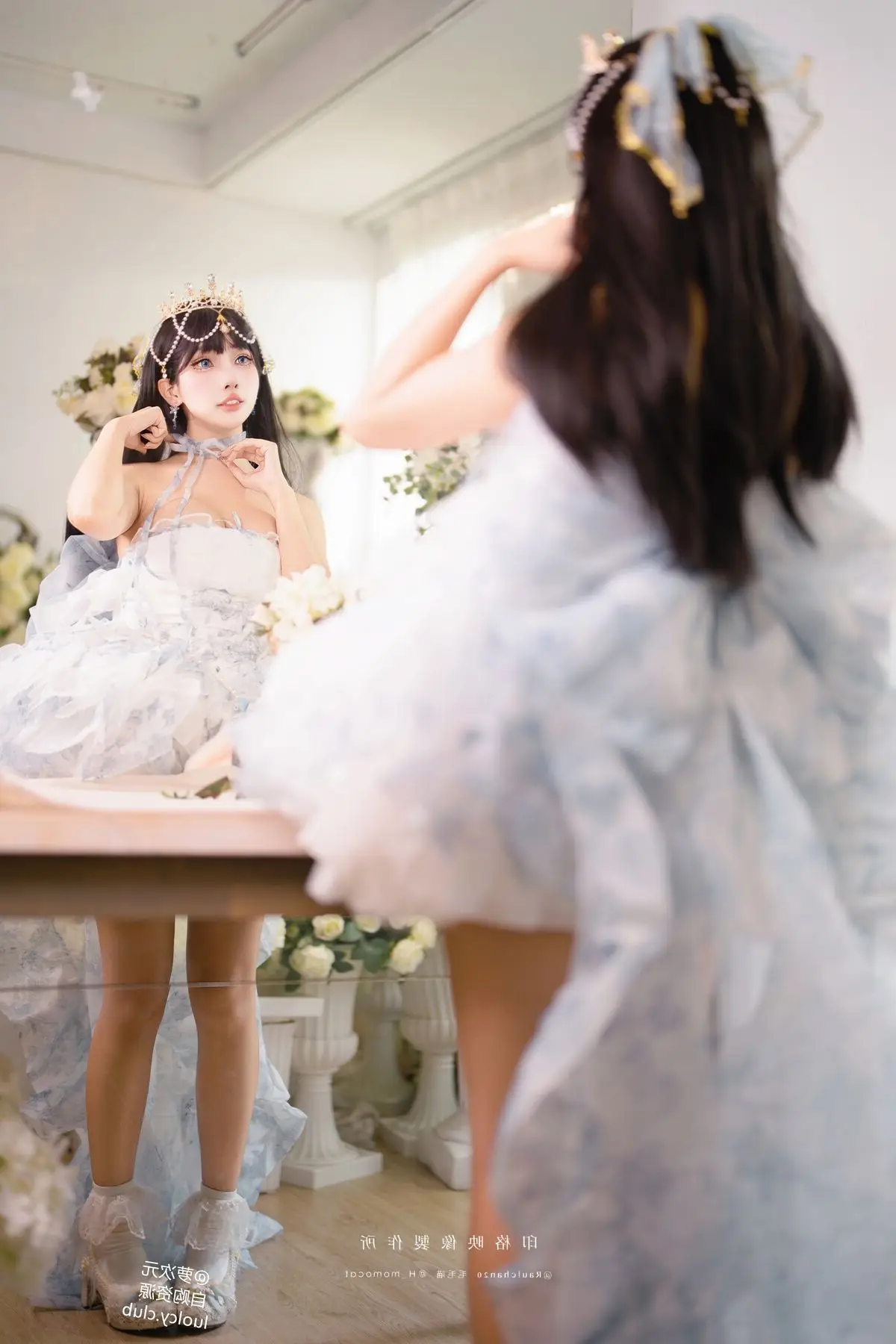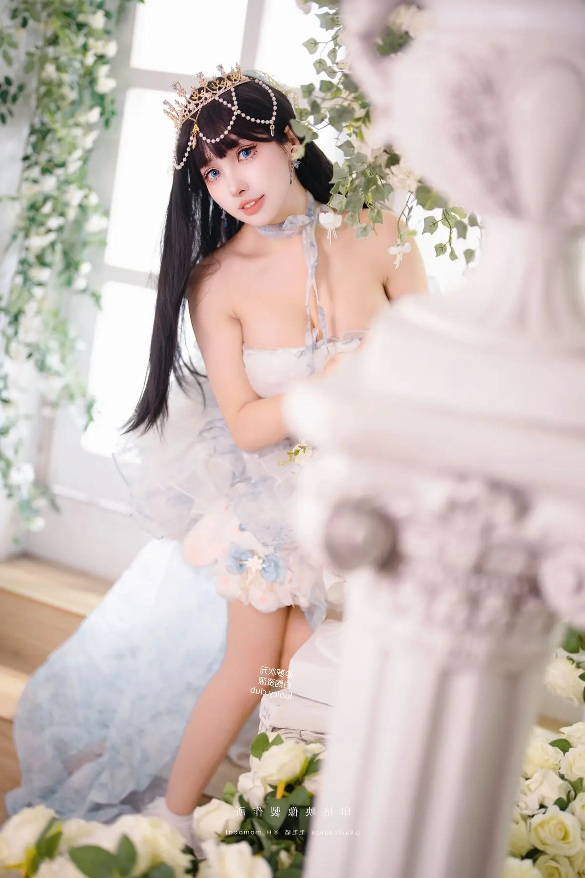Step into a fairytale realm with Coser Mumu Momo in her captivating "Eternal Little Princess" birthday photoshoot. Mumu Momo embodies a sweet and ethereal princess adorned in a voluminous pastel white and blue dress complemented by a sparkling crown. Each photograph radiates a dreamy innocence and graceful charm as if she stepped right out of a storybook. The floral-decorated setting creates a romantic and mystical ambiance enhancing her pure beauty. This collection is more than just a birthday shoot it is an emotional and artistic cosplay masterpiece. Join us in admiring Mumu Momo's adorable and enchanting moments.#Coser #BirthdayPrincess #ElegantCosplay #MumuMomo #FairytalePhotoshoot