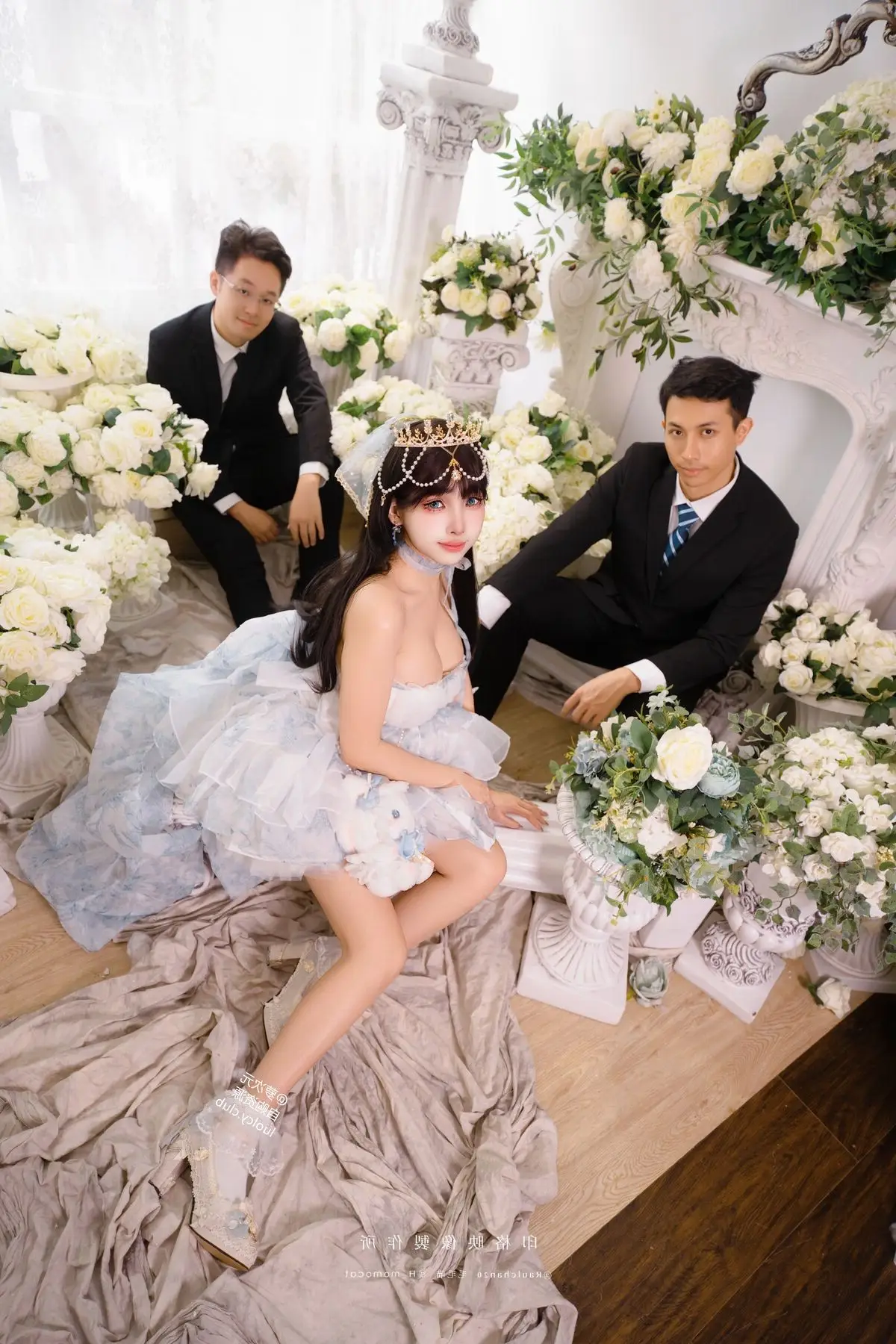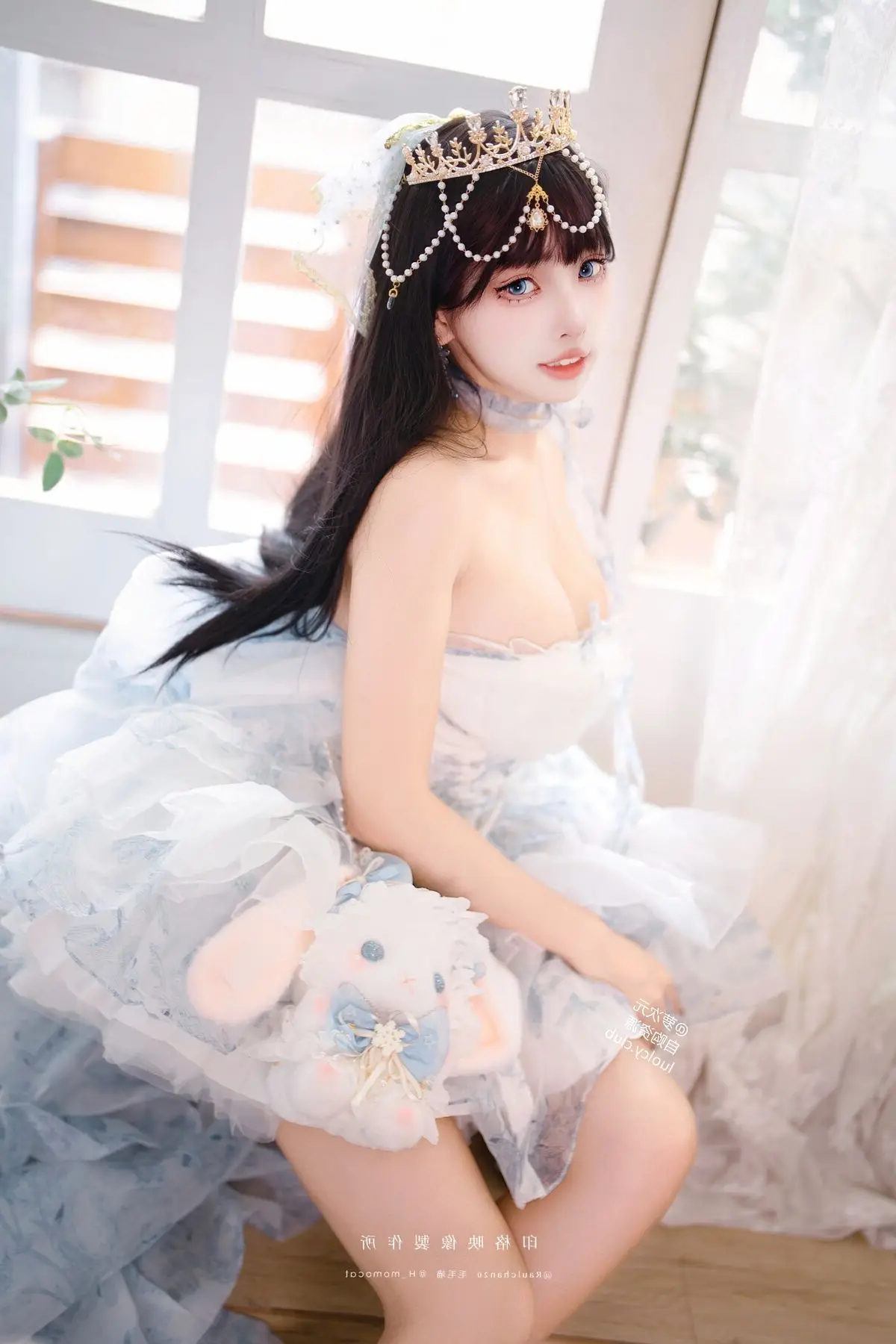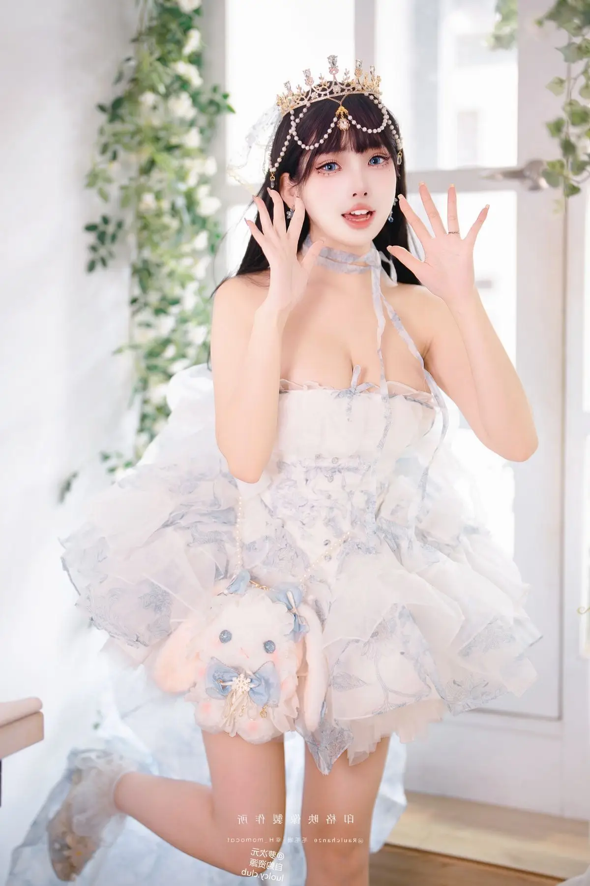 Step into a fairytale realm with Coser Mumu Momo in her captivating "Eternal Little Princess" birthday photoshoot. Mumu Momo embodies a sweet and ethereal princess adorned in a voluminous pastel white and blue dress complemented by a sparkling crown. Each photograph radiates a dreamy innocence and graceful charm as if she stepped right out of a storybook. The floral-decorated setting creates a romantic and mystical ambiance enhancing her pure beauty. This collection is more than just a birthday shoot it is an emotional and artistic cosplay masterpiece. Join us in admiring Mumu Momo's adorable and enchanting moments.#Coser #BirthdayPrincess #ElegantCosplay #MumuMomo #FairytalePhotoshoot