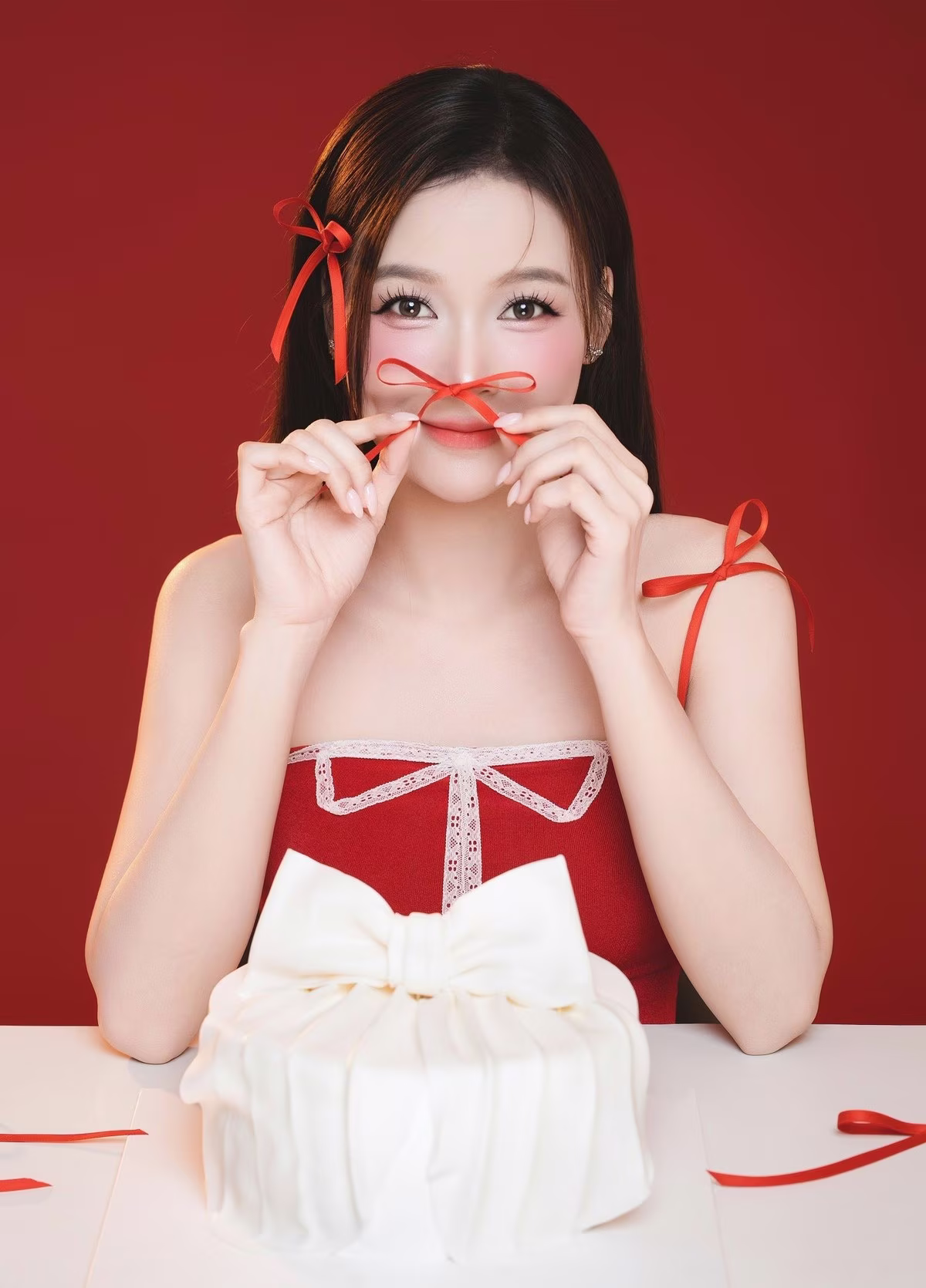 The beautiful Sam once again amazes the public with her sweet and radiant beauty. In her new photoshoot, she appears captivating in a striking red dress, symbolizing luck and joy. Sam's bright smile and sparkling eyes exude a youthful, vibrant charm, making many wonder if they are gazing at a woman in her twenties. Holding a pristine white cake, Sam not only showcases her timeless beauty but also radiates positive energy, affirming the confident and alluring style of a successful woman. This truly is the image of a talented and captivating beauty.