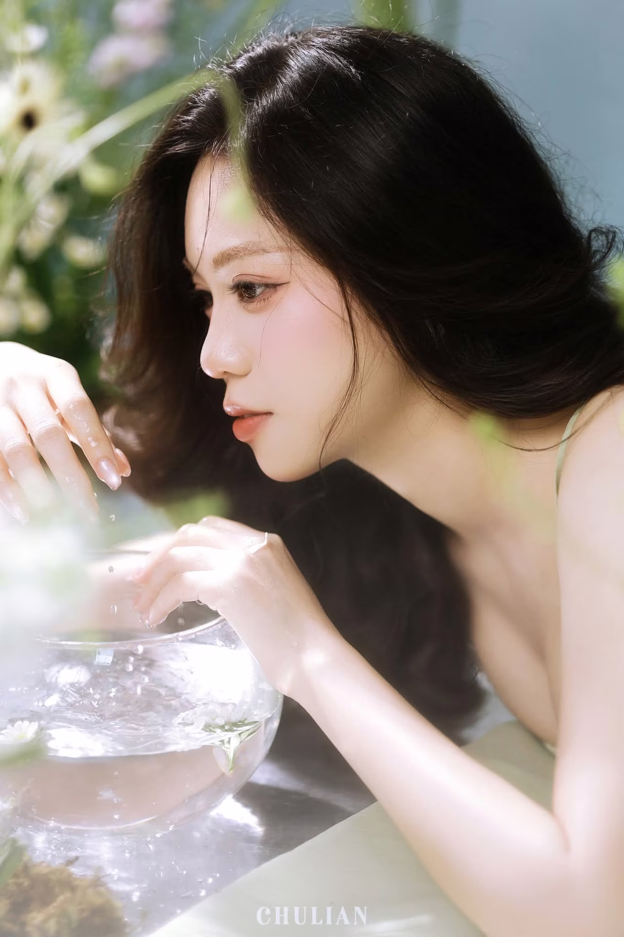 VGU No.91 presents an enchanting scene delicately capturing the ethereal beauty of a muse. The woman with her long flowing dark hair and gently closed eyes exudes a profound sense of serenity and dreaminess. Her soft green attire perfectly complements the pristine white blossoms that frame her creating a natural and romantic tableau. Every detail from the gentle play of light to her hand gracefully resting on her cheek evokes a narrative of inner peace pure beauty and heartfelt emotion. This is more than just a portrait it is a timeless moment inviting viewers to immerse themselves in a world of gentle dreams and find tranquility in every exquisite line and shade. #Vietnamese #pretty #charm