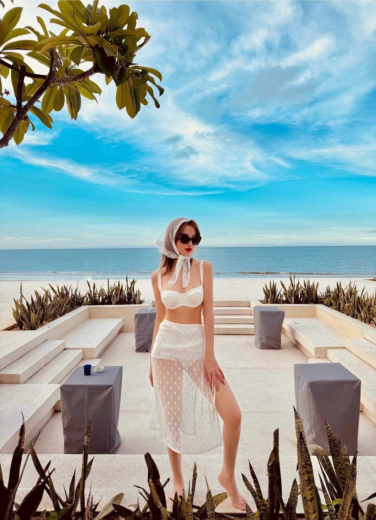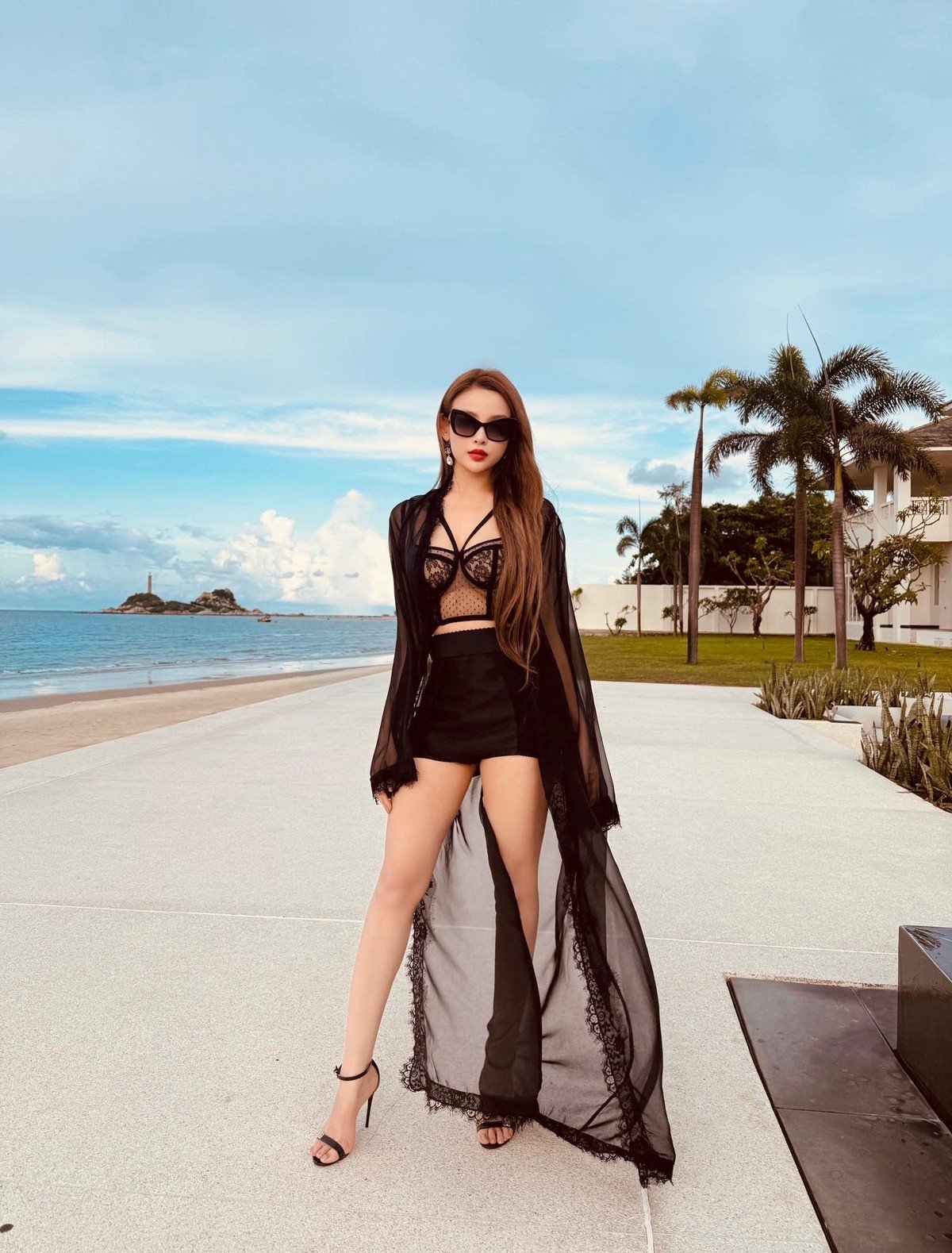 Huyen Baby continues to make a strong impression with her captivating and glamorous chic style. Dressed in a dazzling sequined romper Huyen Baby skillfully showcases her slender figure and admirable flat waist. She radiates an undeniable sense of high fashion and confident charm. This image not only highlights her beautiful physique but also exudes her luxurious aura. It serves as a testament to Huyen Baby’s enduring appeal in the entertainment industry always reinventing herself and inspiring a trendy lifestyle.