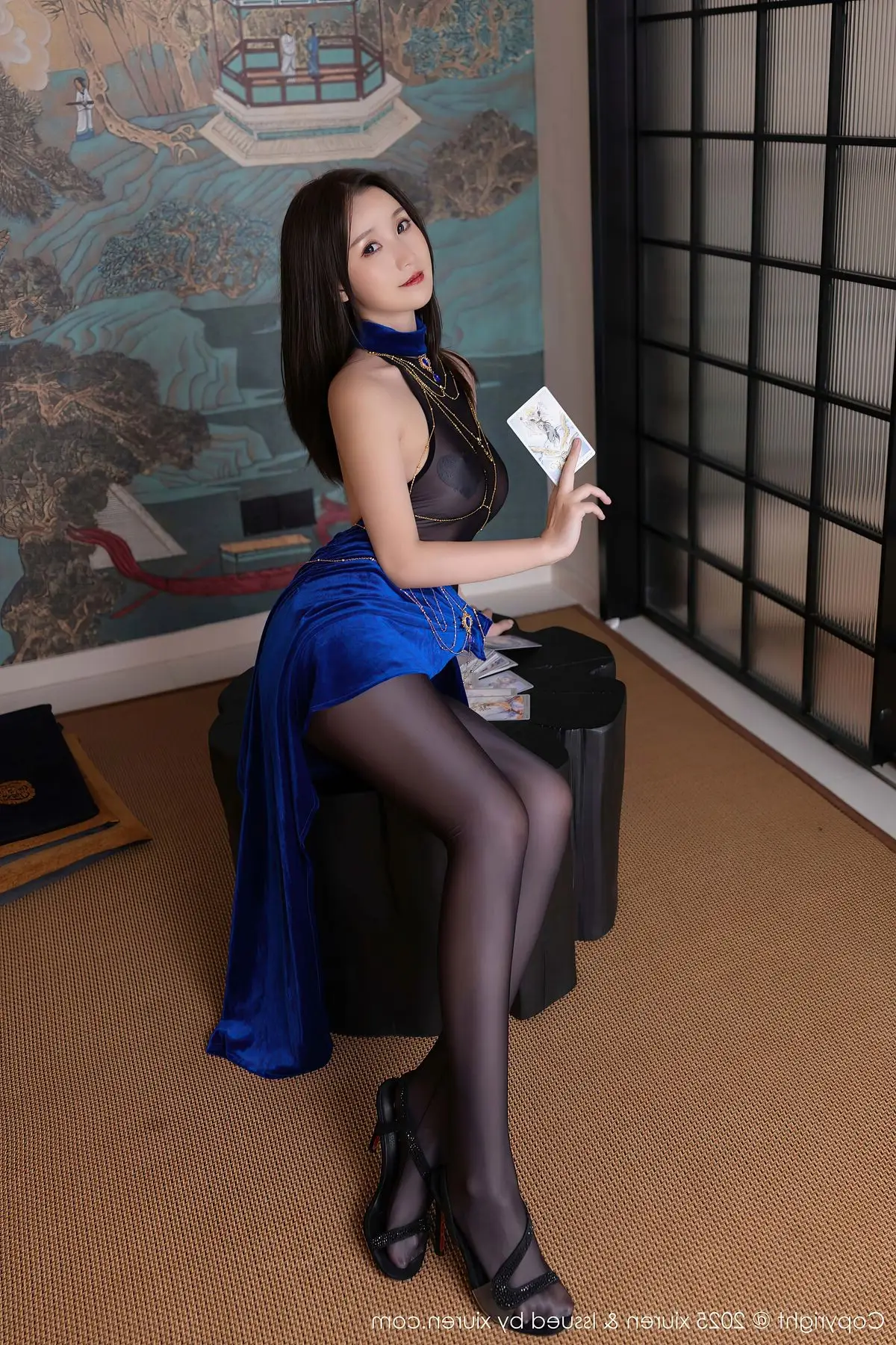 Xing Ya Da captivates with her mesmerizing presence in the XiuRen No.10529 collection. She radiates confidence showcasing her slender figure in a sleek dark outfit perfectly complemented by alluring sheer stockings and elegant high heels. Her graceful seated pose deep gaze and subtle smile create an irresistible charm. This image not only celebrates her physical beauty but also embodies modern sophistication and grace. The harmonious setting enhances Xing Ya Da's captivating aura inviting viewers to explore more stunning moments within this exclusive collection. Discover the unique blend of elegance and allure that defines her captivating style.