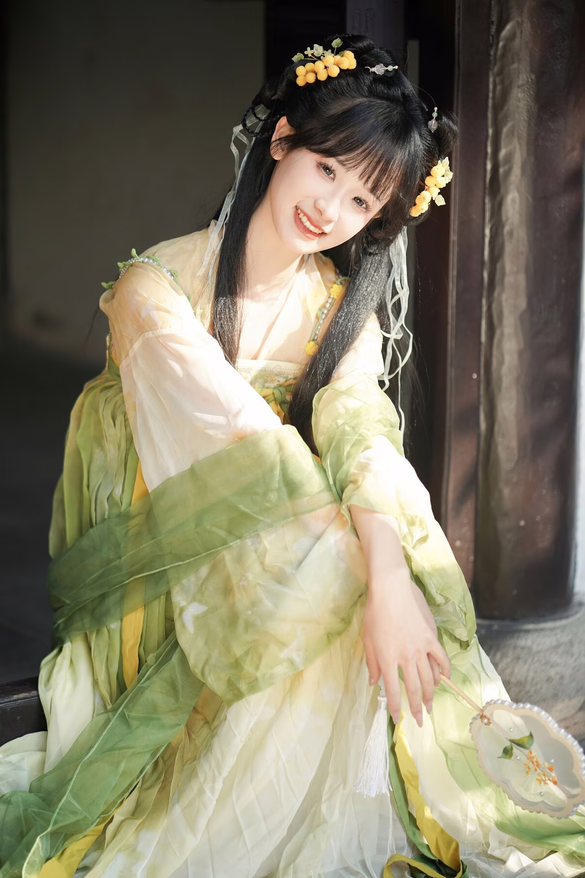 In the YiTuYu Vol.8277 collection, Chun Jiao embodies a graceful and ethereal beauty. Adorned in a light green and white traditional Hanfu, the young woman exudes a gentle and delicate charm. Her radiant smile and sparkling eyes seem to tell a timeless story, inviting viewers into an ancient, serene setting. Her dark hair, adorned with intricate yellow floral pins, enhances her elegant and captivating allure. Every detail, from her flowing attire to her subtle accessories, is meticulously chosen to celebrate pure East Asian aesthetics, evoking a sense of tranquility and nostalgic wonder.